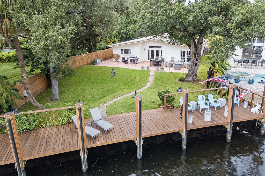 60 ft DIRECTLY on the New River 2/2, 2 car garage in Shady Banks. Impact Windows & Doors Vaulted ceilings, Updated kitchen with custom counter tops, custom stainless steel appliances, Wine Fridge, Backyard set up for entertaining. Spacious and open floor plan with room for a den/office. Huge built out laundry room with separate fridge, sink and cabinets. Deep WIDE Water. Dock extends the whole property line and extra wide for relaxing and watching boats. Sailboat & Catamaran owners, Have a spot for your boat and a great House. Neighborhood has 2 parks including volleyball, tennis, basketball courts, baseball diamond, jogging trails, kids play area. 1.8 Miles to downtown. 3 miles to the beach. And 2 miles to Fort Lauderdale Airport. Seawall upgrades 2017. Roof 05 Electric upgrade 2017
