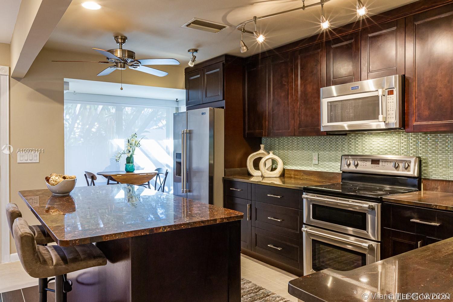 Stunning remodeled spacious 2/2 + Office Loft Townhouse (end unit, garage) with vaulted ceilings in East Boca Raton and lots of privacy. Huge private patios front and back with landscaped yard. Great location minutes to beach/downtown/Delray/I95. Large Master bed/bath with sunken walk-in bath/shower and walk-in closets. Second bed with custom built in closet, open kitchen/island with SS appliances, double convention oven, wet bar, new hurricane impact windows & doors. loft with shutters, new ADT alarm/fire system. Garage plus 2 car driveway, Large storage area. A+ schools. Low HOA includes outside/roof maint., and insurance, trash, pool & clubhouse.
