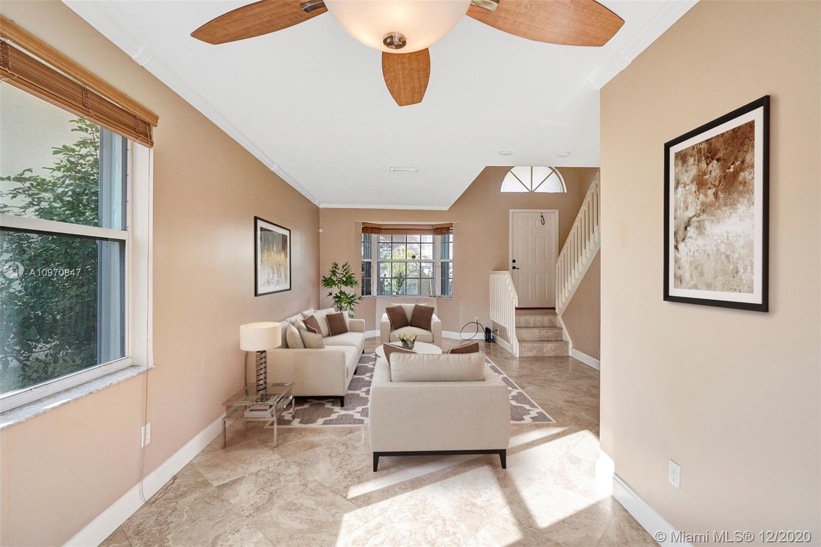 Towngate of Pembroke Pines Charmer. This 2 story, Lake front, single family home in a gated community has it all. 3 bedrooms, 2 1/2 baths with a living room & family room plus dining area. Beautiful paved deck in the backyard with a spectacular lake front view for your future entertaining. A+ school district. Close to major highways & shopping. Amenities include swimming pool, security patrol, tennis & basketball courts, soccer field + playgrounds. Low HOA. Easy to show.
