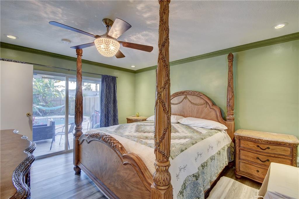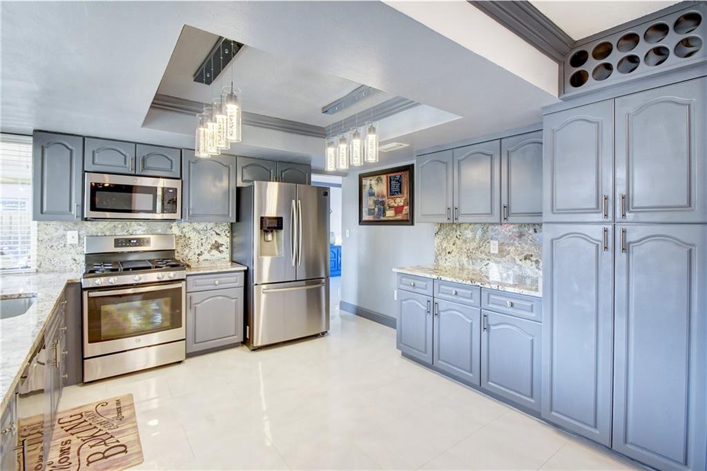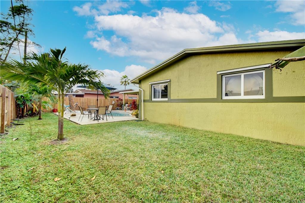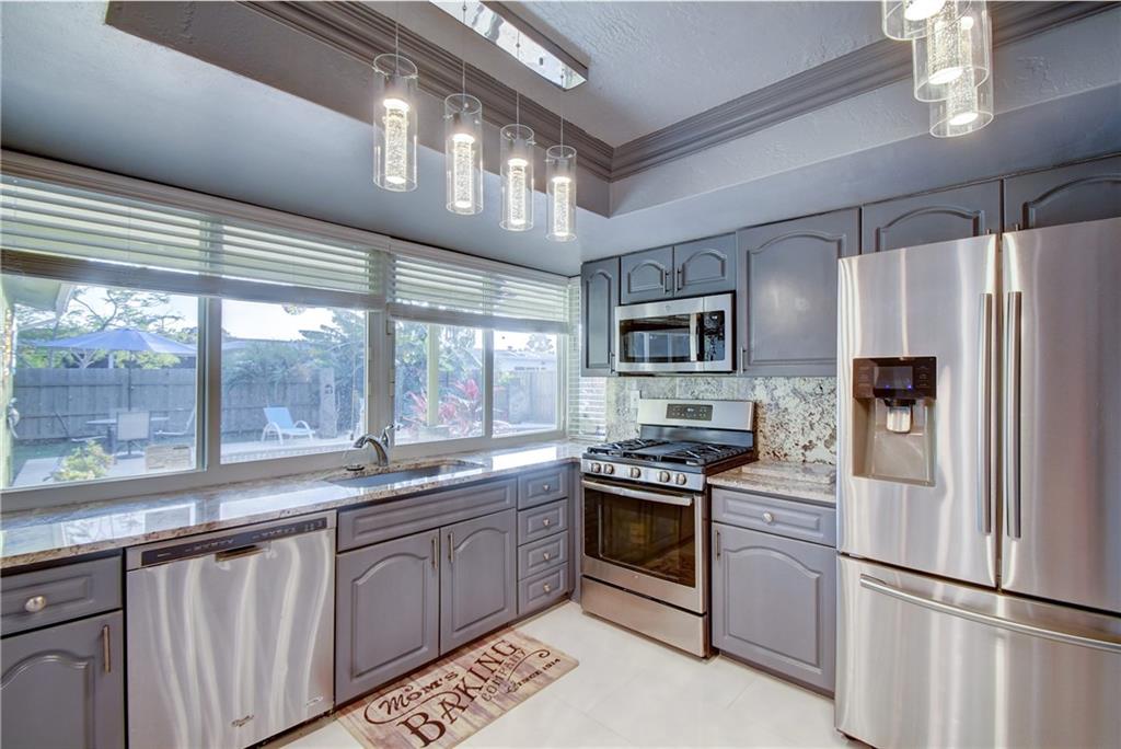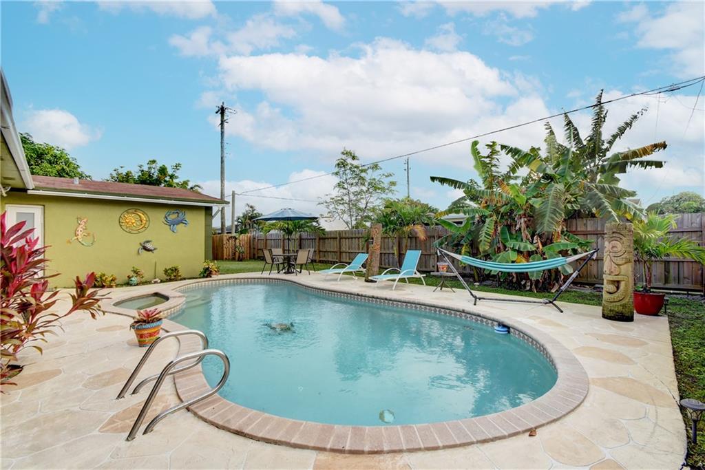Completely updated 4 bedroom corner lot pool home with a two car garage. All impact windows and doors. Granite kitchen and stainless steel appliances. New air conditioner, new hot water heater, gas stove and new flat roof. New baseboards and crown moldings, and recessed lighting. Split floor plan. Huge master bathroom with soaking tub and separate shower. Tropical fenced outdoor area with large pool, perfect for entertaining. Cabana bath also has separate shower and bathtub. Formal dining room and two family rooms. New sprinkler system ran on well water.