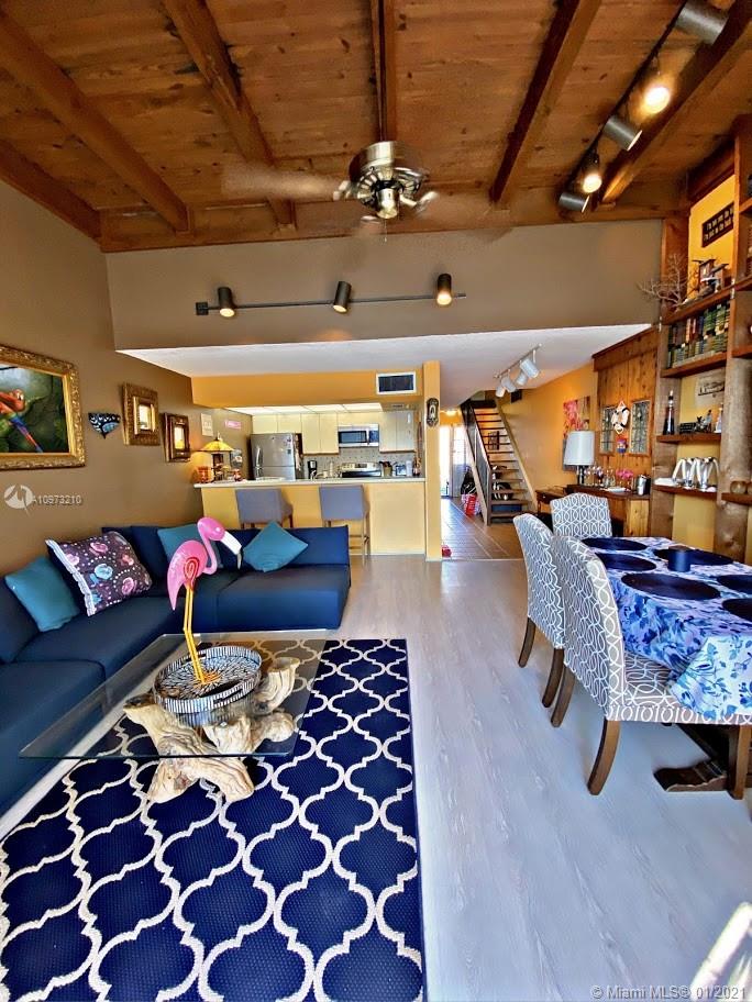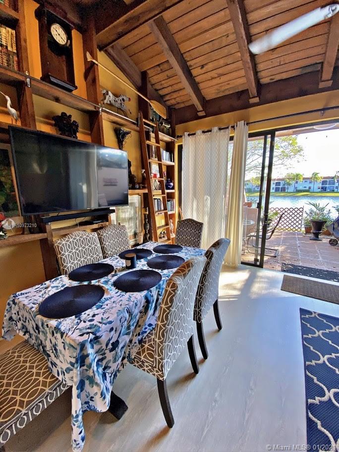 Original builder's model. Come and enjoy this spacious Townhome with high vaulted exposed wood ceilings located on the very wide lake, offering many custom extras such as the custom built-in wall unit which coincides with the wood exposed ceilings in the Living room. Additional features include track lighting throughout, wood laminate floors, newer porcelain tile floors in the kitchen, updated Stainless Steel appliances (LG & Kenmore), custom kitchen exhaust system, added switches throughout, fairly new central a/c system, built-in recess lighting in the bedrooms, updated master bathroom vanity, exterior landscape lighting, and a truly well maintained unit including annual roof maintenance. Unit includes 2 shaded Open Parking Spaces and plenty of guest parking.
