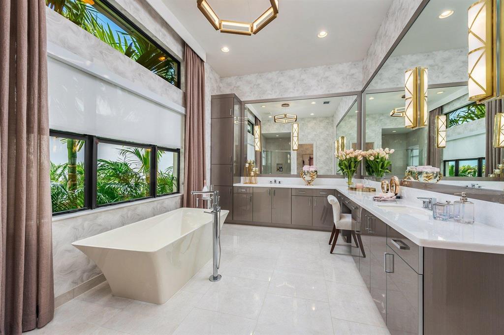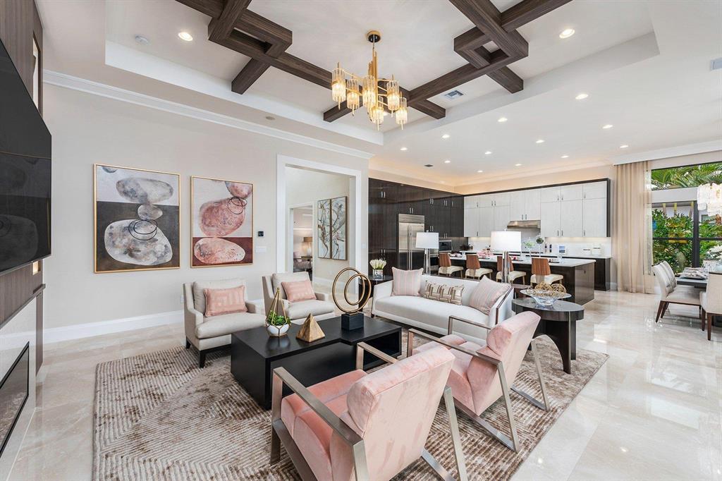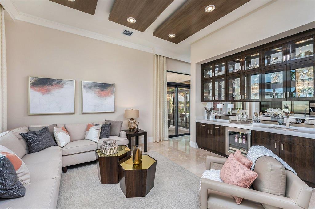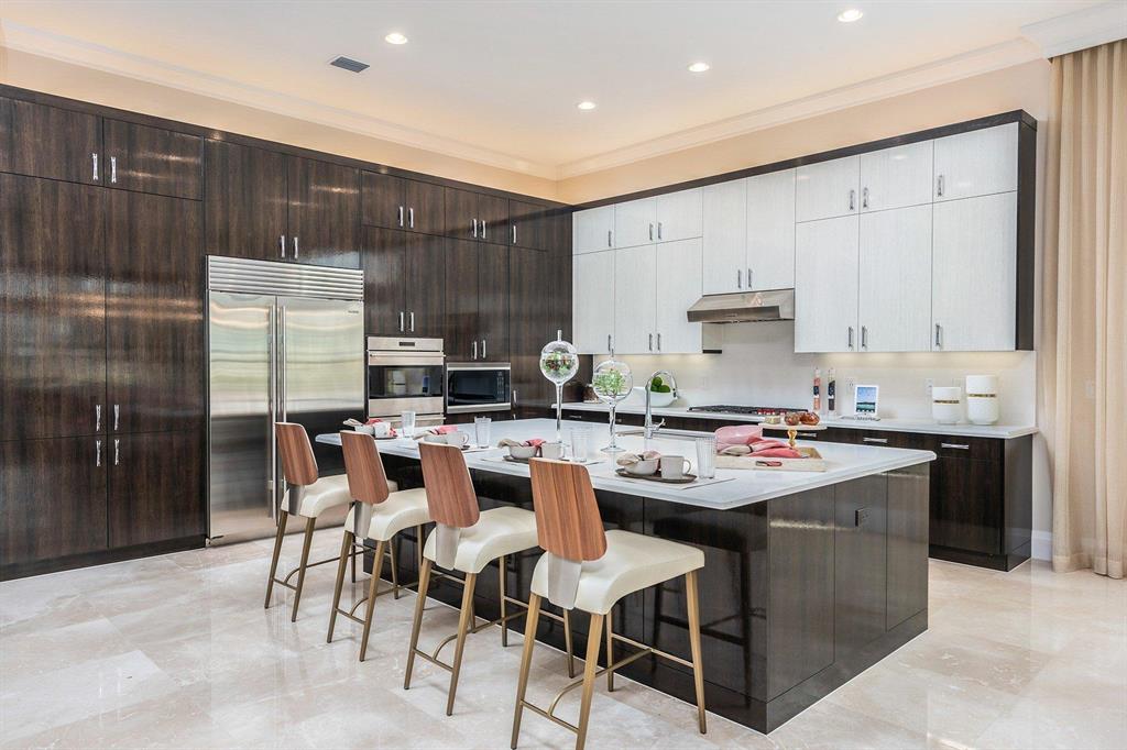 Beautiful one-story home under construction in Boca Bridges. This Murano contemporary model will be completed Fall 2021. An additional game room/family room and a den add to the three bedrooms offering versatility of the floor plan. Throughout the main living areas, upgraded engineered wood seamlessly connects the open concept floor plan. The Kitchen includes Artic White cabinets with an upgraded kitchen design (#4D) featuring a 36'' Chimney hood and a 36'' cooktop. Also included is the enhancement package with stacked cabinets, upgraded Quartz countertops with mosaic backsplash that extends behind hood and a farmhouse stainless steel sink by Mirabelle. A true focal point is the kitchen island with upgraded Quartz countertop with upgraded 3'' edge. The wet bar in the game room includes -->