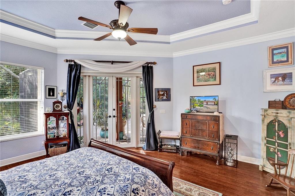 This true 5 Bedroom / 3 Bath triple split floor plan w/ a 3 car garage is loaded with upgrades and a desirable S/E exposure! Complete w/ formal dining, soaring 12 ft ceilings, crown molding throughout, newer appliances in kitchen, impact etched glass front door, accordion shutters and a new seamless shower in master bath! French doors in the formal living, master bedroom and spacious family room open to a splendid and extended screened porch w/ brick pavers! Immaculately kept w/ gorgeous landscaping and lighting and bubbling fountains! It’s nestled in beautiful Parkland Isles w/ 24 hr manned gated security and magnificent resort style amenities which include a stunning heated pool and spa! Walk to A-rated schools and parks! Immaculately kept w/ HOA fees only $275 a mo. and paid quarterly