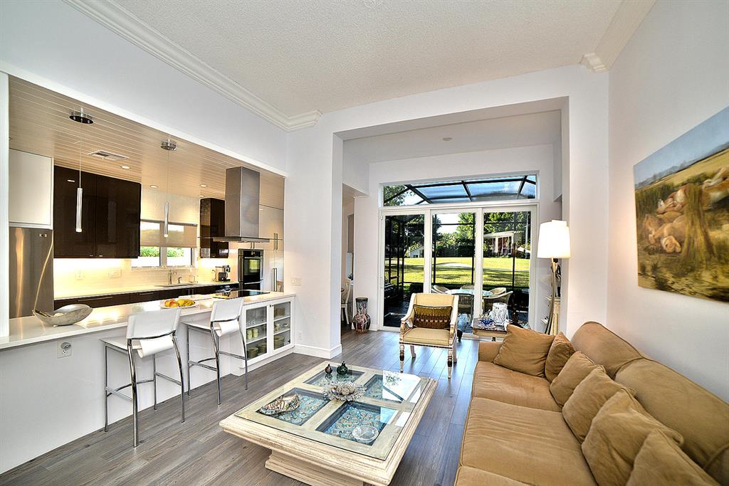 What a charming home! Beautifully updated contemporary home with a fabulous kitchen open to your family and dining room.This 2 Bedroom plus office home overlooks the golf course, and has an open floor plan, lots of light, plenty of windows and a 3 year old roof. The screened in patio will add to the enjoyment of living the Florida lifestyle. Mandatory membership required.