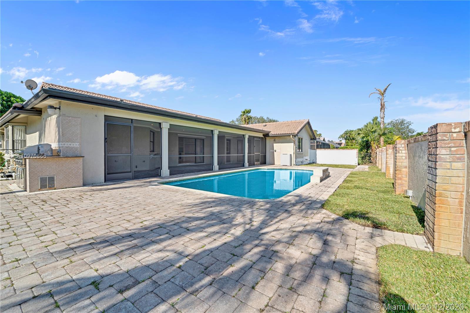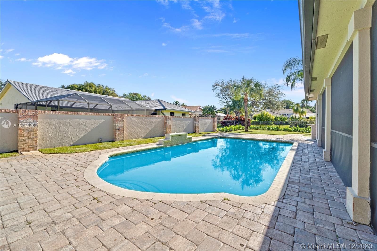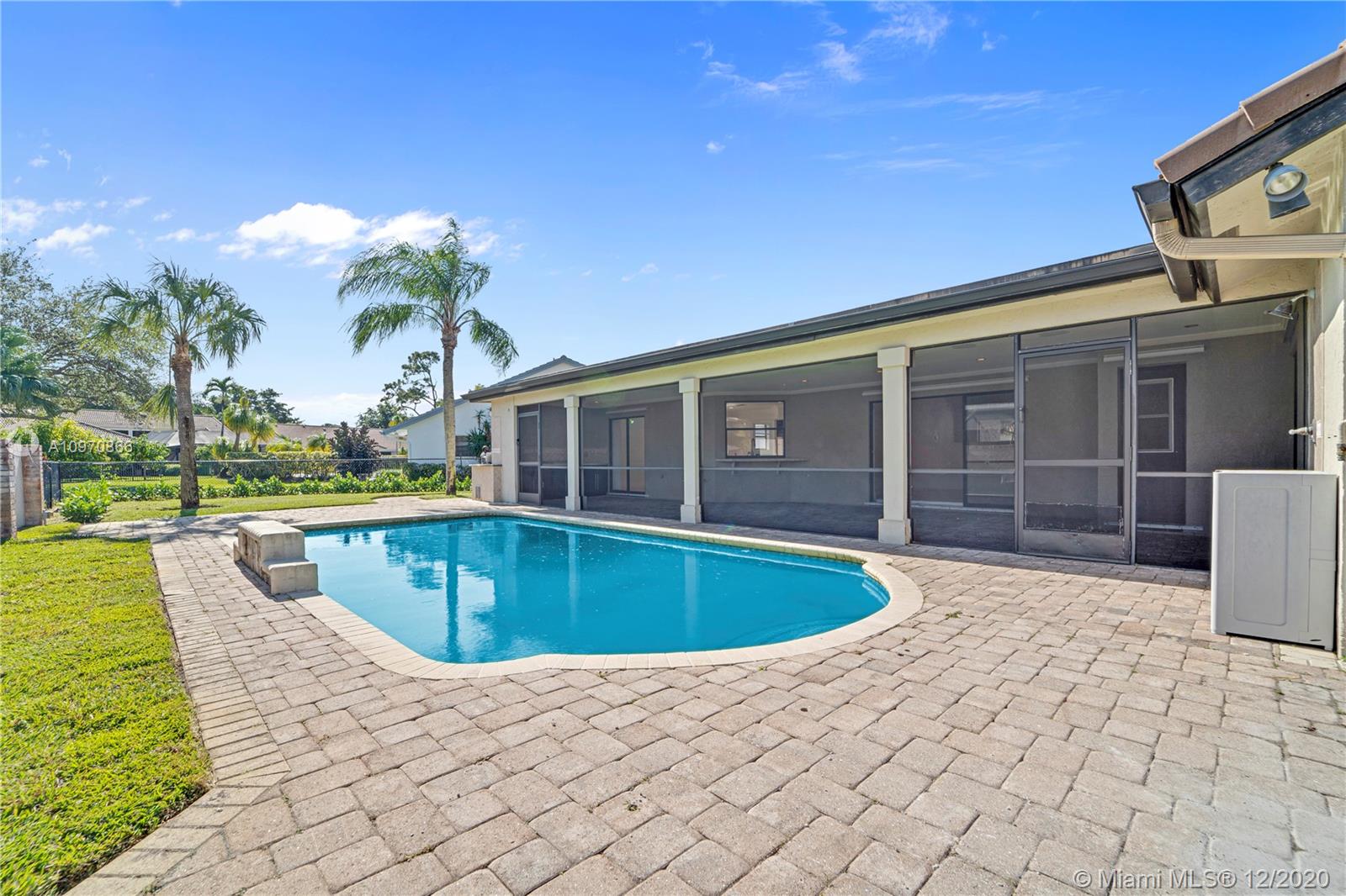 Your Florida living begins with this highly sought after Pine Ridge pool home. Featuring a distinguished brick facade with a beautifully landscaped exterior and a two car garage. Enter inside to find a fantastic gourmet kitchen with solid wood cabinets, gorgeous granite counter tops & SS appliances. Generously sized bedrooms with newly renovated bathrooms plus a bonus room/office and a private laundry room! This home offers an outdoor pool with plenty of yard space, built in BBQ grill, sprinkler systems, screened patio, outdoor shower, private entries to bathrooms and pavers extending out into the sides of the home and much more. Hurricane panels all throughout and impact front door. Low HOA in the heart of Coral Springs, near expressways, shopping, beautiful parks & restaurants.