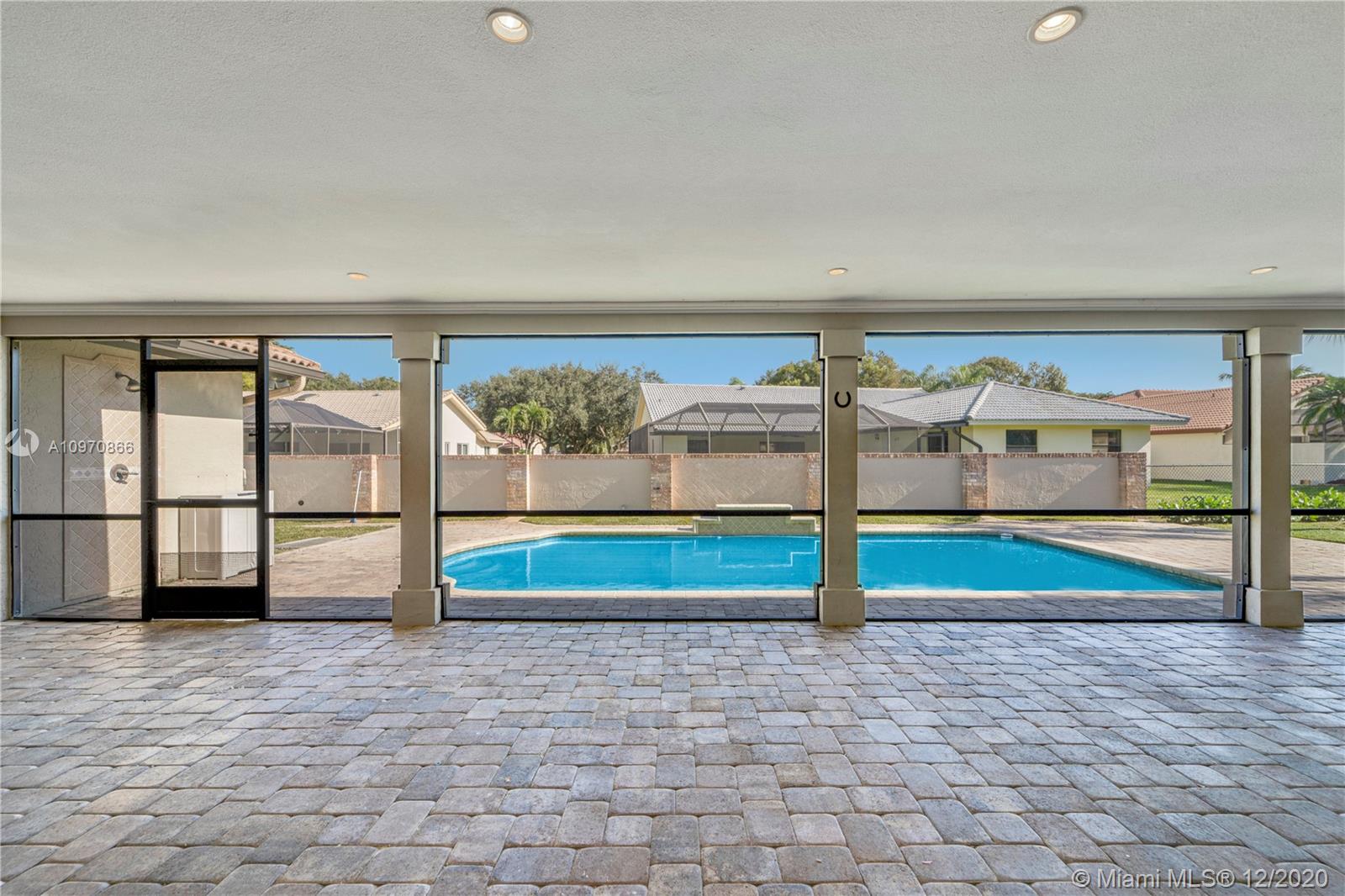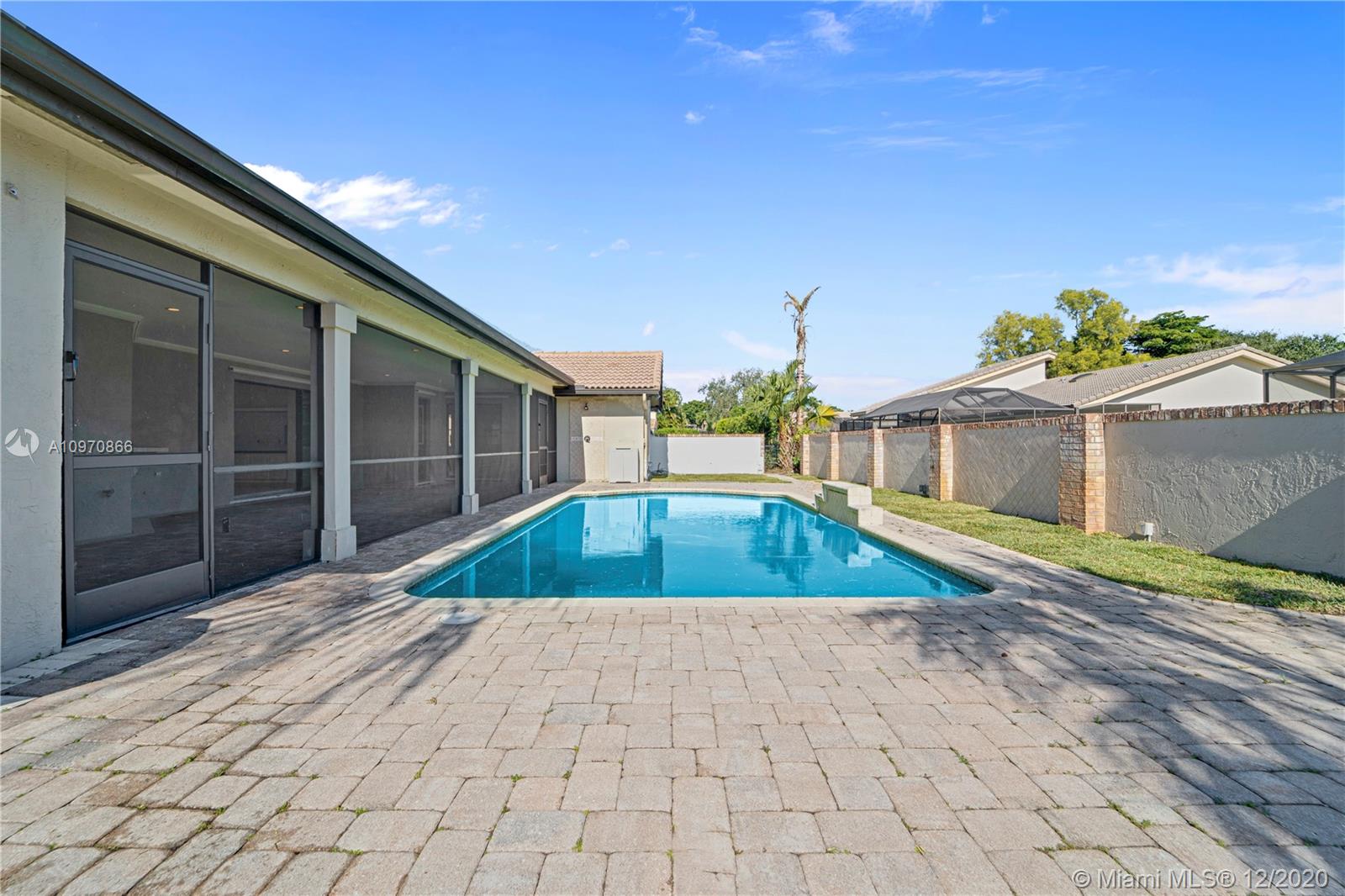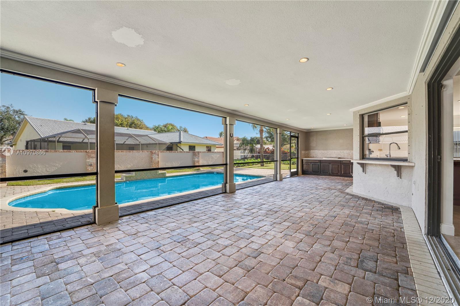 Your Florida living begins with this highly sought after Pine Ridge pool home. Featuring a distinguished brick facade with a beautifully landscaped exterior and a two car garage. Enter inside to find a fantastic gourmet kitchen with solid wood cabinets, gorgeous granite counter tops & SS appliances. Generously sized bedrooms with newly renovated bathrooms plus a bonus room/office and a private laundry room! This home offers an outdoor pool with plenty of yard space, built in BBQ grill, sprinkler systems, screened patio, outdoor shower, private entries to bathrooms and pavers extending out into the sides of the home and much more. Hurricane panels all throughout and impact front door. Low HOA in the heart of Coral Springs, near expressways, shopping, beautiful parks & restaurants.