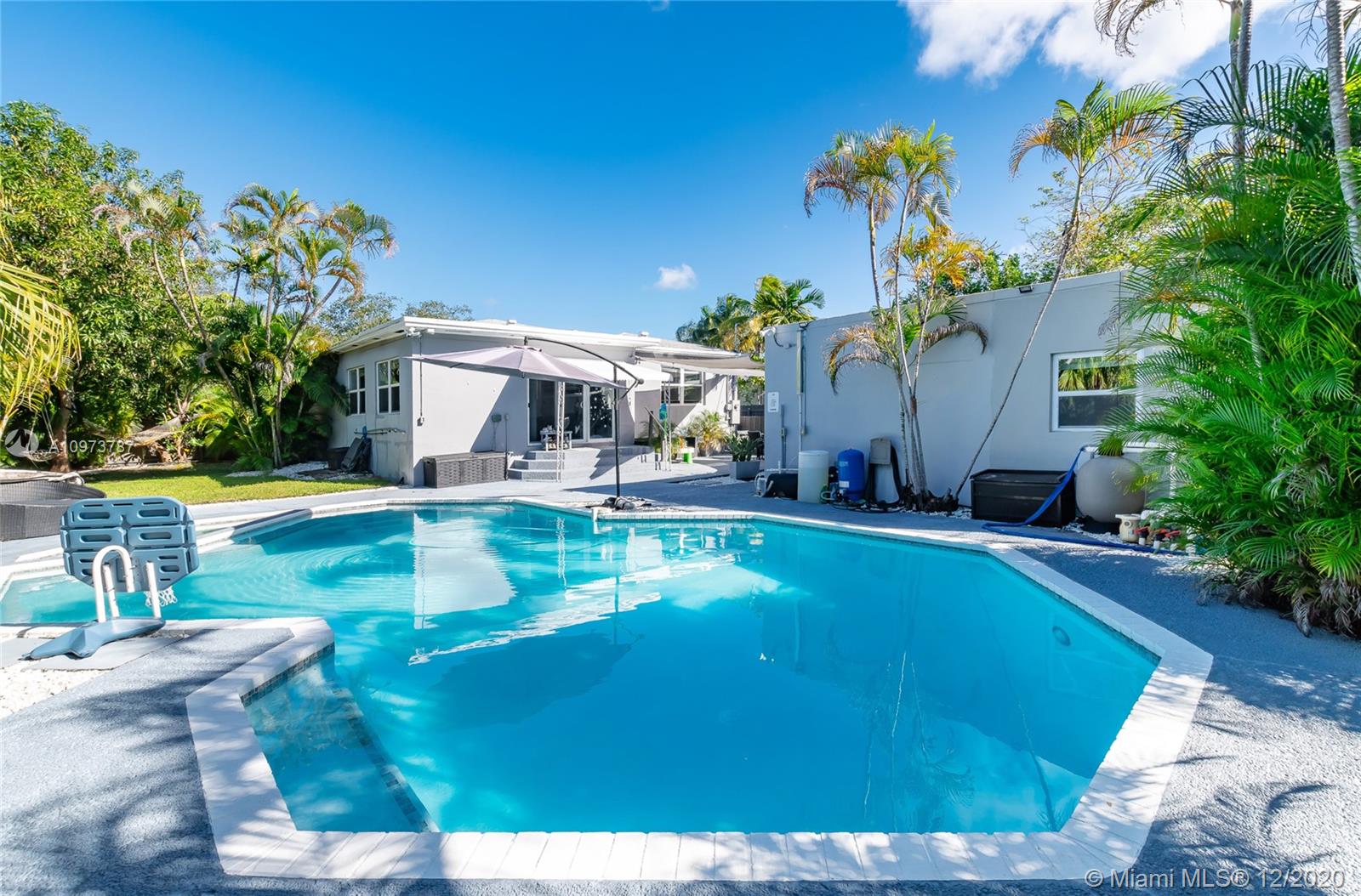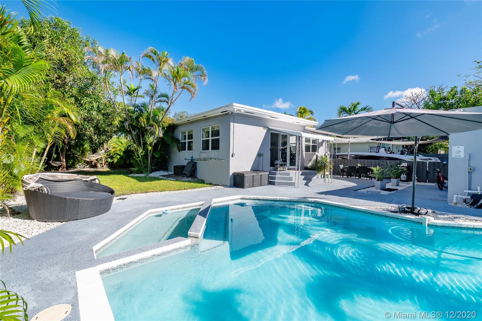Enjoy the amazing natural light as you enter this Remodeled 4 Bed/3 bath Smart Home with internet-enabled thermostat, refrigerator, security & camera system. Huge Great Room & Kitchen perfect for entertaining. Set up as a 3/2 Main house & Legal detached 1/1 649 sq ft guest house with living/dining & separate bedroom. Updates include: electrical system with all LED fixtures, impact windows/doors, flooring, all fixtures, Euro-style kitchen with quartz counters & stainless steel appliances inc gas range & fresh int/ext paint. Resort-style pool with spa & solar heating and over 2,000 sq feet of patio to entertain. Fully landscaped with established palms & Mango tree. Fully fenced with automatic gate opener to pull vehicles, boats or RV into the driveway running the full length of the property.