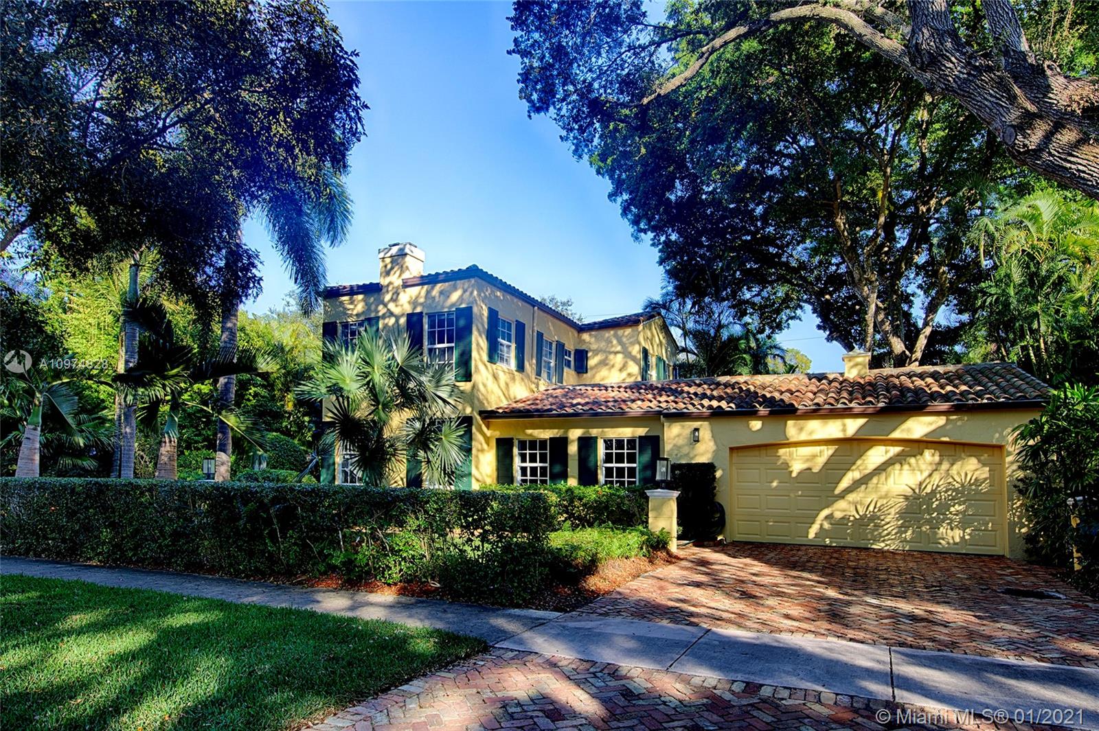 This beautifully restored 1925 Spanish villa is a fine example of historic Coral Gables charm renovated for every modern comfort. This property sits on a 12,500 sqft lot shaded by tall trees & surrounded by tropical plants. The house is 2-story 3/3.5 + 1/1 guest quarters & boasts a fully updated kitchen w/Subzero fridge & Wolf stove, renovated bathrms, oak floors, Florida rm, playrm & 2 wood burning fireplaces. The pool w/waterfall, gardens & summer kitchen are perfect for outdoor entertaining. Impact windows, 2014 roof, full house generator, heated salt-water pool, built-in bbq & 2-car garage. This home is in ideal location, close to shopping, dining & within walking distance to Sunset Elementary School. Chandelier in dining room is excluded from sale