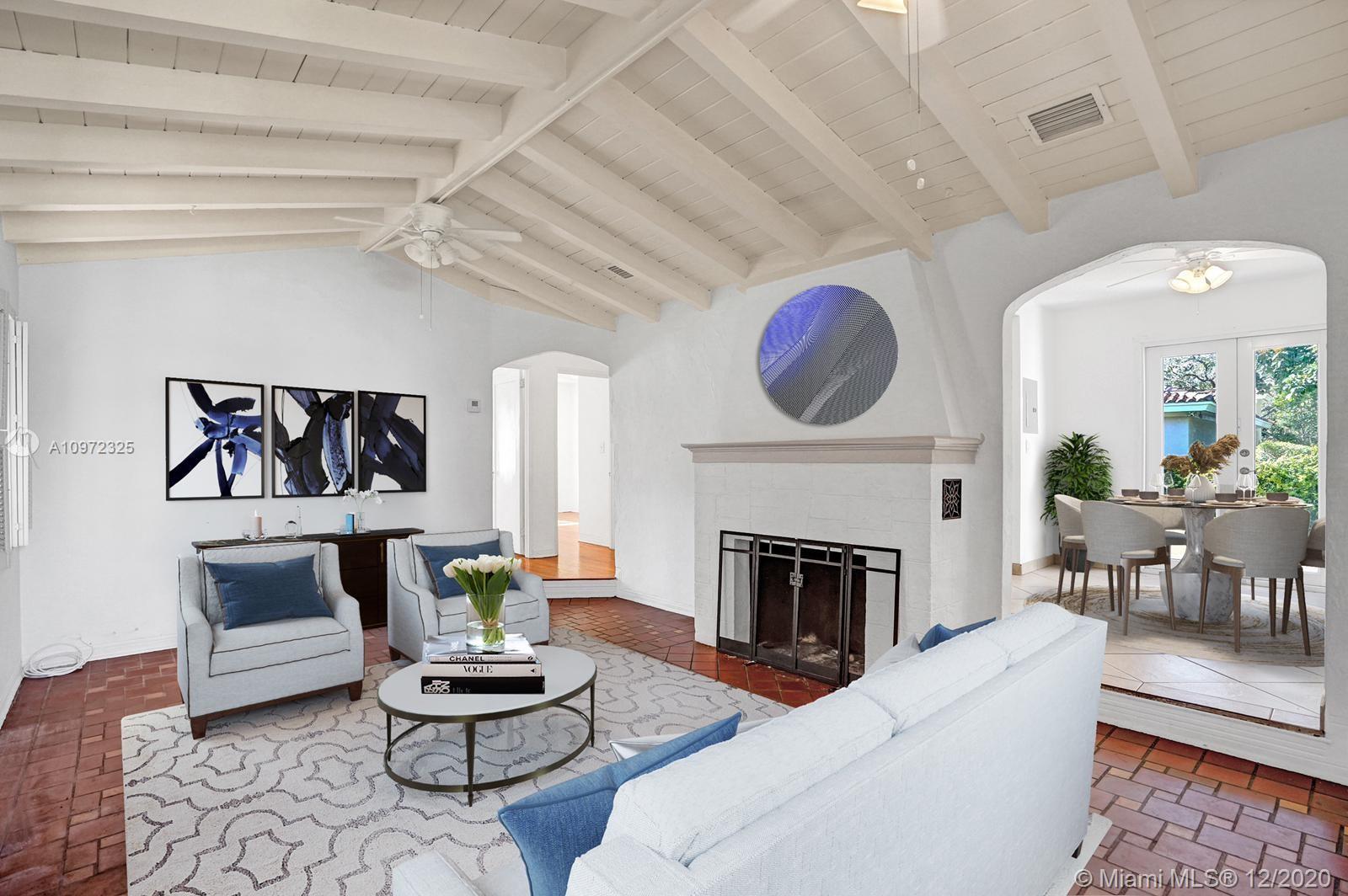 Tranquil and spacious 3bed/2 bath home in the heart of Coral Gables. This is a great home, whether you are looking for a cozy starter home or seeking a renovation project with serious potential. Step into the vast, 10,000 SqFt fenced in lot through a charming front porch. Formal living area with a fireplace, cathedral ceilings, and a set of french doors leading to the expansive backyard, which is perfect for entertaining. Dining area, large family room, and a separate laundry room with ample space for a gym or art studio. This home is located on a quiet enclosed street, conveniently located by the Granada Golf Course, University of Miami, the Miami International Airport, and fine dining and shopping options. 818 Pizarro is waiting for you! Easy to show!