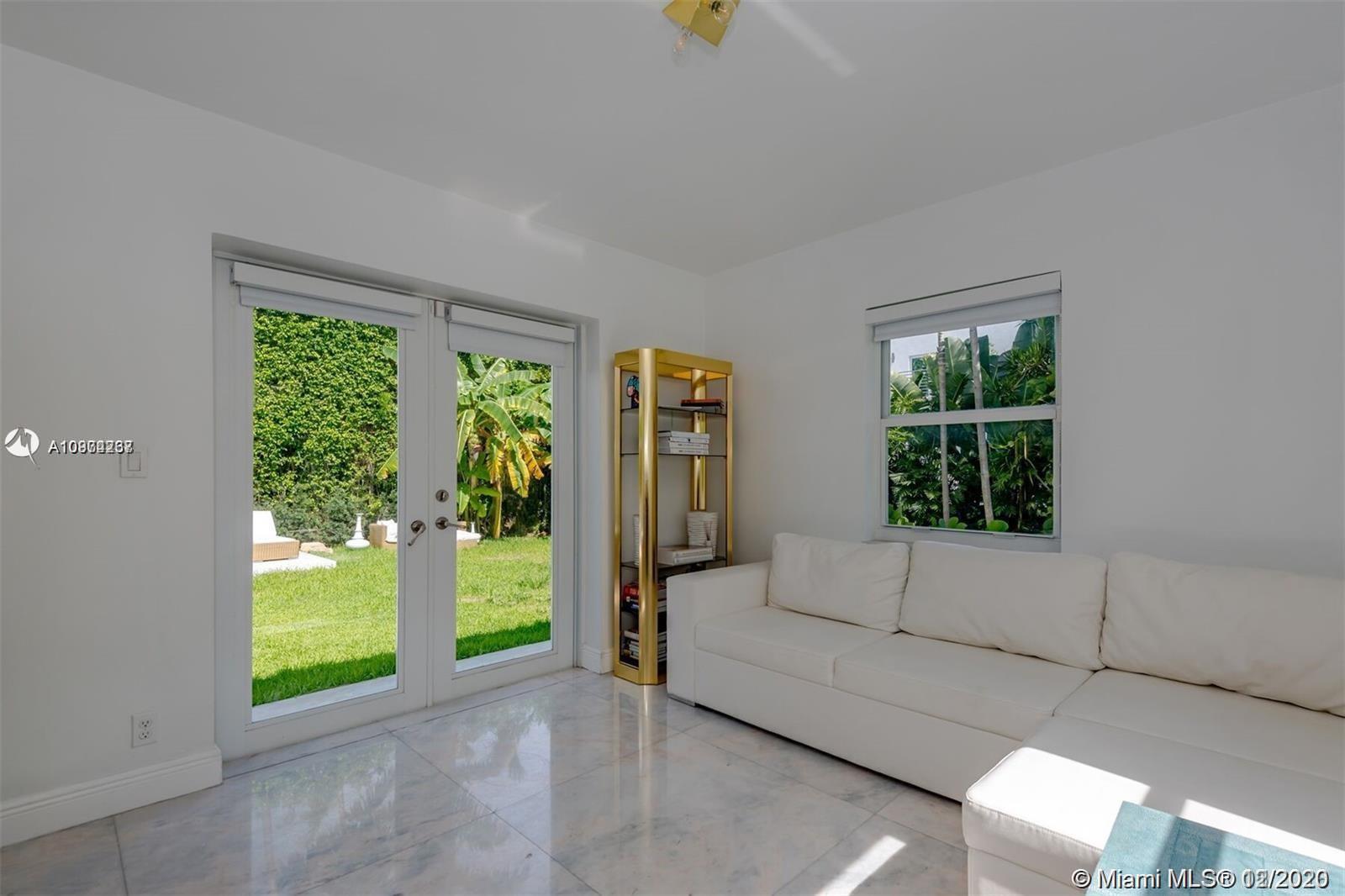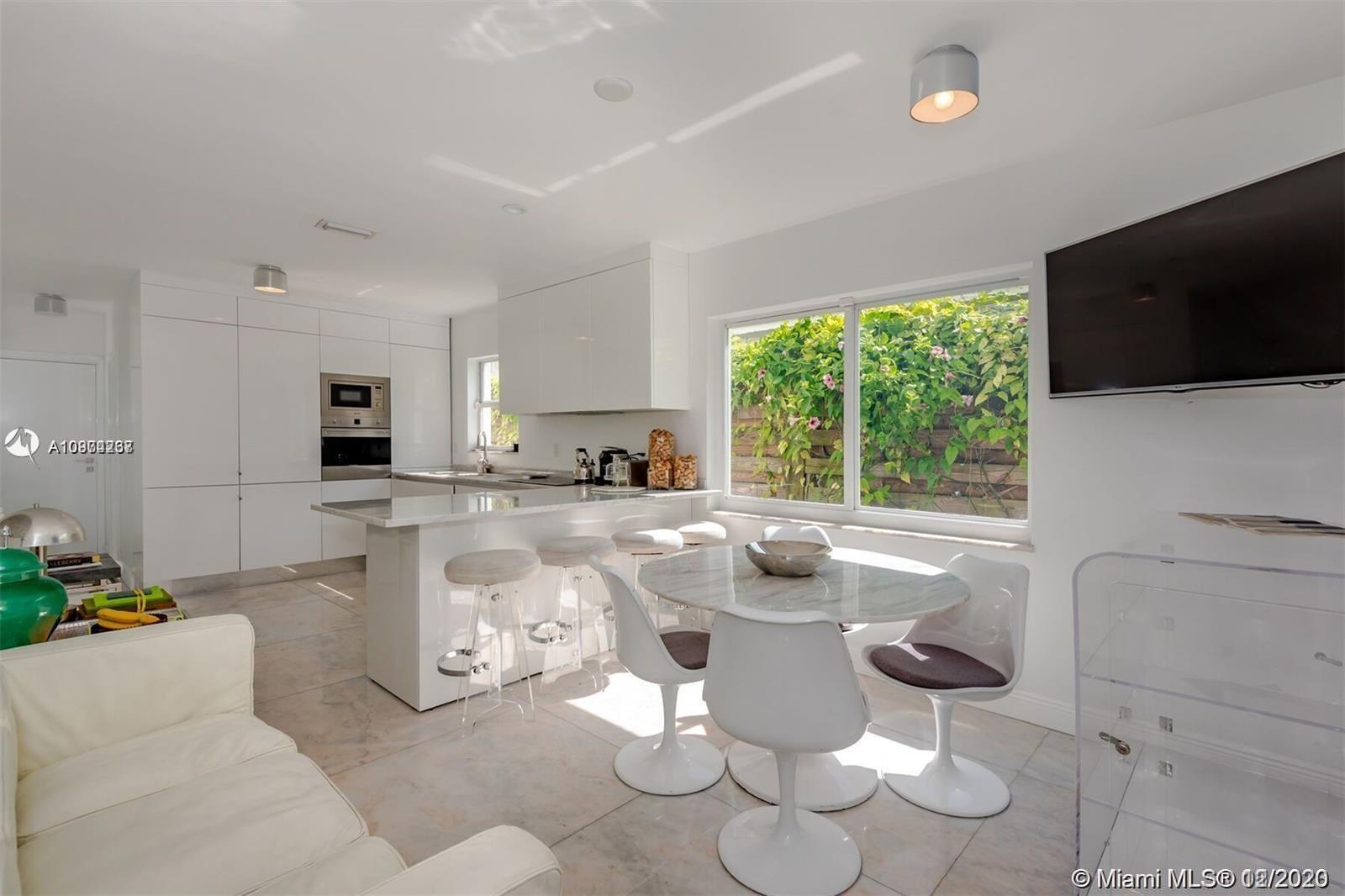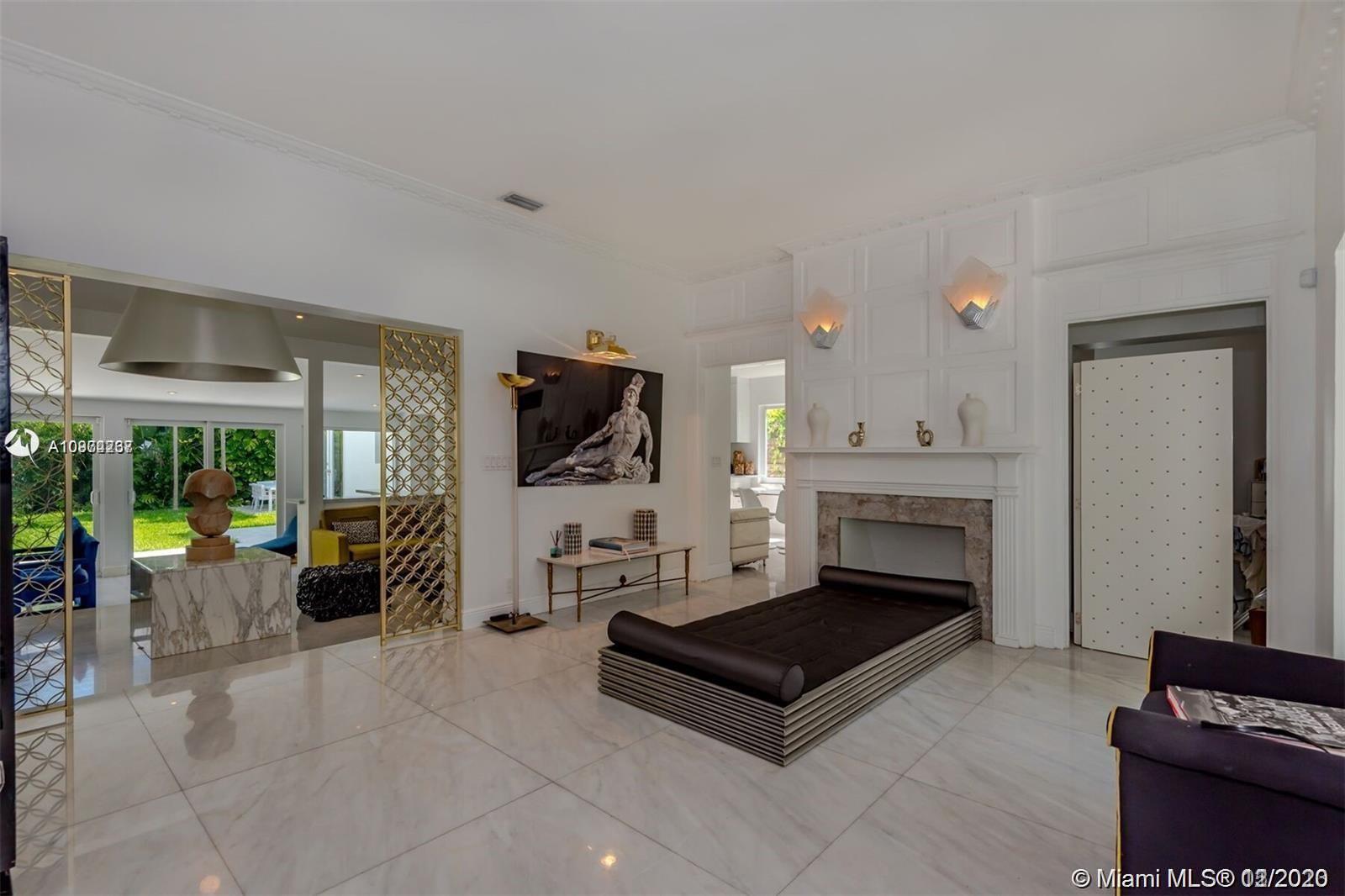 Elegant home located on the guard gated Sunset Island IV. Enter through the grand entryway with fireplace into a sun flooded open format living room-bar area featuring sliding impact windows leading to the tropical backyard setting perfect for entertaining. Pool plans included. This one-of-kind 3 bed/ 3 bath + Maid room is tastefully renovated with luxurious Italian marble throughout and Duravit with Hansgröhe fixtures in bathrooms. Layout is perfect for any type of buyer. 2,560sf as per owner. Partial seller financing available