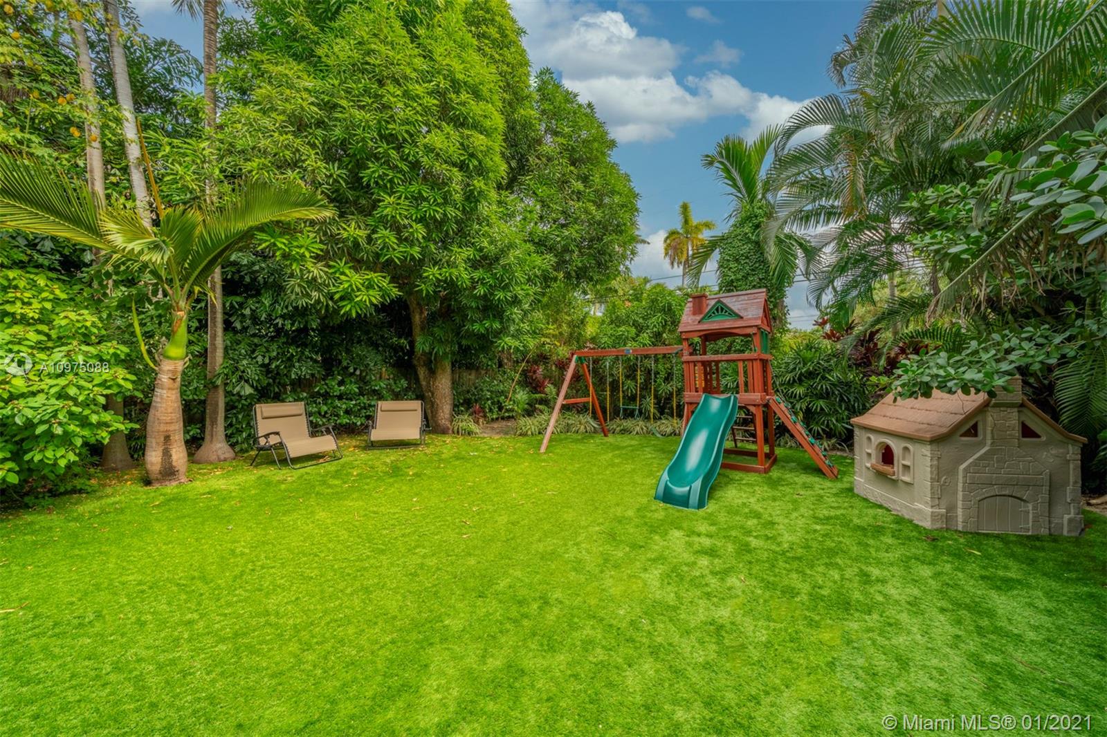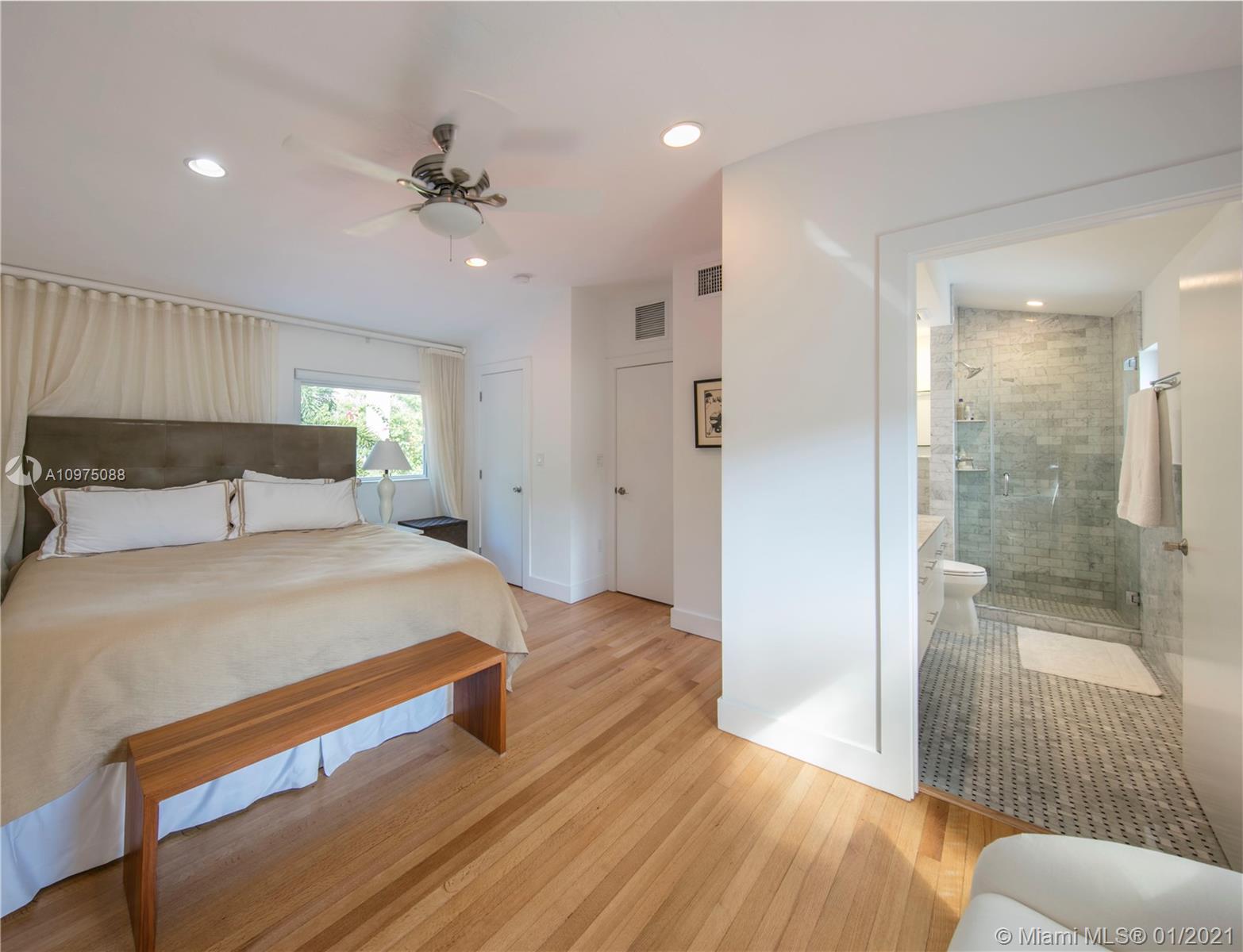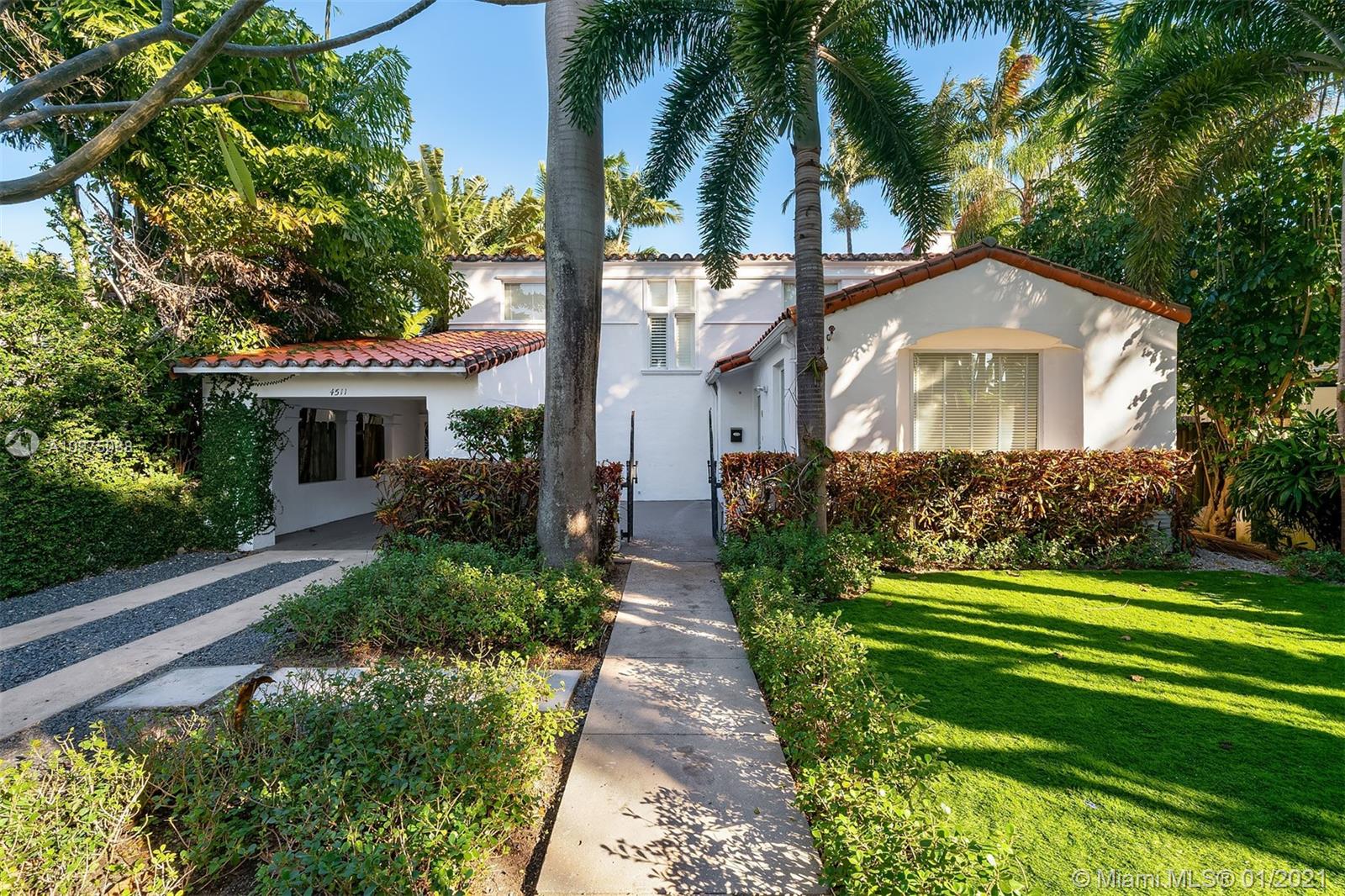 Modern upgrades blend seamlessly with Miami Beach charm in this 3 bed, 3 bath gem, sitting on a generous lot with large setback from the street. Stunning Art Deco details, Pine ceilings and hardwood floors accentuate this beautiful home featuring IMPACT DOORS/WINDOWS, new appliances, large family room and formal living w/wood beamed vaulted ceiling. This home boasts a lush and private backyard that will be your oasis. 2nd story boasts a spacious master with spa-like bathroom & all bedrooms feature ensuite bathrooms. Walking distance to two amazing schools, beach and boardwalk, playground, JCC, park and 41St shops and restaurants.