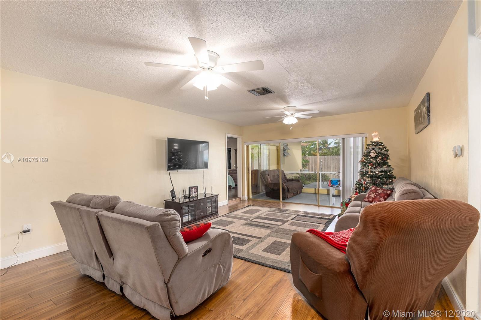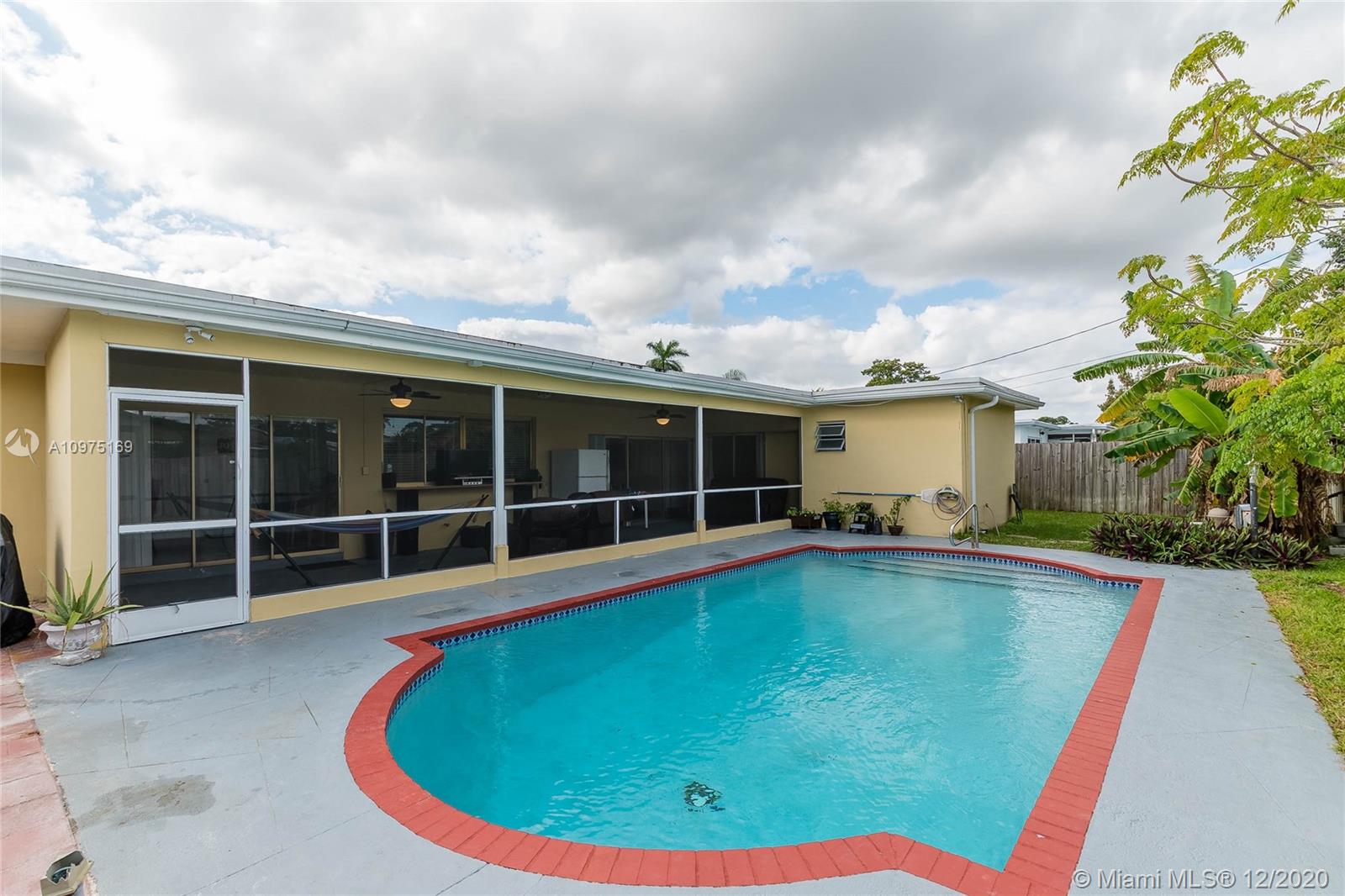 Well kept and upgraded pool home for sale in Sunrise on an oversized corner lot with great curb appeal! This home in the community of Sunrise Golf Village features 3 bedrooms and 2 bathrooms, with a two car garage. Porcelain floors in the kitchen with laminate floors throughout. Spacious kitchen with stainless steel appliances, granite countertops, white cabinets and gas stove. Master bedroom with a large walk-in closet. New pool pump and pavers. Exterior was recently painted. Newer fence, gutters, and A/C. Pool is situated in a spacious gated yard that also features an enormous screened patio that is perfect for entertaining. Dining area and 2 living rooms. Centrally located near schools, restaurants, and shopping centers. No HOA!