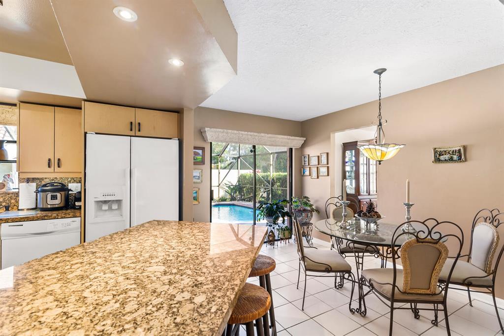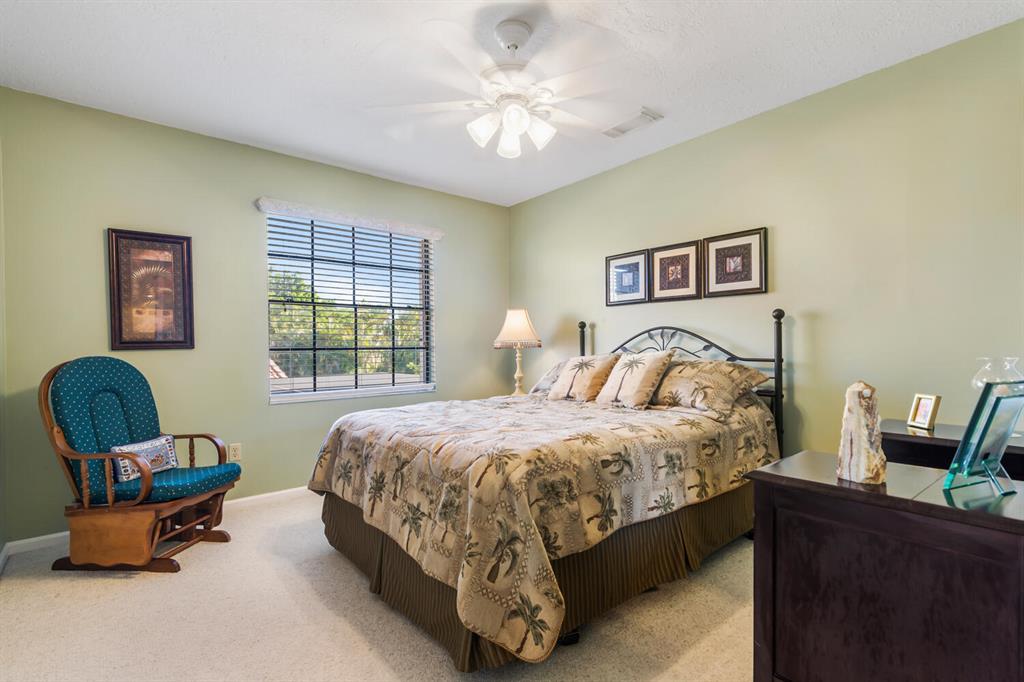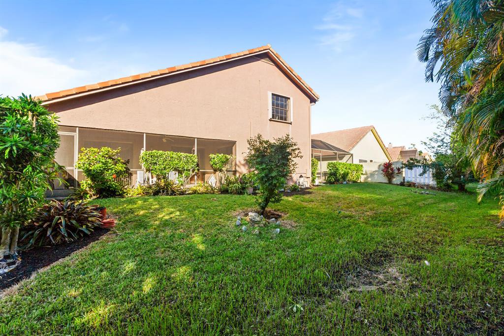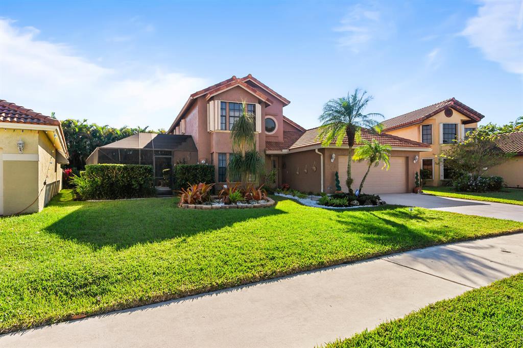 Delightful light & bright home pool home. 4 bedrooms, 2.5 baths. Master on ground level. Updated kitchen with granite countertops and wood cabinetry. Renovated bathrooms. Immaculate and shows pride in homeownership. Full hurricane coverage. This community has wonderful amenities. Olympic Pool, kiddie pools, soccer field with astro turf. world class fitness center, basketball, tennis. Walking and riding paths. Low HOA includes X1 Xfinity HD platform with DVR & internet. Additional HOA information can be found at https://www.grsmgt.com/association/lakes-at-boca/.