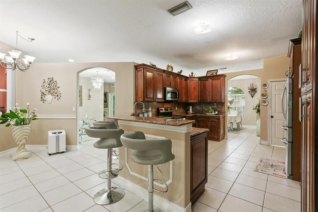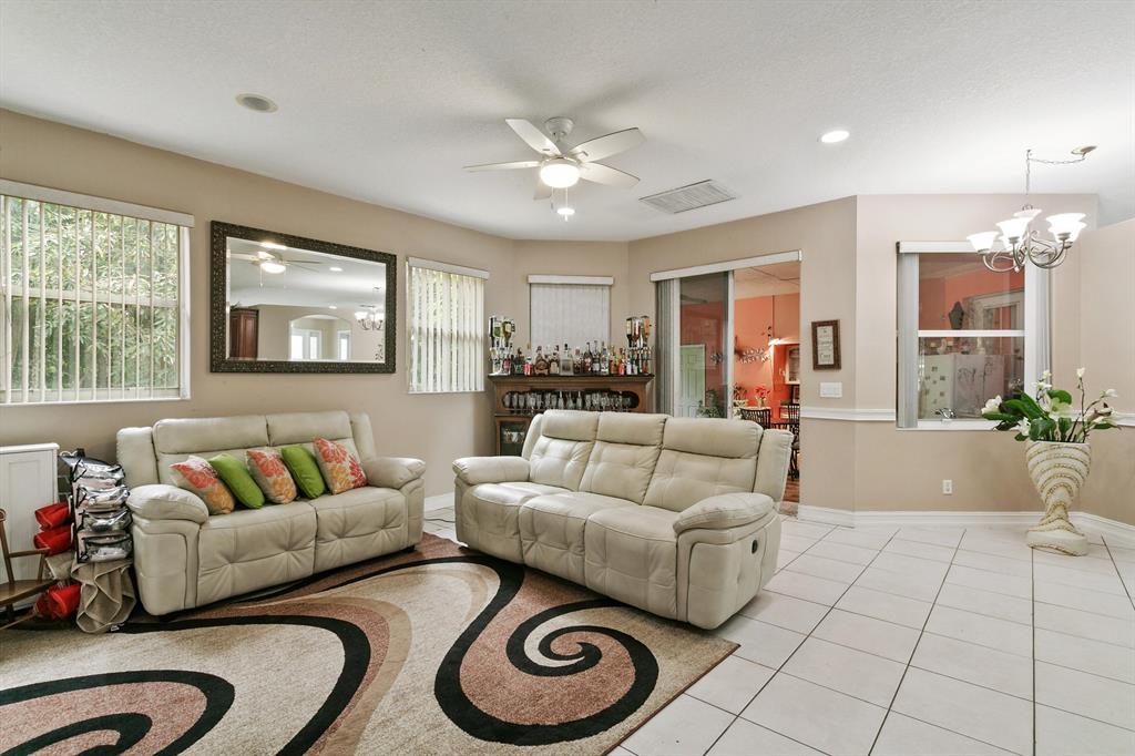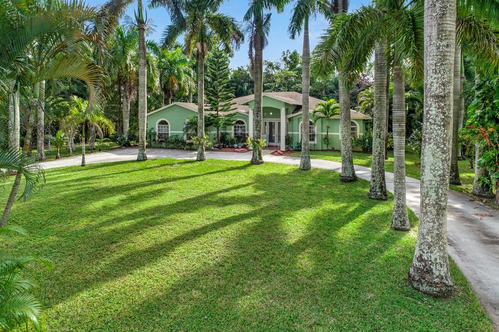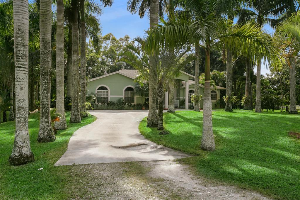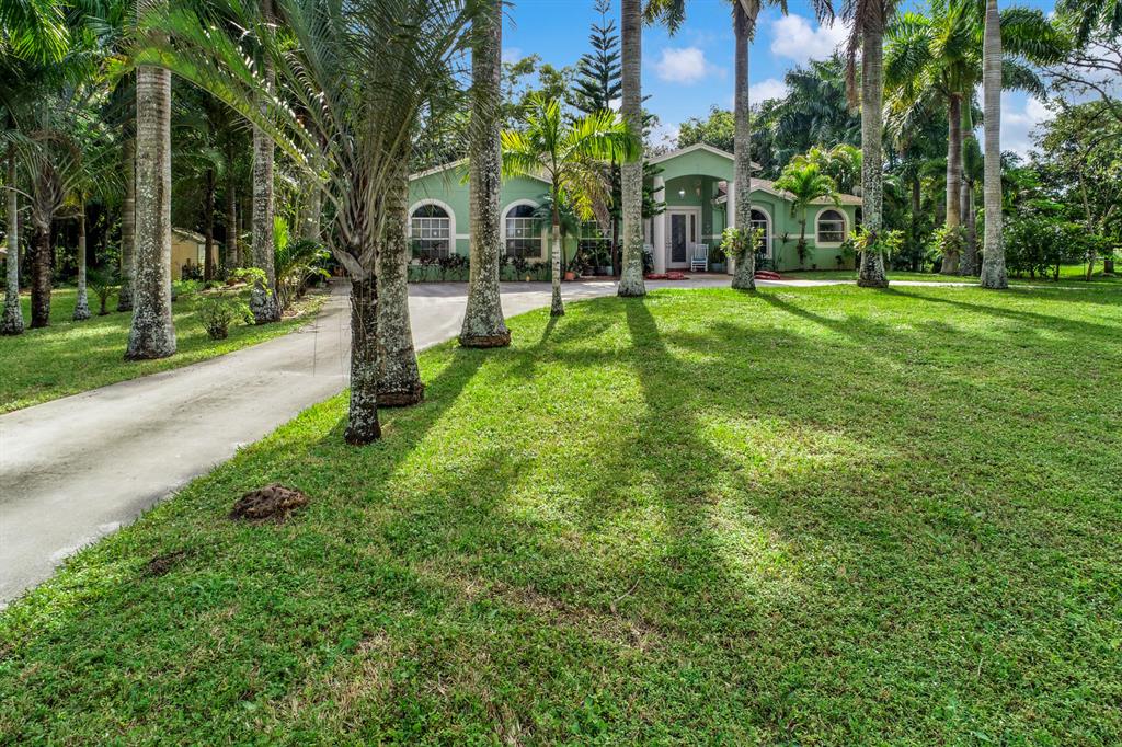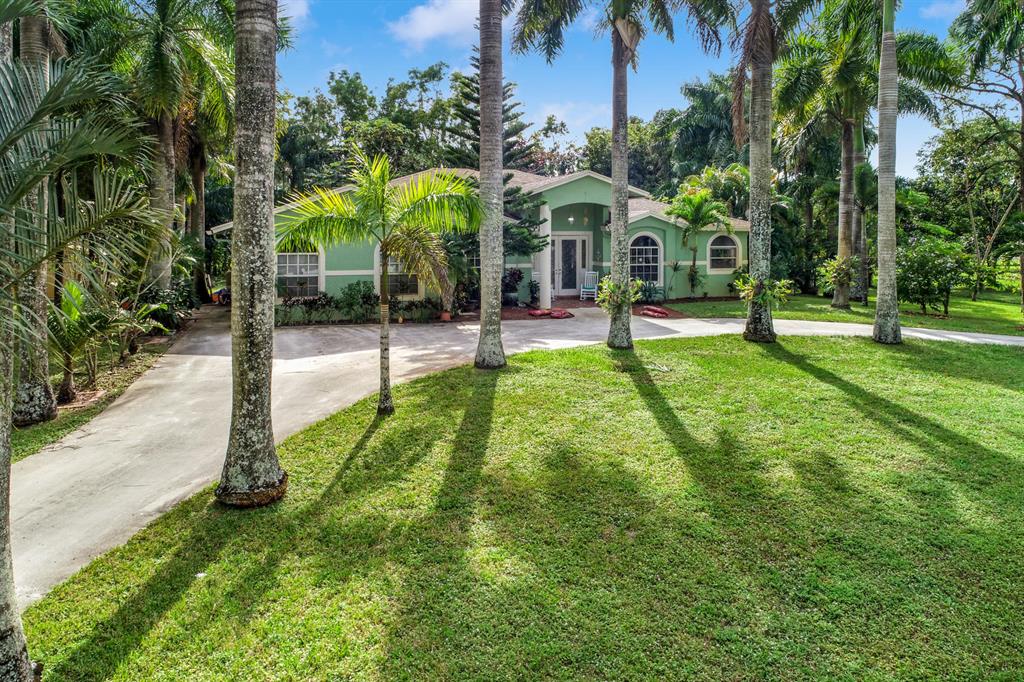 Country Living at it's finest. This 5 Bedroom 3 Bath house in Loxahatchee features an in law suite complete with kitchen and separate entrance, tiled flooring throughout, an enclosed patio for an additional den space, a completely remodeled kitchen with updated cabinets and granite counter space. With over 1 acre of beautifully landscaped land with big Palm Trees, fruit trees, and plenty of room to spread out, this house is great for entertaining. Offering seller concessions or Flooring credit of $15,000