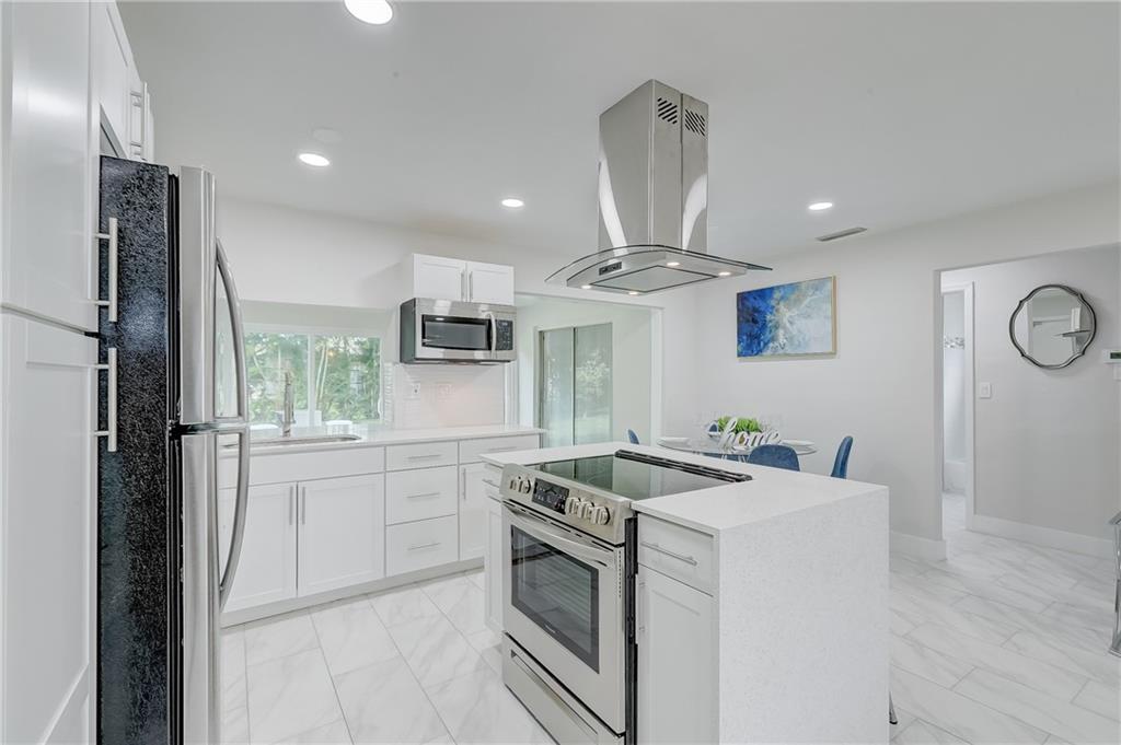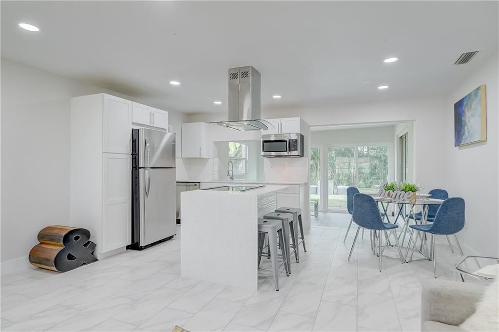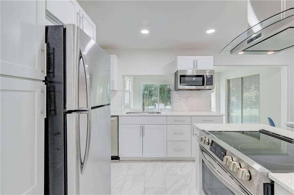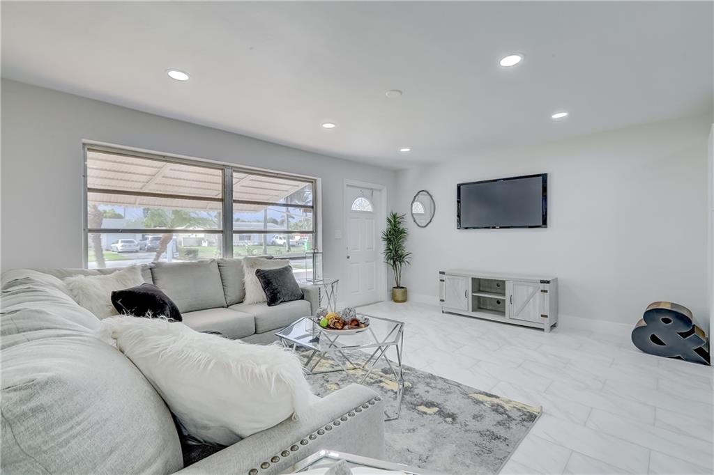 **Multiple offers, Please see brokers notes** New year, new home! Hello beautiful! Modern fresh and clean, brand new AC, tile (carrera marble style) throughout. New sleek kitchen with waterfall quartz island, new high end SS appliances, new bathrooms, tons of extra living space with a fully enclosed Florida room. LED spot lights, new landscaping and fully enclosed private tropical yard. Stamped concrete driveway. New roof 2017, impact garage door. See it, like it, buy it!