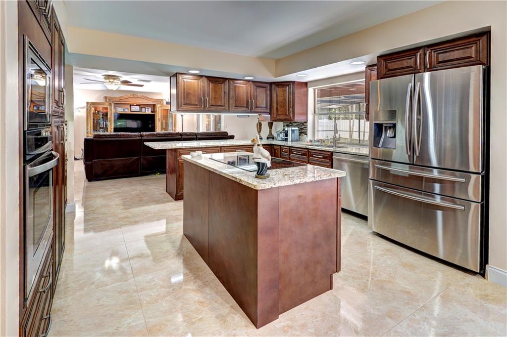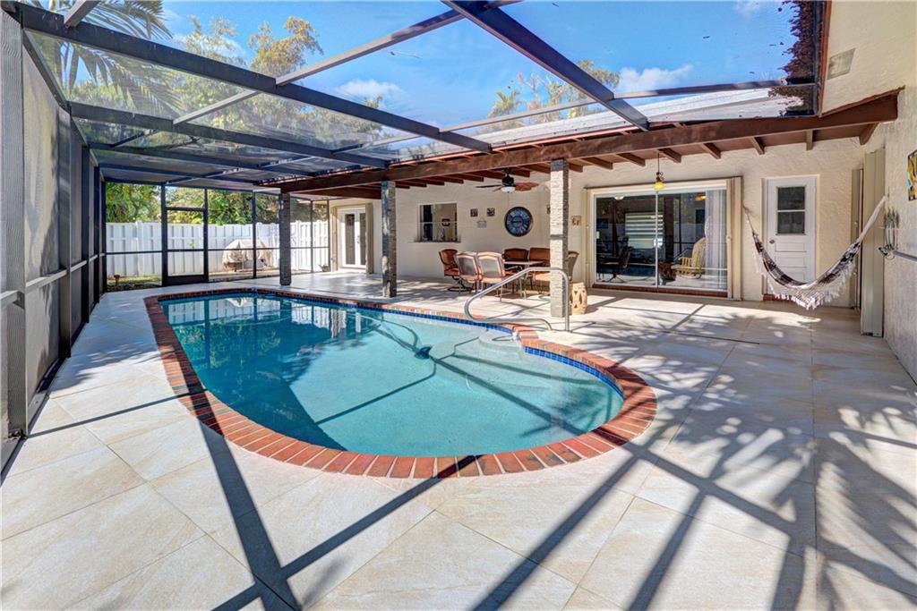 Don't miss this spacious, extremely UPDATED home!! Drive up to this secluded 4 bedroom home on oversized private lot with driveway long enough to fit 8 cars. This lushly landscaped home features large living area, formal dining, oversized family room & great updated eat-in kitchen with newer appliances & recently replaced French doors leading to screened patio area. Large laundry room with extra storage. Newer pavered driveway, hurricane impact windows in the front of the home, Brazillian Porcelain tile, Brazillian granite counters in the kitchen, new kitchen features pull outs, accordion shutters in the back of the home, screened pool enclosure, large master bedroom, walk in closets, this home has it ALL!! NO HOA!