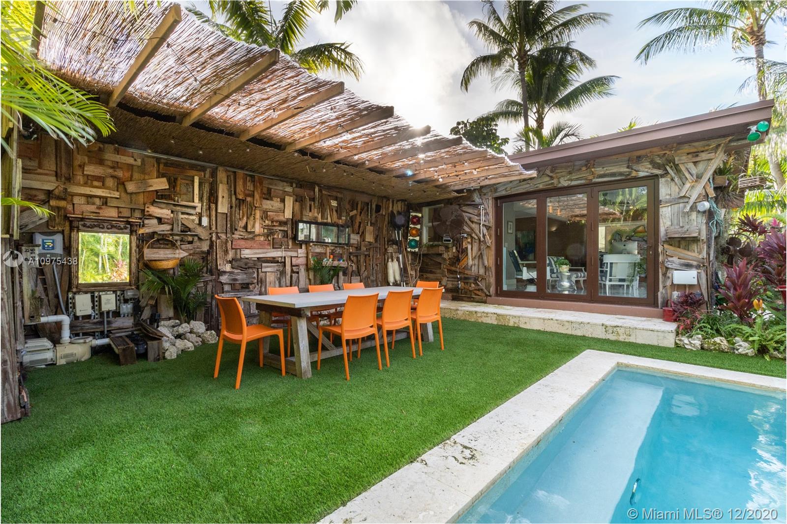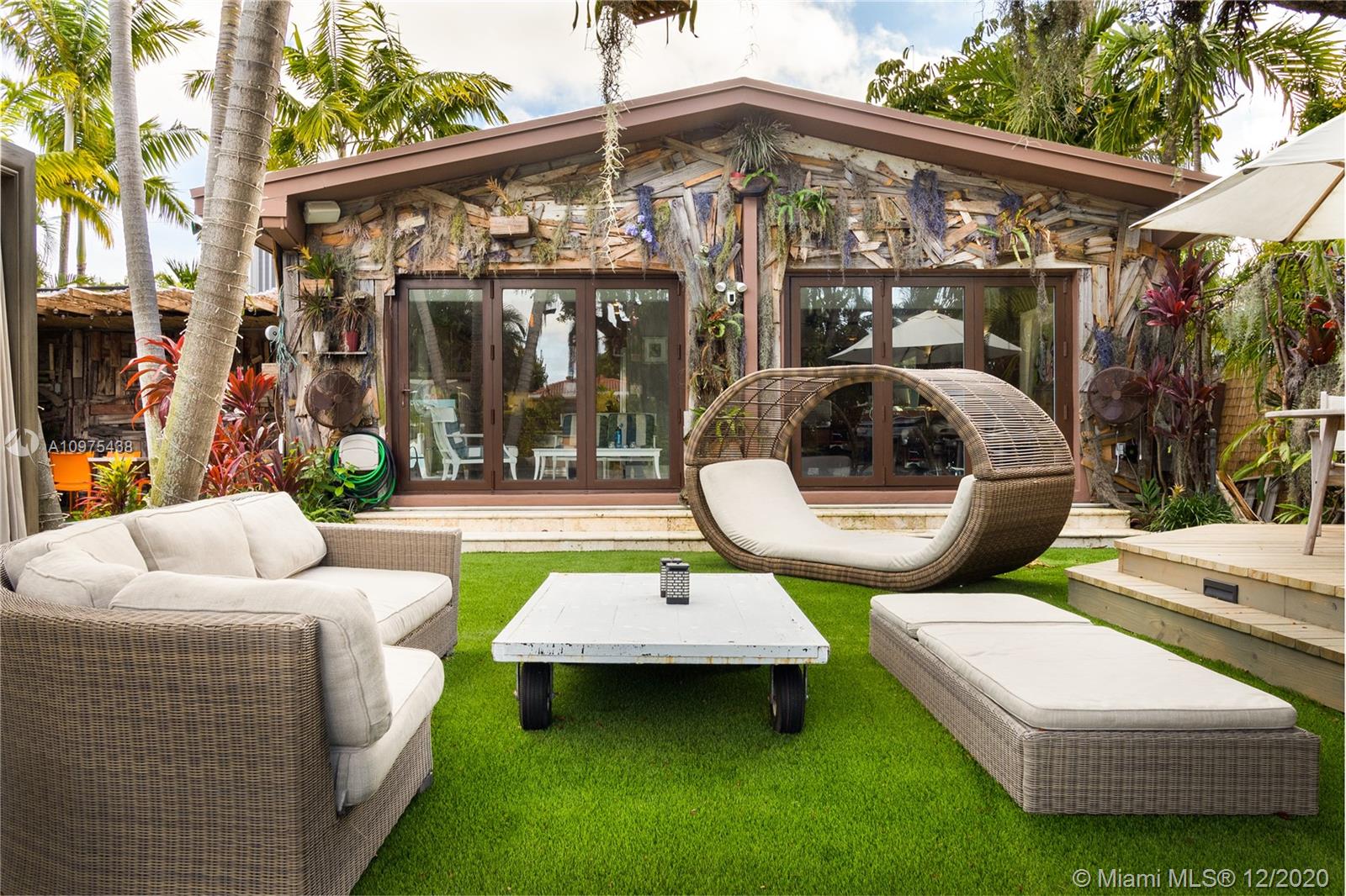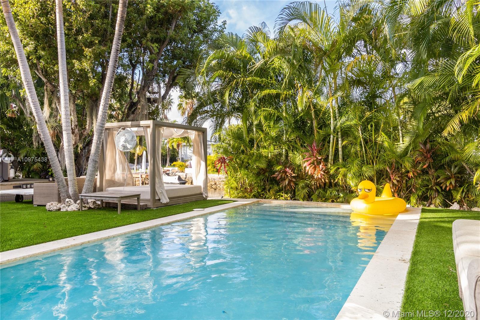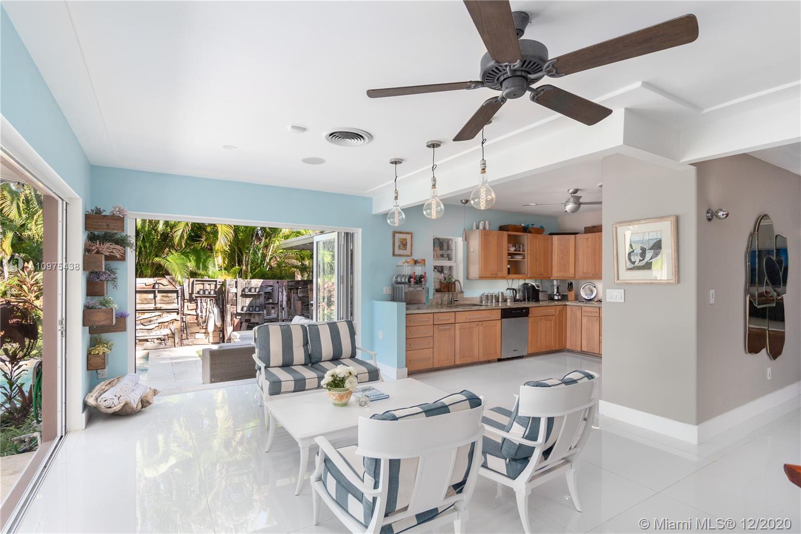 One of my favourite homes on the island and this is why. Modern waterfront gem on the highly desirable, gated island of Biscayne Point. Impeccable style & details throughout w/24 X 24 glass-tile flooring, impact windows with sliding tri-fold doors accessing the garden, dock and pool. Granite countertops, custom wall-designs, sound systems & beautiful natural light throughout. Three generous size bedrooms and half-bath for your guests. Open floor layout flows into a backyard with multiple areas for entertaining & dining. Newer multi-leveled pool, surrounded by lush tropical landscaping & open space creates a perfect blend of comfort & privacy, with plenty of room for your boat and jet-ski's. Only three homes to the Bay. 60-feet water frontage. One fixed bridge. Plans for addition included.
