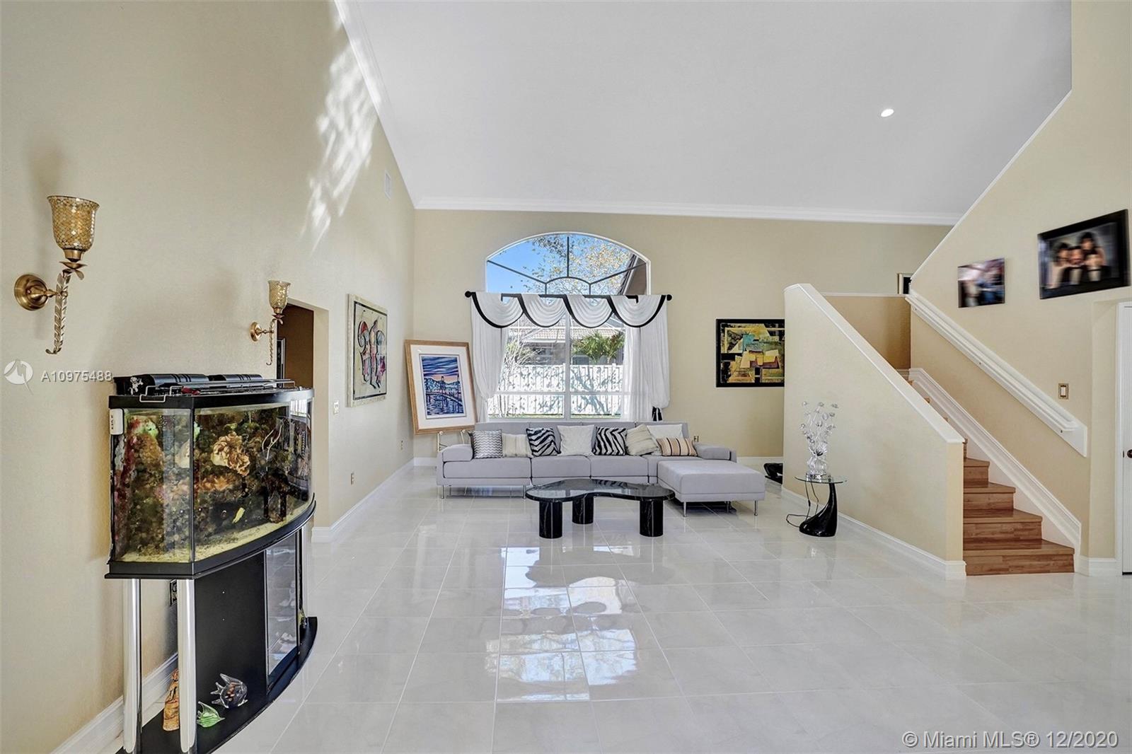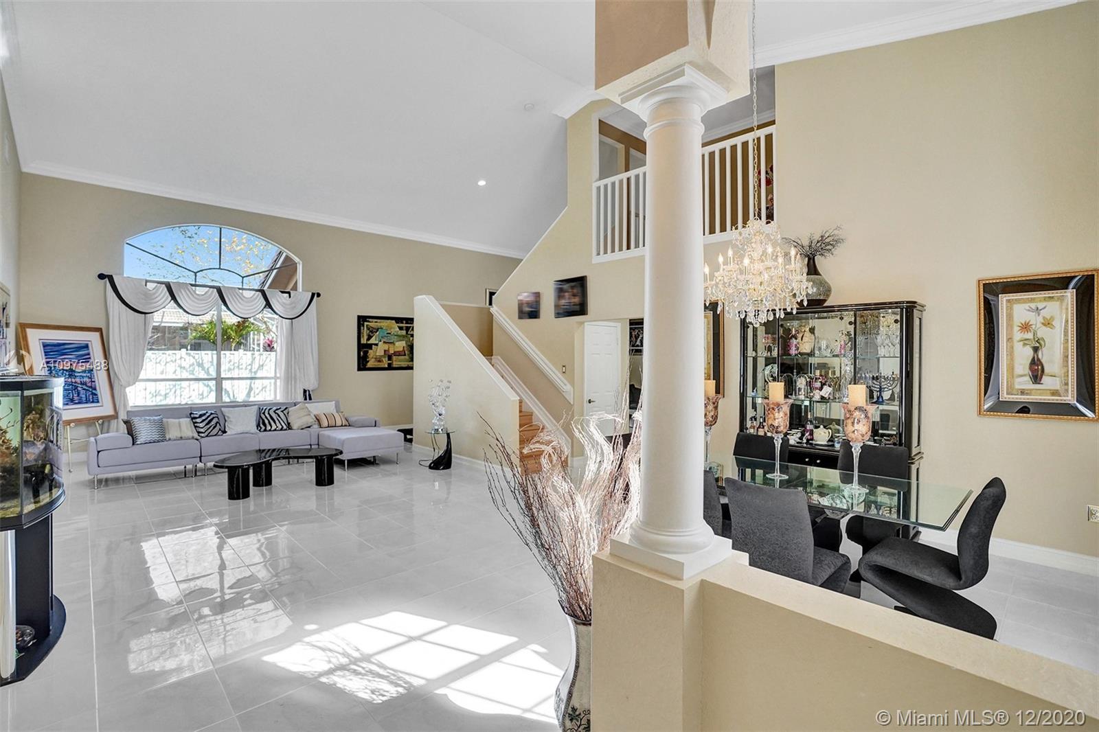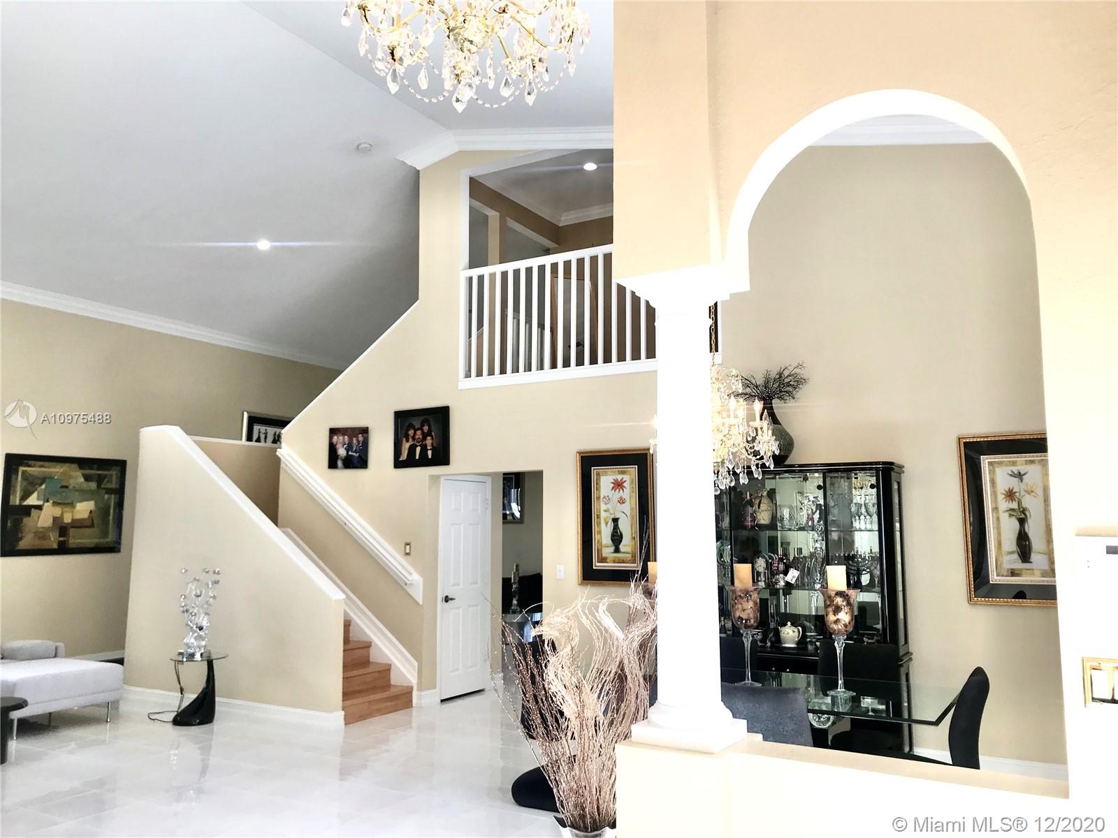 Exquisite Pembroke Falls home with 5 bedrooms + loft, 3.5 baths & 3 car garage. Enter into soaring high ceilings, an open floor plan & marvelous architectural details. The kitchen boasts quartz counters, acrylic cabinets, stainless appliances, mosaic metal backsplash & a walk in pantry. Fabulous layout with the master & office (5th room) downstairs, and upstairs are 3 more bedrooms + a loft. The master suite is very spacious, has 2 closets (1 large walk in), a renovated bath with corner tub, separate glass/tile shower & 2 sinks. Other features include crown molding, custom light fixtures, laundry room with tub & fenced yard. Resort style community clubhouse has pool, gym, yoga, 8 tennis +3 basketball courts, jogging/ biking trails, playgrounds, manned gated & HOA includes cable/internet.