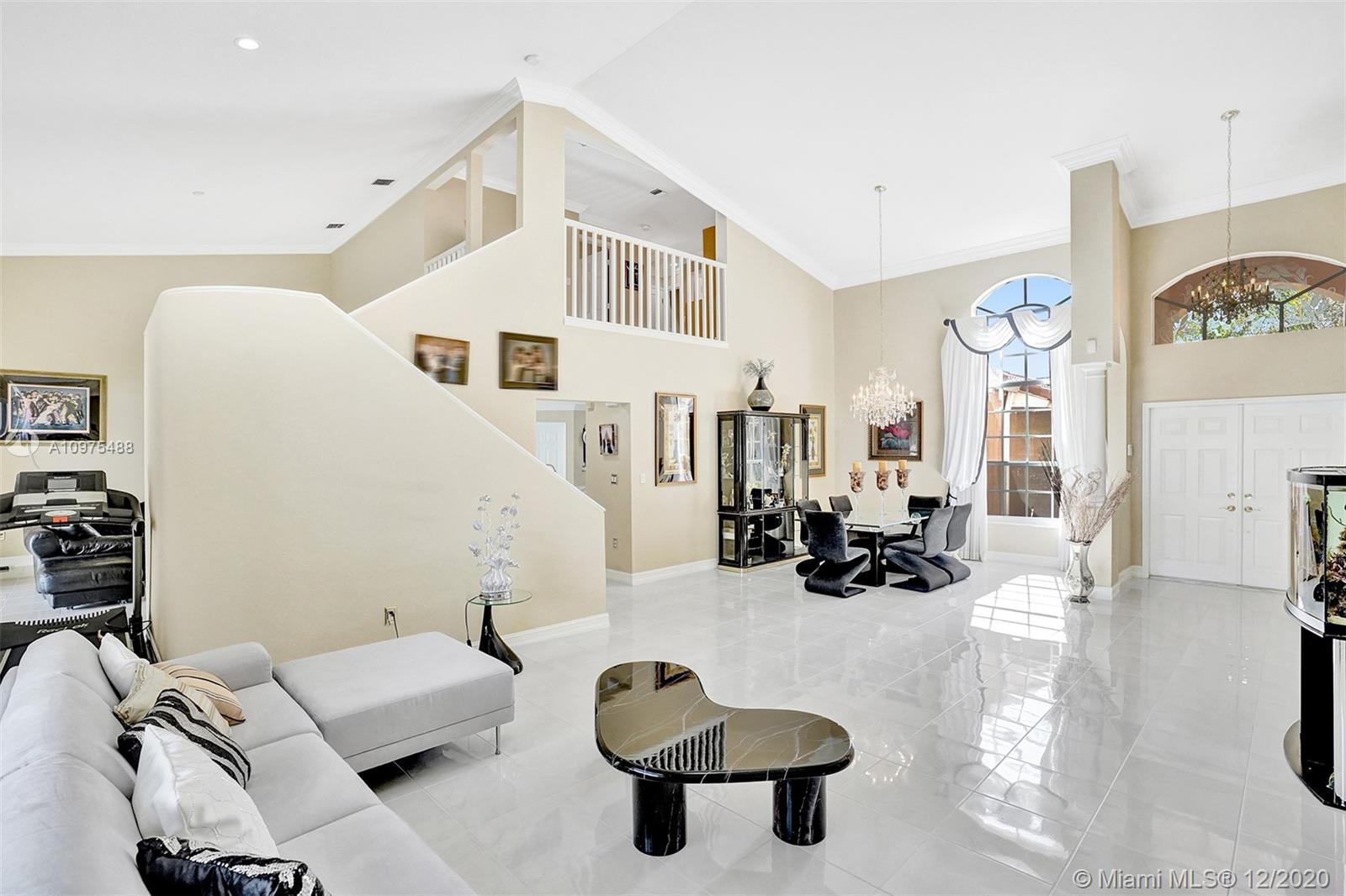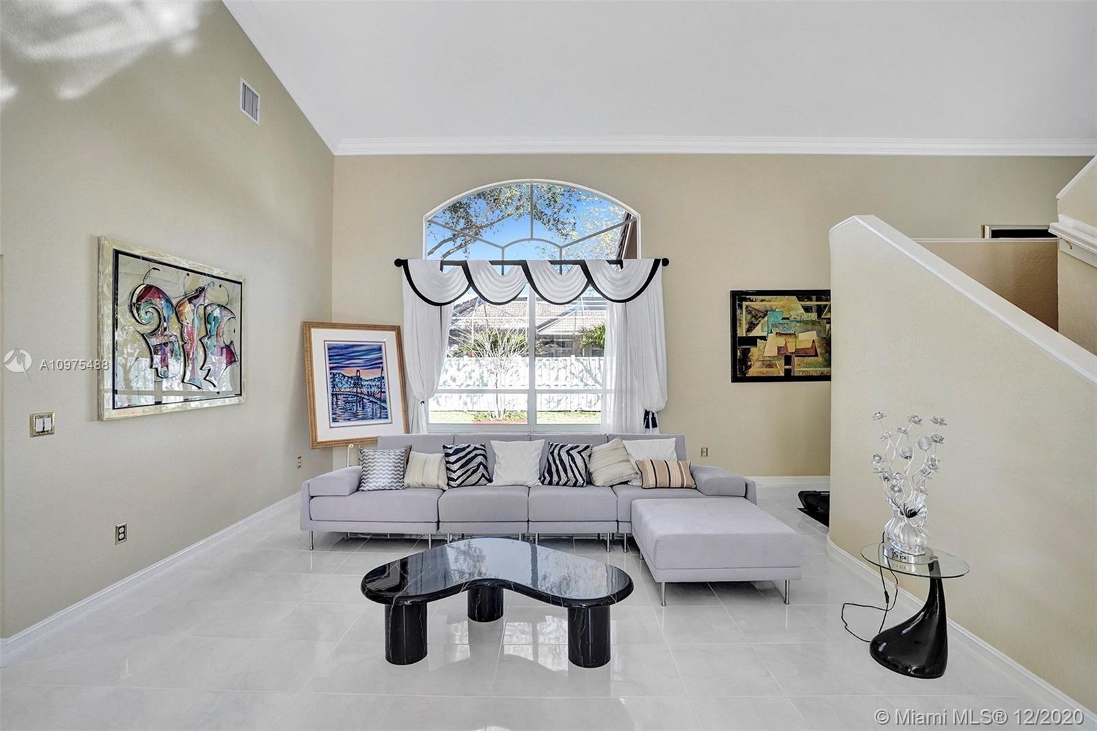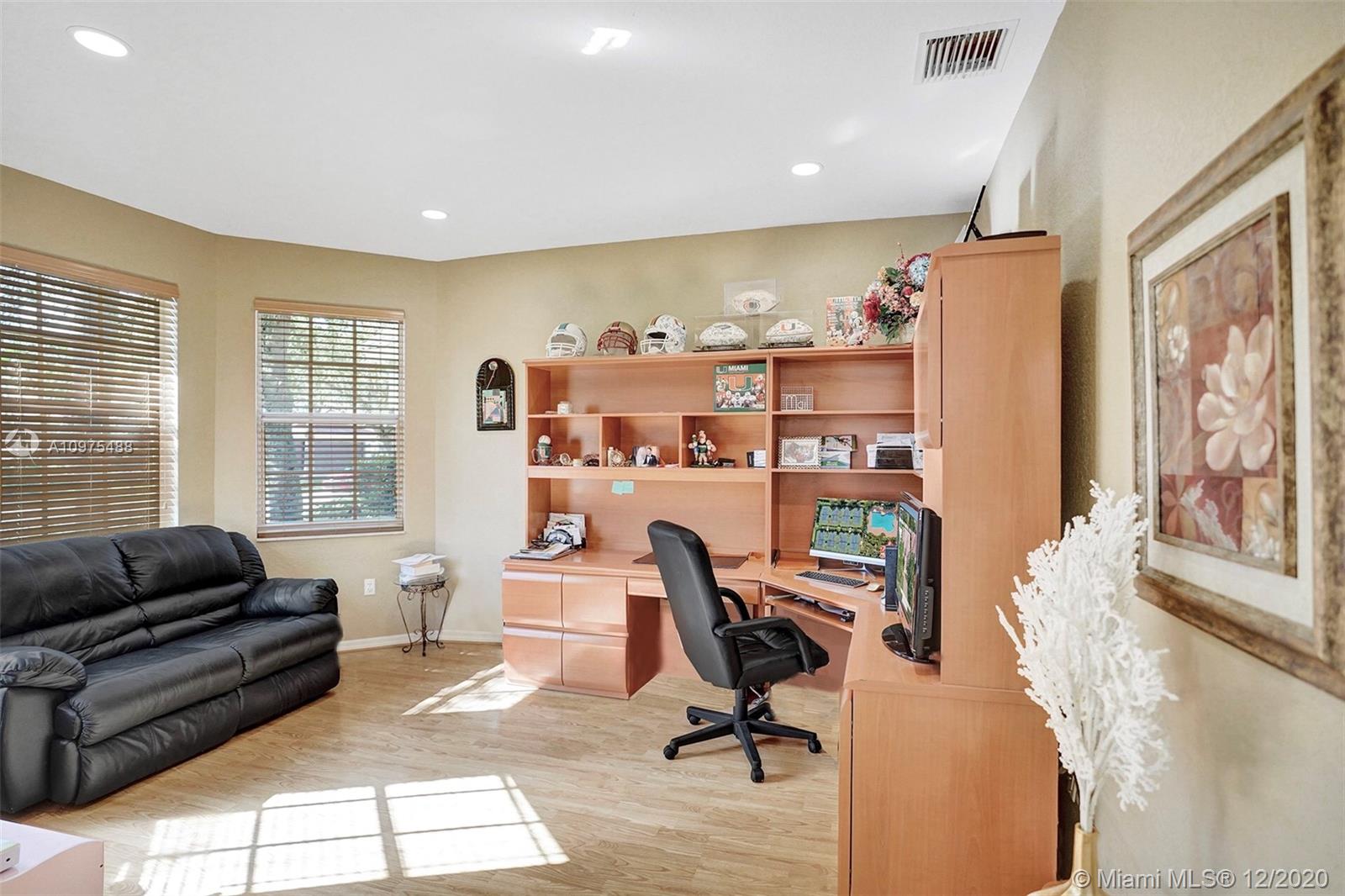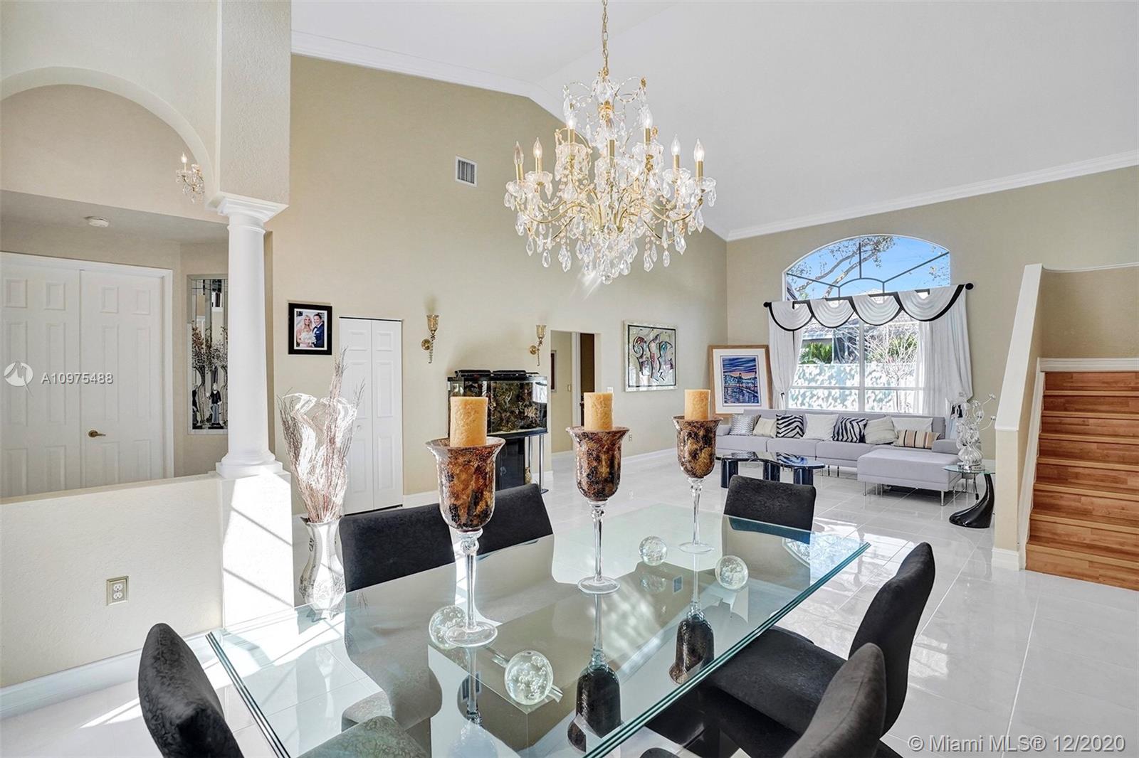 Exquisite Pembroke Falls home with 5 bedrooms + loft, 3.5 baths & 3 car garage. Enter into soaring high ceilings, an open floor plan & marvelous architectural details. The kitchen boasts quartz counters, acrylic cabinets, stainless appliances, mosaic metal backsplash & a walk in pantry. Fabulous layout with the master & office (5th room) downstairs, and upstairs are 3 more bedrooms + a loft. The master suite is very spacious, has 2 closets (1 large walk in), a renovated bath with corner tub, separate glass/tile shower & 2 sinks. Other features include crown molding, custom light fixtures, laundry room with tub & fenced yard. Resort style community clubhouse has pool, gym, yoga, 8 tennis +3 basketball courts, jogging/ biking trails, playgrounds, manned gated & HOA includes cable/internet.