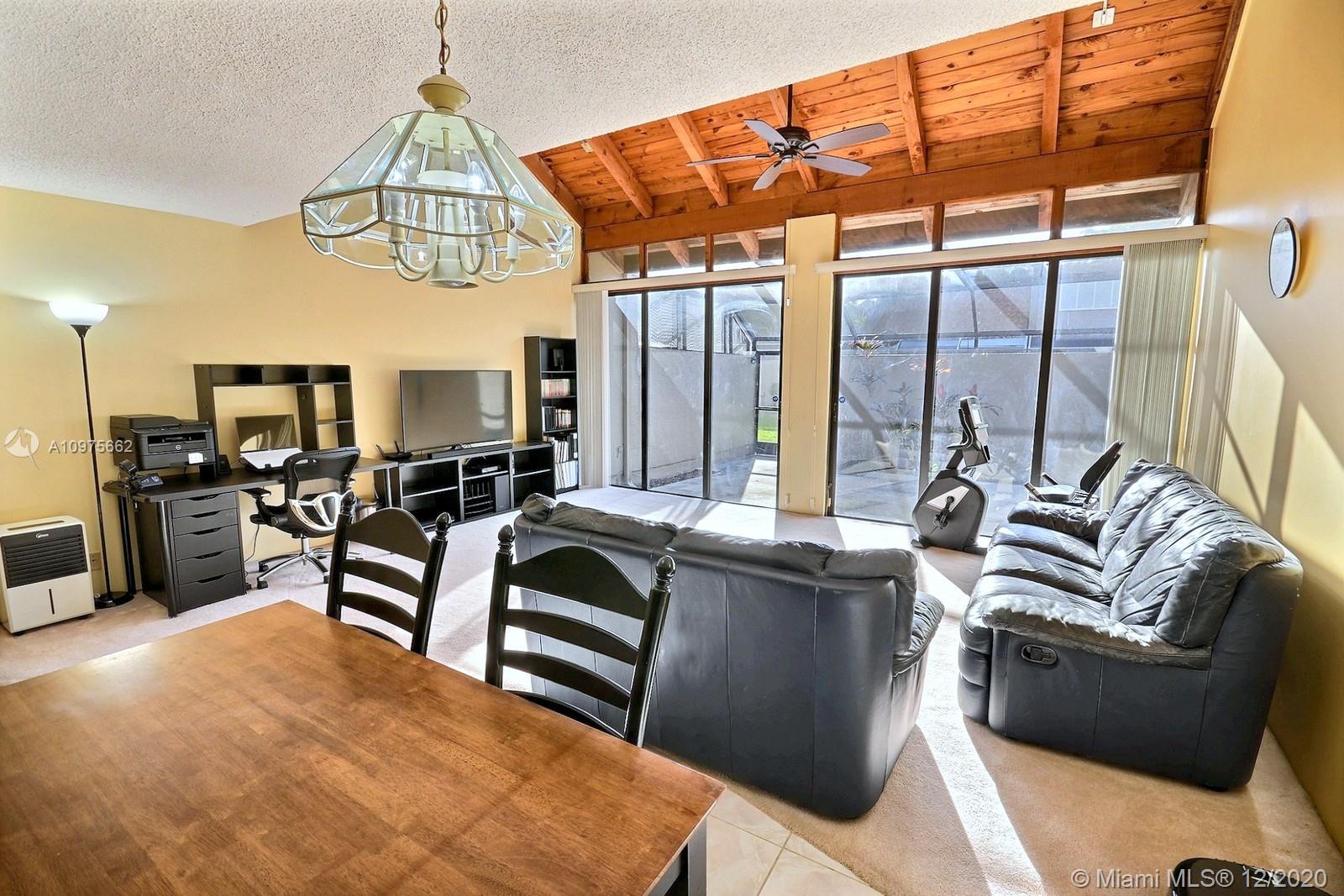 LOVELY 3 BEDROOM 2 BATH TOWNHOME IN HIGHLY DESIRABLE VILLAS WEST COMMUNITY OF PEMBROKE PINES. WELCOMING PRIVATE GATED ENTRY OPENS INTO A CHARMING PERGOLA-TOPPED COURTYARD WITH APPEALING LANDSCAPING. UPDATED OPEN KITCHEN WITH WOOD CABINETS, GRANITE COUNTERS WITH VIEW TO THE LIVING ROOM AND TO THE PATIO. HUGE LIVING AREA WITH FABULOUS VAULTED WOOD-BEAMED CEILINGS, OPENS TO LARGE SCREENED PATIO. DESIRABLE FLOOR PLAN WITH 1 BEDROOM AND FULL BATH ON THE FIRST FLOOR. LARGE UPSTAIRS PRIMARY BEDROOM WITH WALK-IN CLOSET. ENJOY LOW HOA FEES IN A WELL-MAINTAINED COMMUNITY. CONVENIENT LOCATION IN THE PEMBROKE LAKES AREA IS MINUTES TO DESIRABLE PEMBROKE PINES SCHOOLS, RESTAURANTS, SHOPS, BANKING & TO MEMORIAL WEST HOSPITAL.