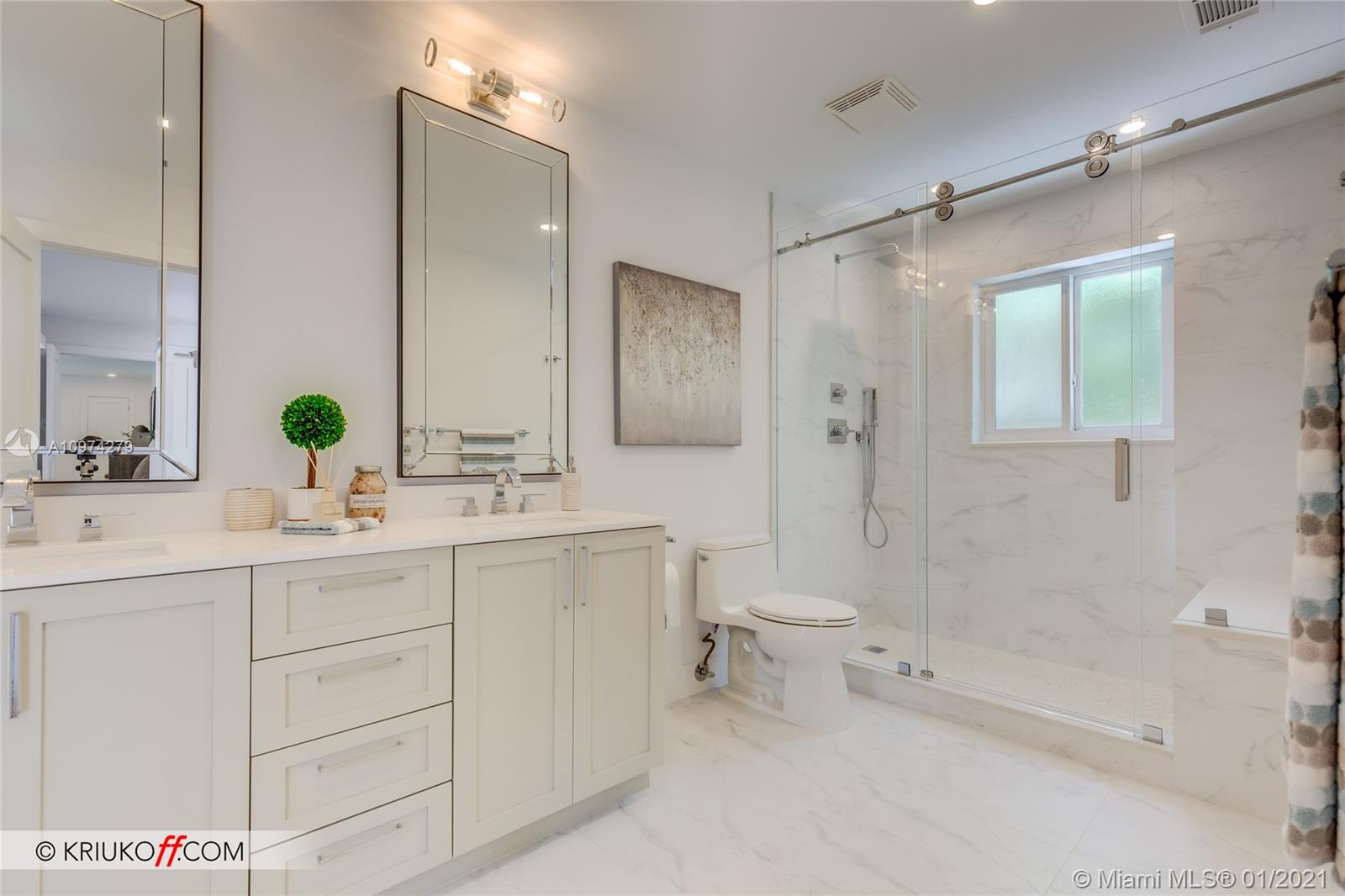 A MUST SEE HOME IN THE GATED COMMUNITY OF SAN SOUCI. COMPLETELY RENOVATED, WITH NO EXPENSES SPARED. BEAUTIFUL PROPERTY FEATURES 4BR/3BA, NEW ROOF, 2-3 YEARS OLD AC W/WARRANTY, ALL NEW GE APPLIANCES, NEW BATHS, NEW DECK W/ELECTRIC HOOK UP FOR SPA, HEATED POOL & CUSTOM PUMP HOUSE, PRIVATE BACK YARD, CABANA BATH, NEW SPRINKLER SYSTEM, WIRING FOR STERO SYSTEM, PROFESSIONALLY DECORATED (FURNITURE CAN BE PURCHASED), A WOMENS DREAM WALK IN PANTRY & GORGEOUS LAUNDRY ROOM W/NEW WASHER & DRYER, TANKLESS WATER HEATER, CUSTOM ELECTRIC BLACK OUT SHADES, CALIFORNIA CONTEMPORARY DRIVE WAY & SEPARATE WALKWAY W LUSH LANDSCAPING, LARGE MASTER & LARGE WALK IN CLOSET W/BARN DOORS. NOTHING LEFT OUT, MOVE RIGHT IN. MUST SEE, WON'T DISAPPOINT! GREAT LOCATION CLOSE TO BAL HARBOUR,BEACH,NEW WHOLE FOODS NEW PUBLIX