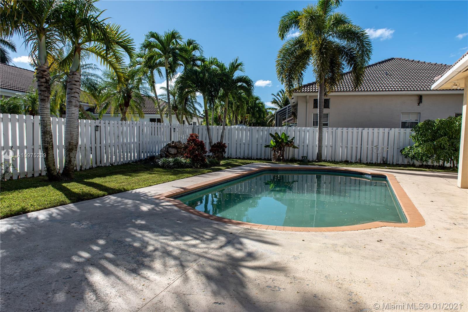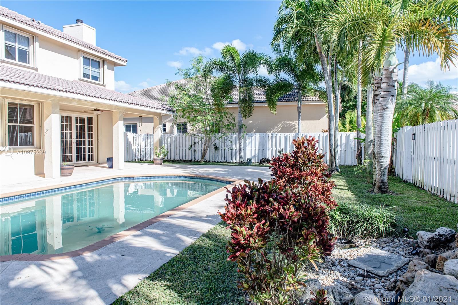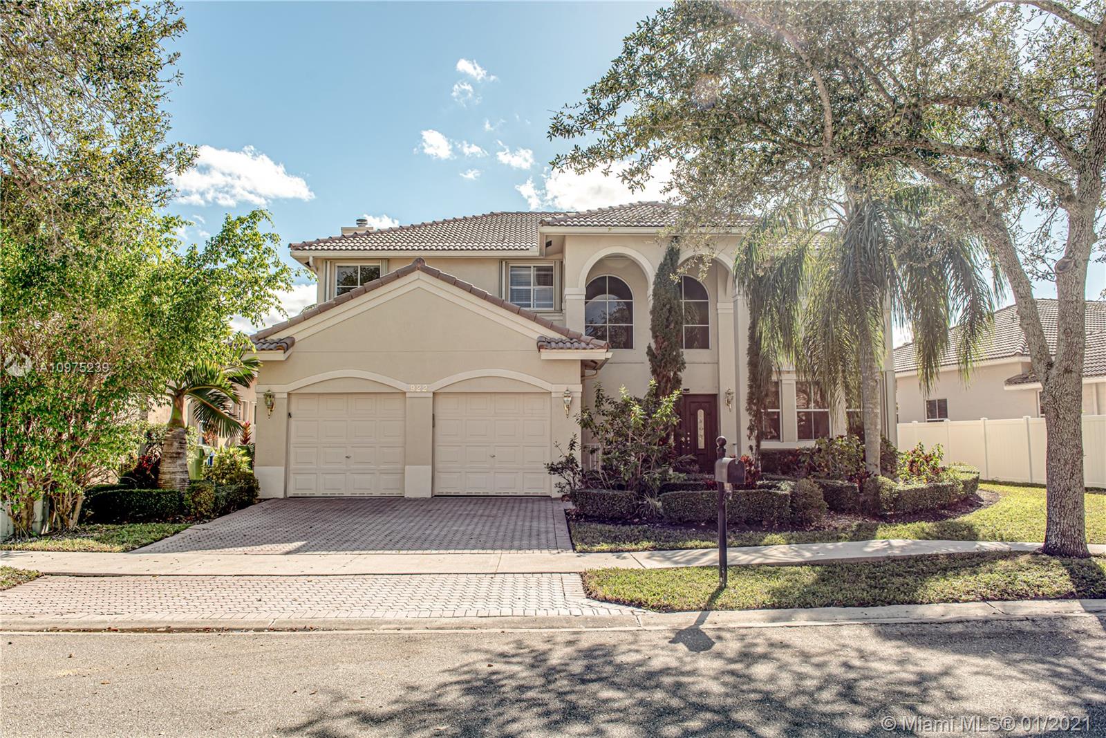 Beautiful two story home with pool located in the gated community of THE MEADOWS. Kitchen updated with Wood cabinets, Granite Counter-tops, Stainless Steel Appliances & Breakfast Area. Neutral Tile throughout upstairs and downstairs and lots of natural light. Large fenced private yard with large pool and concrete deck - great for family time and entertaining guests. Accordion Shutters -- Weston 24 hour guard-gated community (The Meadows) with community pool, tot lot, excellent A+ Weston Schools, Must See, Use Showing Assist.