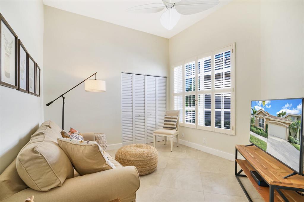 Premium lot, premium upgrades, and fabulous renovations in this gorgeous and updated golf course home! Located within walking distance of Ibis's fine amenities, this 3BR/2BA is graciously situated on the Heritage Course with an ideal South-East exposure. Enjoy the best of Florida living from the large, fully screened lanai overlooking world-class golf. Roof replaced in 2007, Accordian shutters protect the home, gorgeous 24x24'' tile flooring throughout. Both bathrooms have been remodeled and feature custom contemporary cabinetry, quartz tops, frameless showers, and luxurious tile. The kitchen boasts elegant Crystal cabinetry and white counter tops and white upgraded appliances. Quality office built-ins transform the guest bedroom into a convertible office. Move in and enjoy Ibis on Day 1!