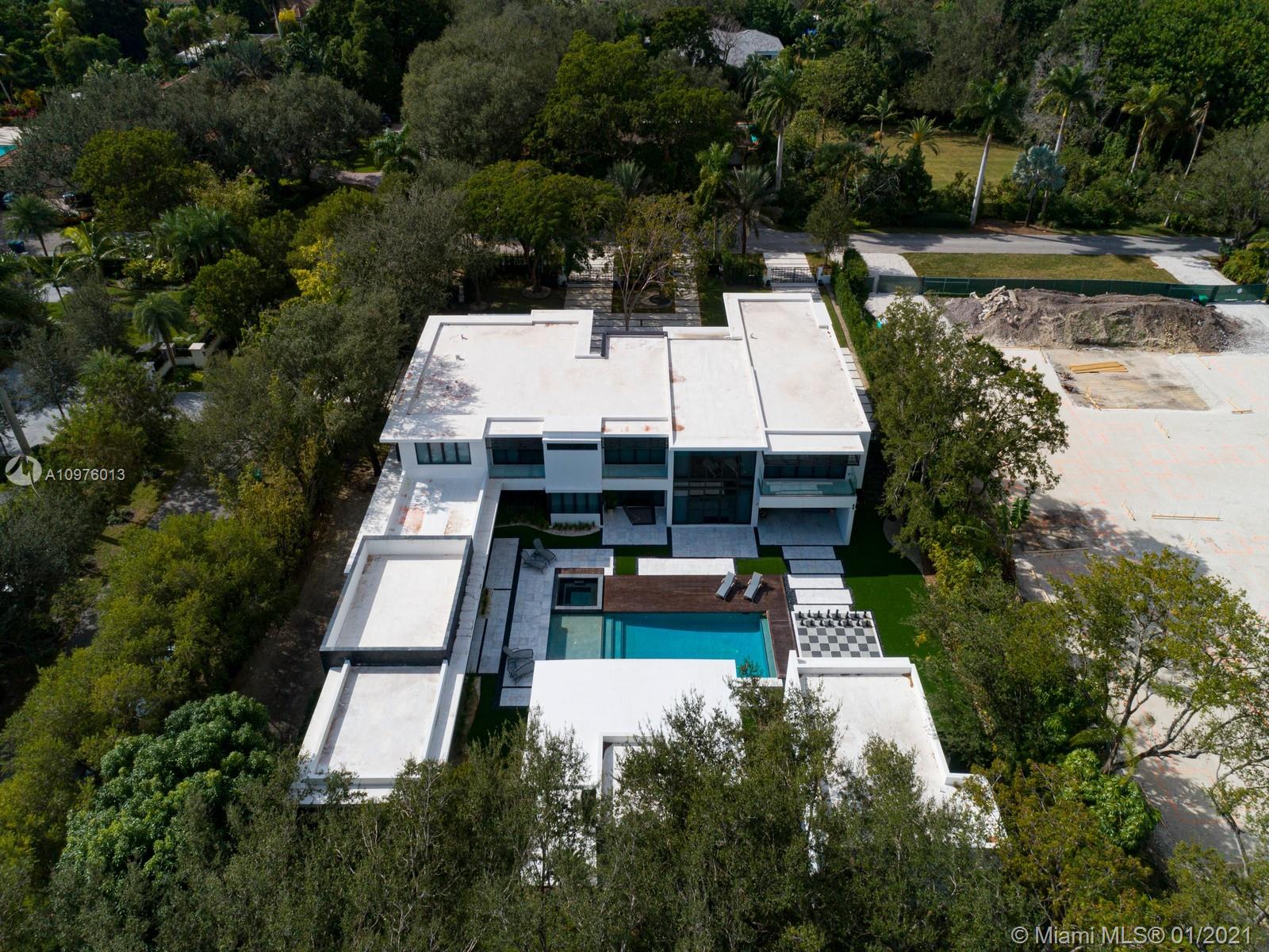 Located in the prestigious, sought-after neighborhood of N. Pinecrest this NEW modern estate is a unique compound comprised of 3 structures: main house, guest house & separate gym & media/play room situated on a 1.1 Acre walled & gated corner lot. Ingenious architectural masterpiece by renowned architect Eduardo Calil was designed as a tropical oasis w/ extensive use of glass throughout, Ipe accents including pool deck, features Zen waterfall, reflecting pools, and Mega Chess. White Carrara marble flrs provide a clean modern look throughout the house. Ideal family home boasting 7 BRS in the main house, w/ separate master wing, 100 bottle glass wine cellar, elevator, outdoor “Living Room”, cabana bath, mature landscaping & outdoor showers.