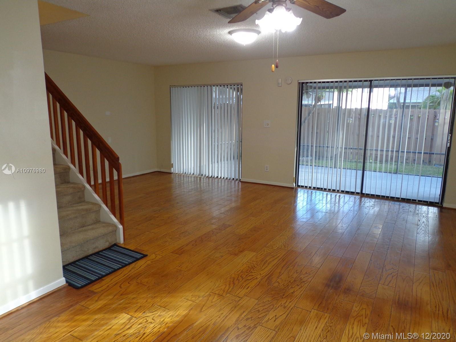 Corner 3/2.5 with garage in Family community. Real wood floor in LR, Carpet bedrooms updated cabinets, accordion shutters, Large covered screened porch, fenced yard, well maintained. ASIS Extra storage. NO LEASING FOR 3 YEARS $240/month maintenance covers exterior ins, roof repair, basic HD cable, community pool. Near Pembroke Lakes Mall, Turnpike & I-75. CB Smith and Brian Piccolo Parks, Hospitals, Drs, Walking distance to bus Routes, restaurants, & shops. Great area!