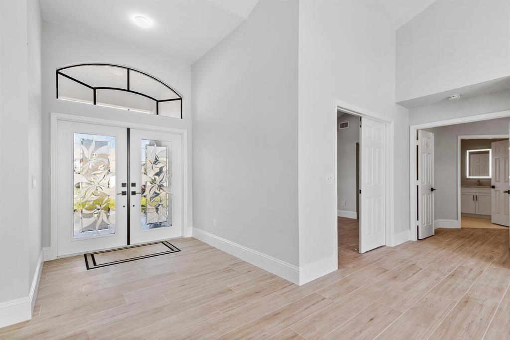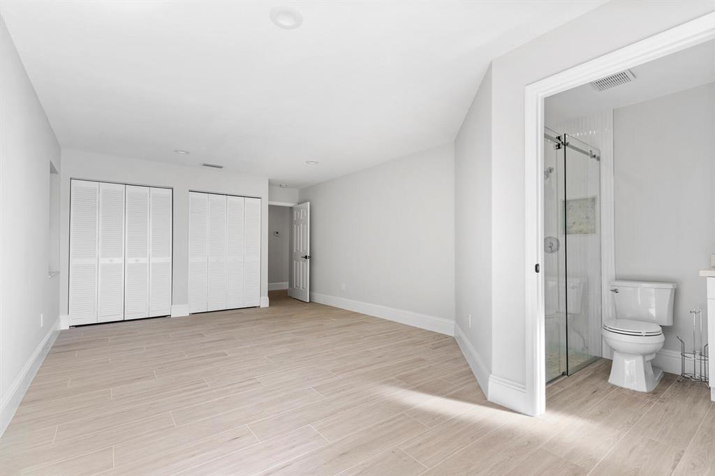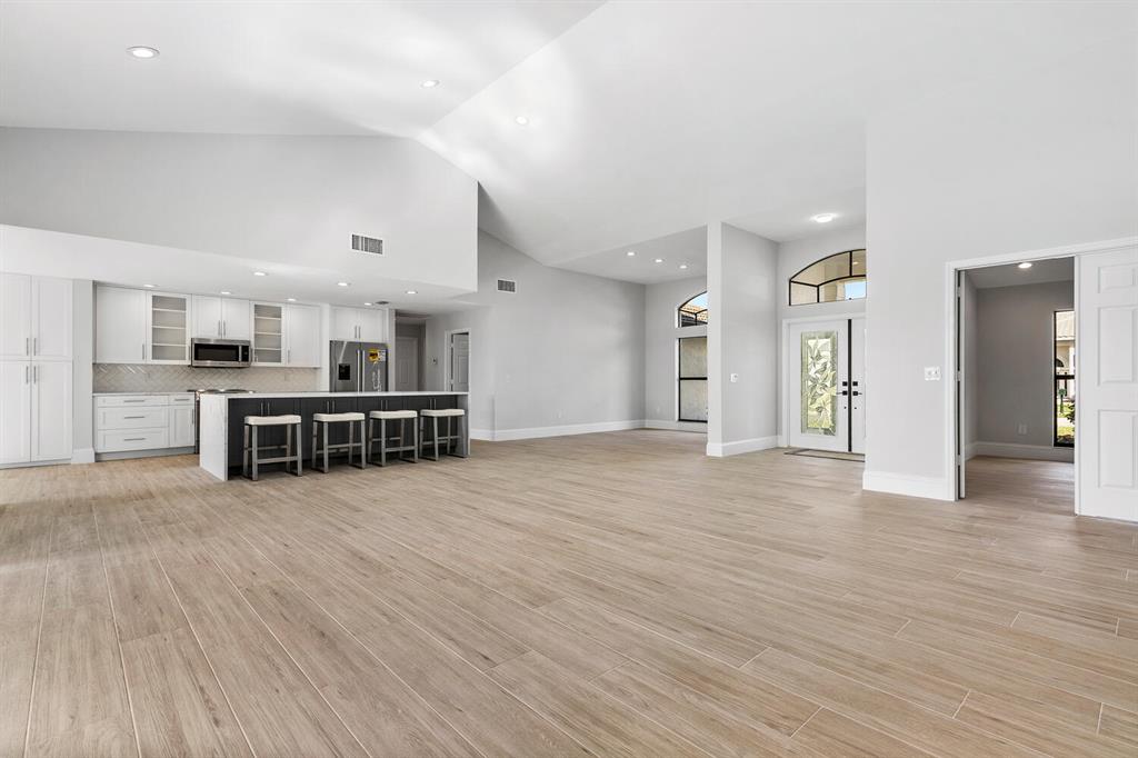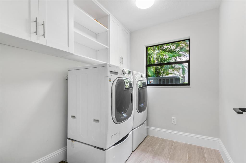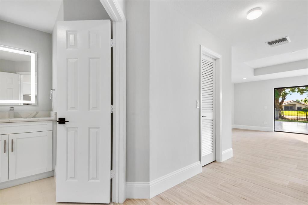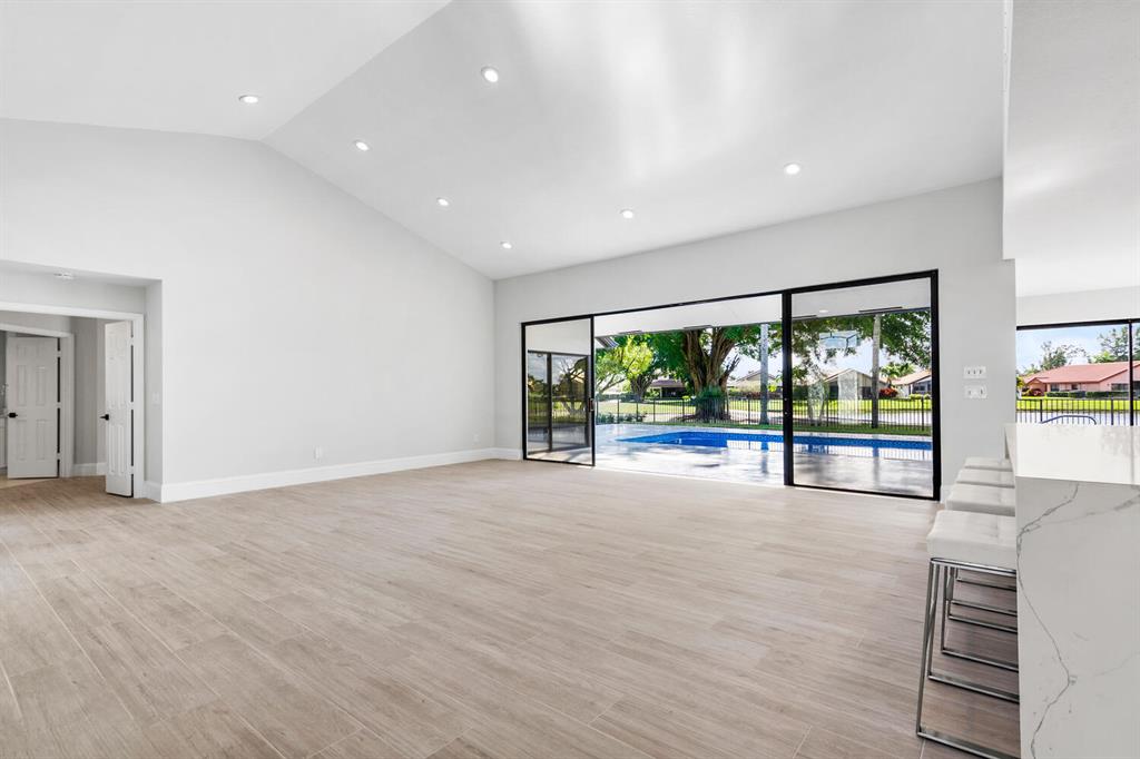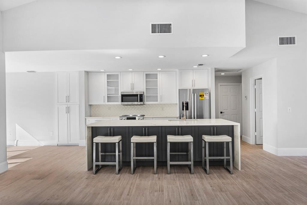 Stunning newly renovated 3 bedroom, 2.5 bath pool home w/lake views. Italian porcelain plank flooring throughout. New kitchen & baths include solid wood shaker cabinetry, high end designer quartz countertop throughout. Brand new never used Bosch Appliances w/LG front loading washer & dryer w/small wash drawer. 10 ft. island w/pull out drawers for dishes. A/C 2018. New marble drive + walkway. Expanded oversized marble pool patio pavers. Pool w/new diamond brite, pump & filter awaits you. Porcelain bath w/ designer tiles & high end fixtures. Garage freshly painted has a separate door and garage space for your golf cart. Lake and golf course views in between 2 golf courses, so NO GOLF CART traffic! Completely freshly painted inside and out. Enjoy the good life here in Boca Woods CC!