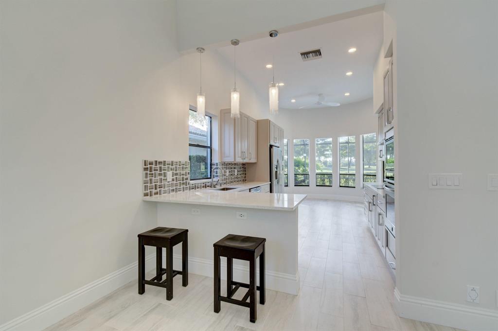 Experience the ultimate luxury Florida lifestyle in this spectacular home located in the desirable Stonebridge Country Club community. This showplace is nestled on the golf course, offering panoramic views and exceptional resort-style amenities. Newer (2017) AC for peace of mind. Fabulous eat-in kitchen features Shaker-style cabinetry, quartz countertops, stainless steel appliances, tile backsplash, and seated bar. Owner's suite features spacious walk-in closet and spa-like bath w/ double-sink vanity, sunken tub, and walk-in shower. Great Room w/ wet bar and wine fridge for easy entertaining. Expansive lanai features plenty of space for outdoor seating and dining. Gated Stonebridge features clubhouse w/ spa, pool, tennis, pickle ball and golf. Golf, social and annual memberships available.