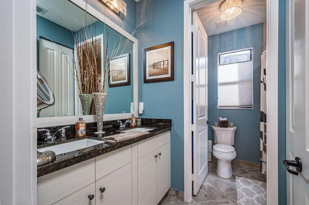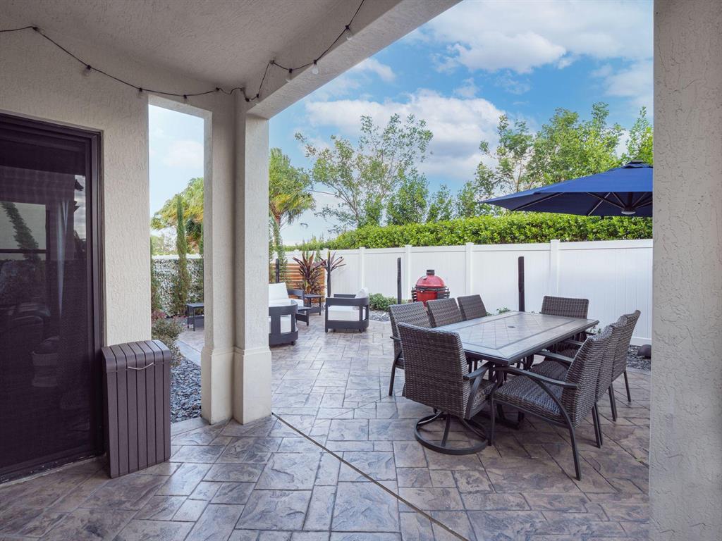 This beautiful, modern, wonderfully comfortable home is located in highly sought after Bonterra. This four bedroom, two and a half bath home is clean, wonderfully appointed and provides the protection of hurricane impact windows throughout. It features high ceilings, large windows, plenty of natural light and granite countertops throughout the home. The first floor boasts a gorgeous kitchen with granite countertops, beautiful cabinets, and plenty of space at the center island. Outstanding outdoor space provides the space and comfort you're looking for for gatherings, entertainment and relaxation. Precision stamped concrete, mature landscaping and privacy fence round out an outdoor paradise. Even the garage is decked out with professionally finished floors and overhead garage rack storage.