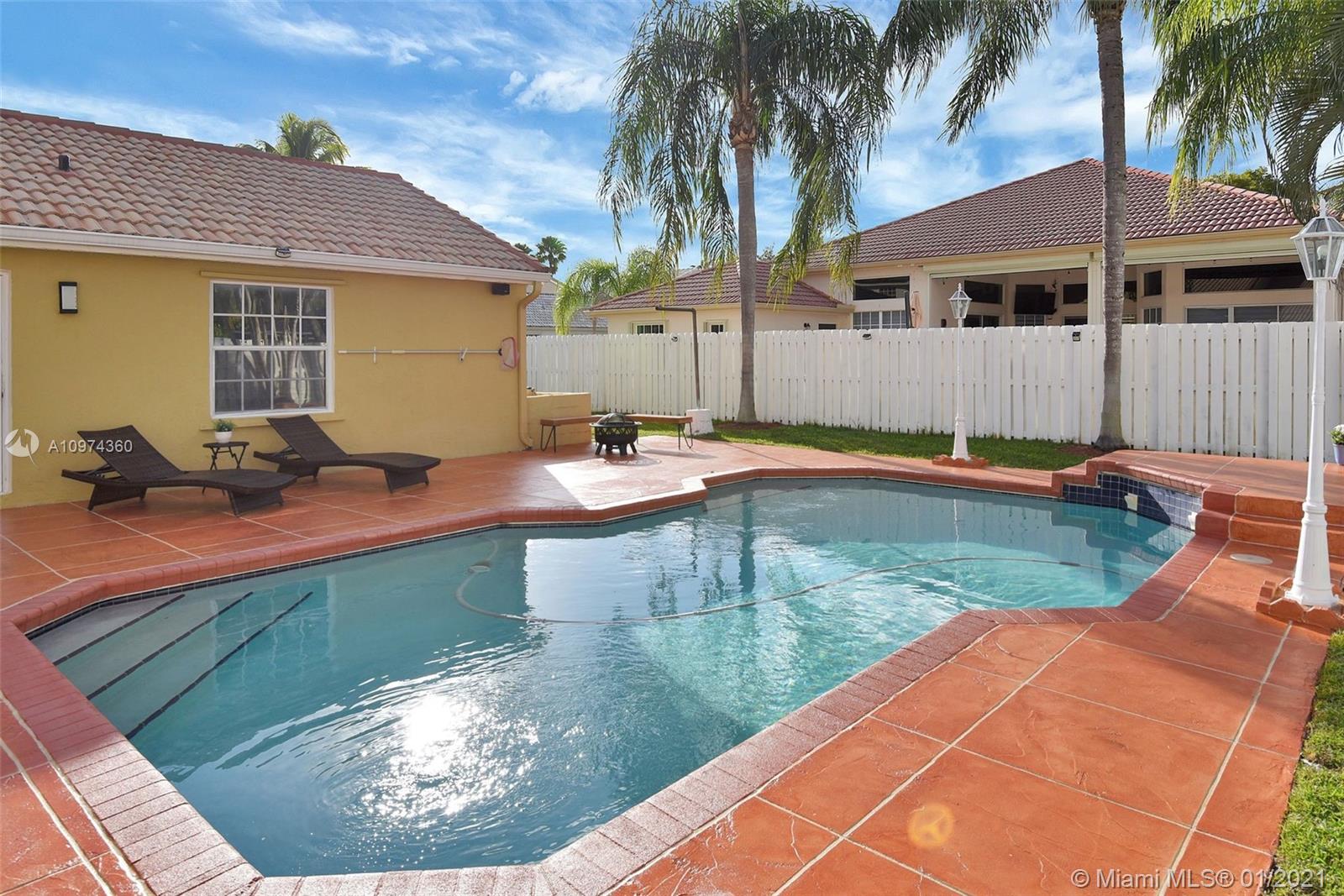 BEAUTIFUL POOL HOME IN THE AMAZING COMMUNITY OF THE LAKES IN WESTON. 5 BEDROOMS, 2 AND A HALF BATHROOMS WITH SPACIOUS LAYOUT. THERE'S A LARGE MASTER BEDROOM WITH 2 WALK IN CLOSETS, SITTING AREA, AND HOME OFFICE/BEDROOM WITH BUILT IN BOOKCASE. THIS HOME FEATURES A POOL WITH NEWLY REMODELED PATIO, DIMENSIONS APPROX 14’ BY 27’ AND ENCLOSED A/C PORCH. THIS COMMUNITY HAS A PARK AND PLAY AREA, SOCCER FIELD, BBQ PICNIC AREA AND COMMUNITY POOL. ENJOY WALKING DISTANCE TO PUBLIX, STARBUCKS, CVS, RESTAURANTS. A+ SCHOOLS. THIS HOME WON'T LAST, MOVE IN READY!