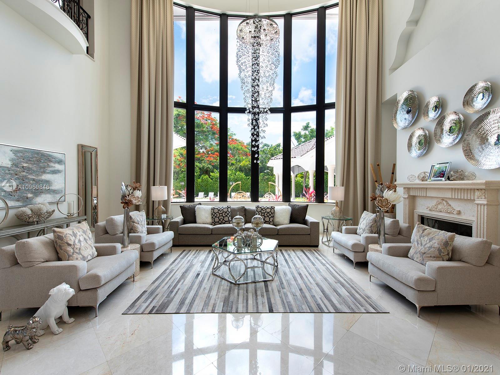 Spectacular Tuscan resort paradise! Classic and superior architectural design with exquisite, finest modern finishes and details! Stunning 28' soaring ceiling, marble, stone, and wood flooring. Designer luxurious appointments throughout. Unparalleled quality with elegant and sleek elements including smart house touch. Gorgeous and open vistas in every turn! Great floor plan. Lavish master suite! All en-suite generously sized bedrooms! Gourmet chef's kitchen, top of line appliances. Wine cellar, home theater, elevator. Additional playroom, office, and stunning open bar equipped with all entertaining features. Large summer kitchen, cabana bath! 20x45 open inviting pool and spa! Immense roofed patio. Sophisticated security system. Imposing entry! Lush landscaping! Sensational!!