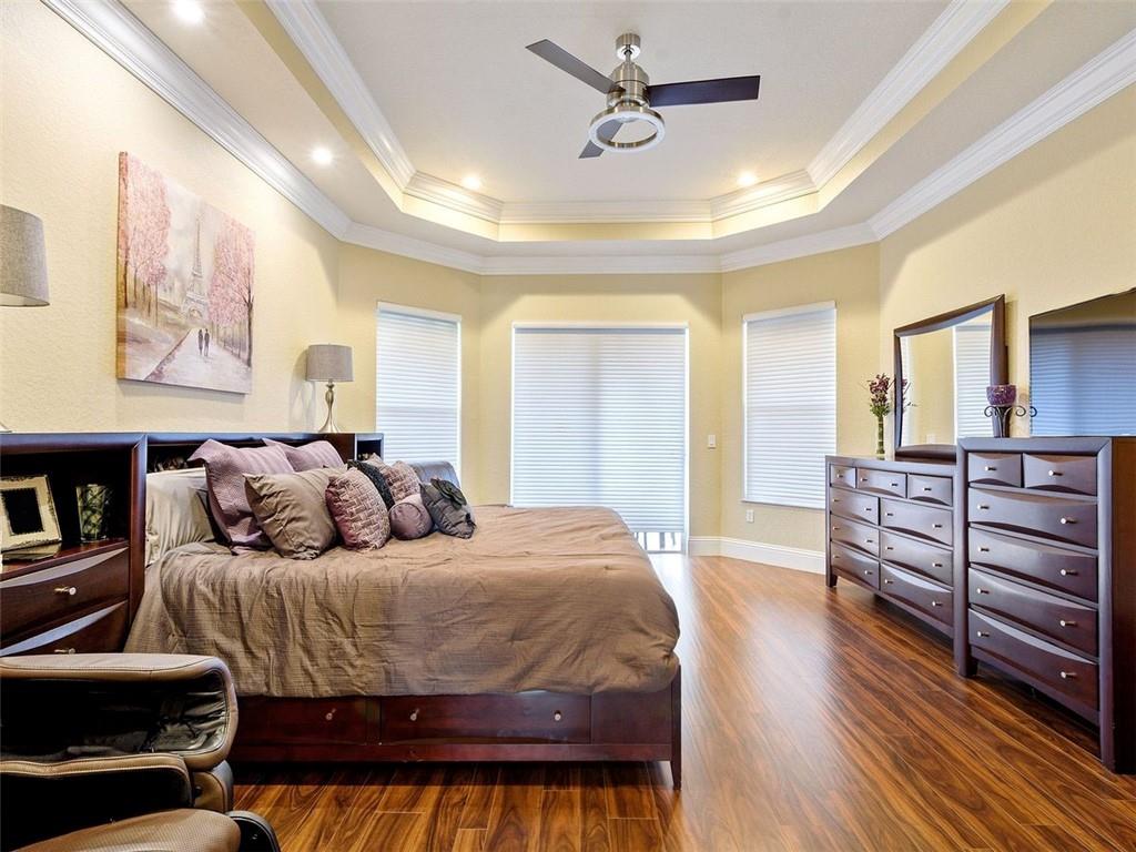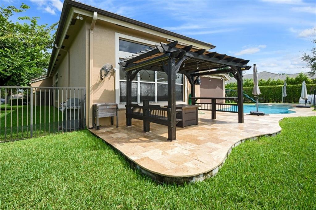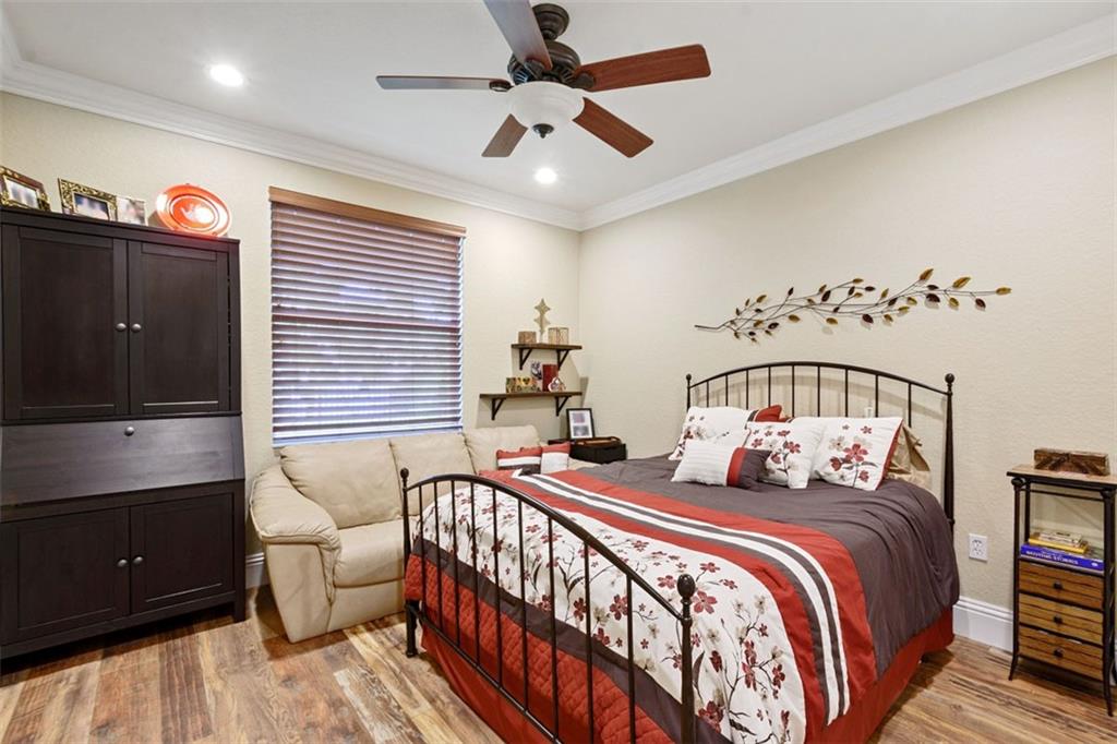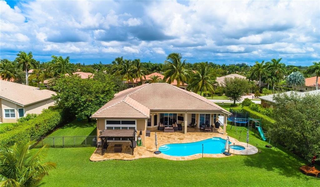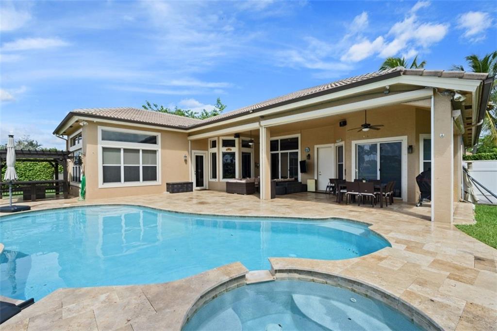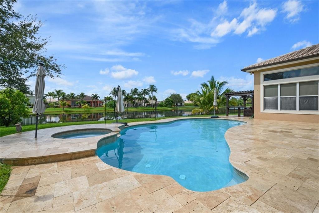 Start the New Year in a New Home. This immaculate Estate Home is move in ready and features 4 bedrooms 4 full baths plus an Office/Bedroom. Interior boasts 12' ceilings, crown moldings throughout, 24" rectified tile in the living areas, laminate flooring in the bedrooms, large kitchen with island features 42" wood cabinets & granite countertops opens to the breakfast nook & oversize family room. One bedroom has an ensuite bathroom, two bedrooms share a Jack and Jill bathroom & a fully remodeled cabana bathroom. Master bedroom overlooks the patio & pool with a large master bathroom. Fully fenced builders acre lot with new marble pool deck & retractable screens on the patio make it a perfect outdoor space any time of the year. Gated community with tennis courts, basketball, playgrounds, etc.
