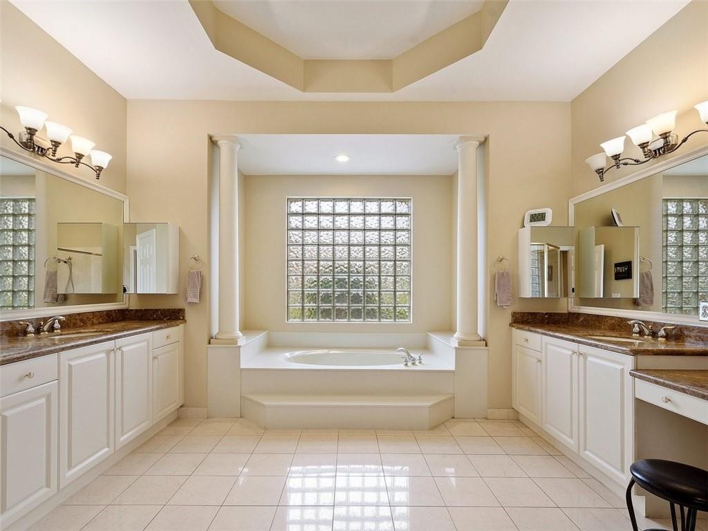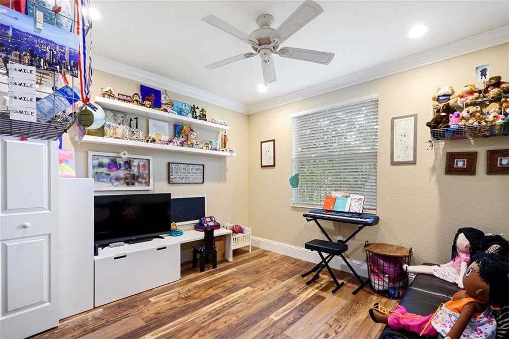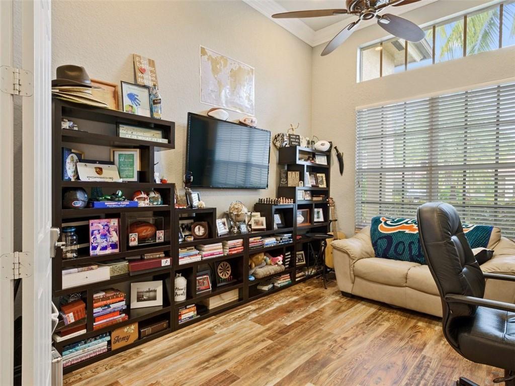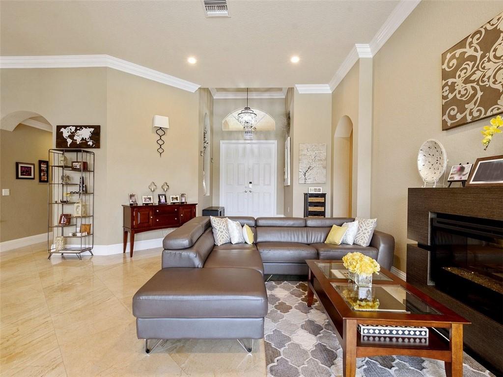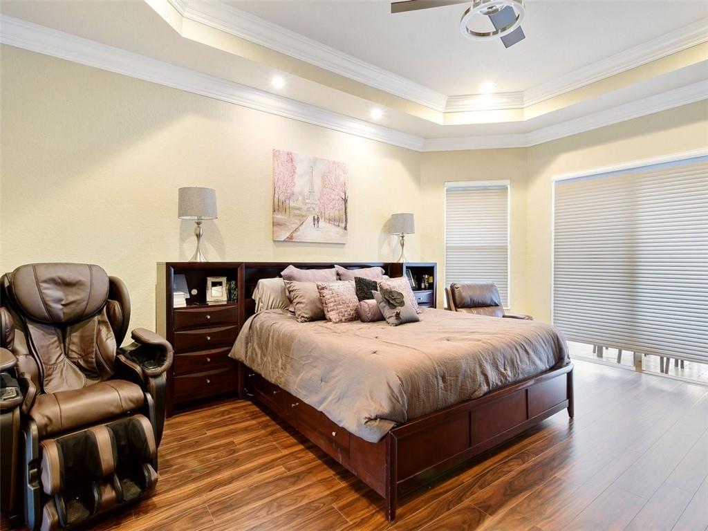 Start the New Year in a New Home. This immaculate Estate Home is move in ready and features 4 bedrooms 4 full baths plus an Office/Bedroom. Interior boasts 12' ceilings, crown moldings throughout, 24" rectified tile in the living areas, laminate flooring in the bedrooms, large kitchen with island features 42" wood cabinets & granite countertops opens to the breakfast nook & oversize family room. One bedroom has an ensuite bathroom, two bedrooms share a Jack and Jill bathroom & a fully remodeled cabana bathroom. Master bedroom overlooks the patio & pool with a large master bathroom. Fully fenced builders acre lot with new marble pool deck & retractable screens on the patio make it a perfect outdoor space any time of the year. Gated community with tennis courts, basketball, playgrounds, etc.