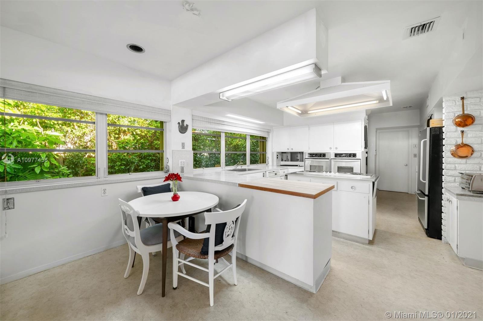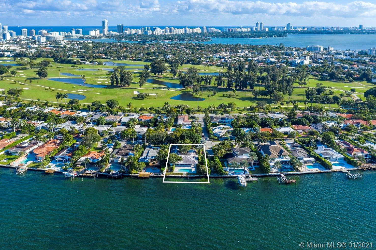 Feeling like you're floating on a cruise ship and enjoying the balmy breezes of Biscayne Bay is heavenly in this Miami Beach home on WIDE WIDE OPEN BAY. The daylight and sunset views seem like you are floating on water, as the home is situation on a high elevation. This 4 BDR/ 4 BATHS Features an open kitchen and open living areas, pool, 2 car carports & tons of storage space. Featured in National Magazines, was built by the artist and cookbook doyenne Maida Heater It stands apart from others. Situated on a corner, it is on an oversized 14, 423 SF lot. Adjoining the property there is 12,533 SF waterfront lot available for sale ,Total approx 27,000 SF of land. Located in guarded island of Normandy Shores, golf & tennis so close.