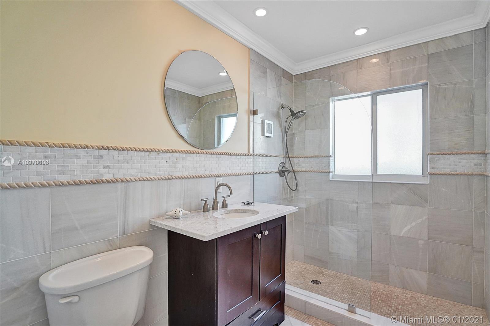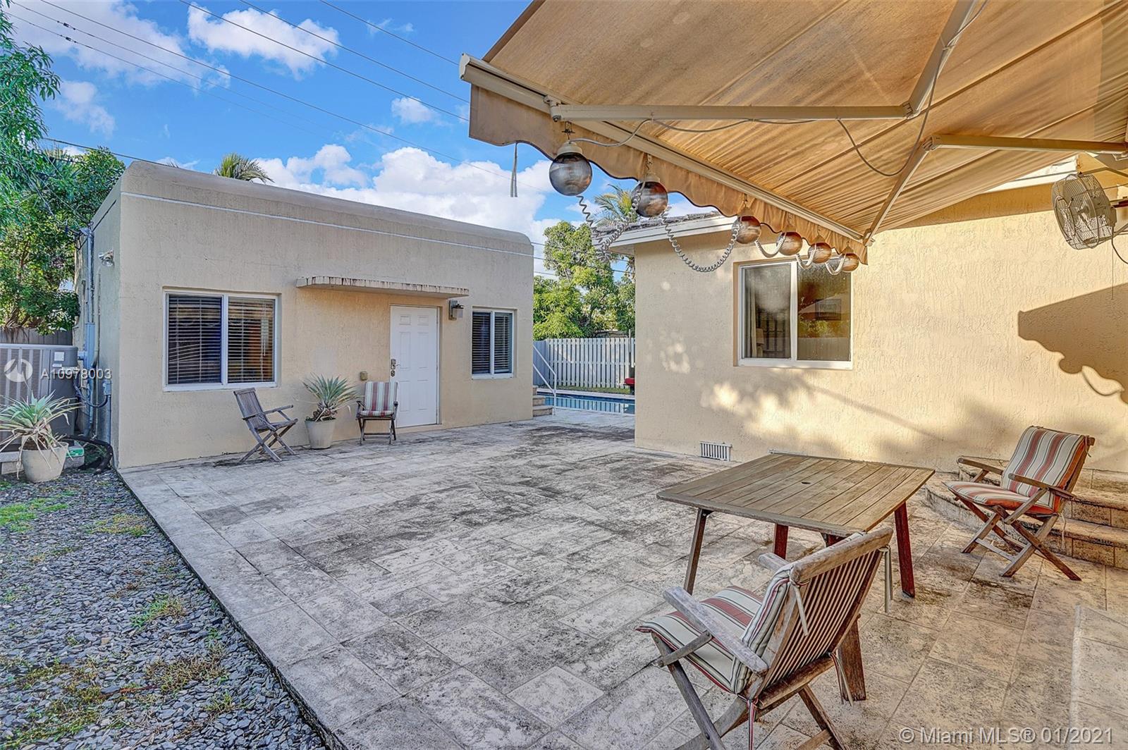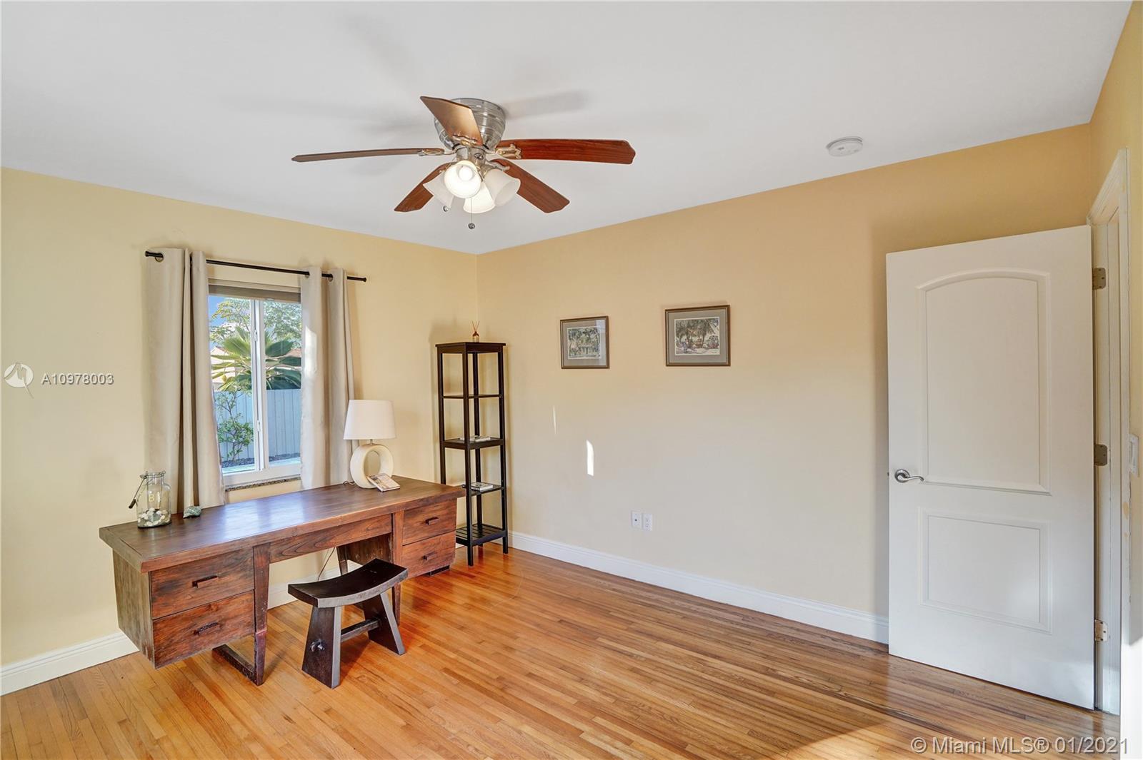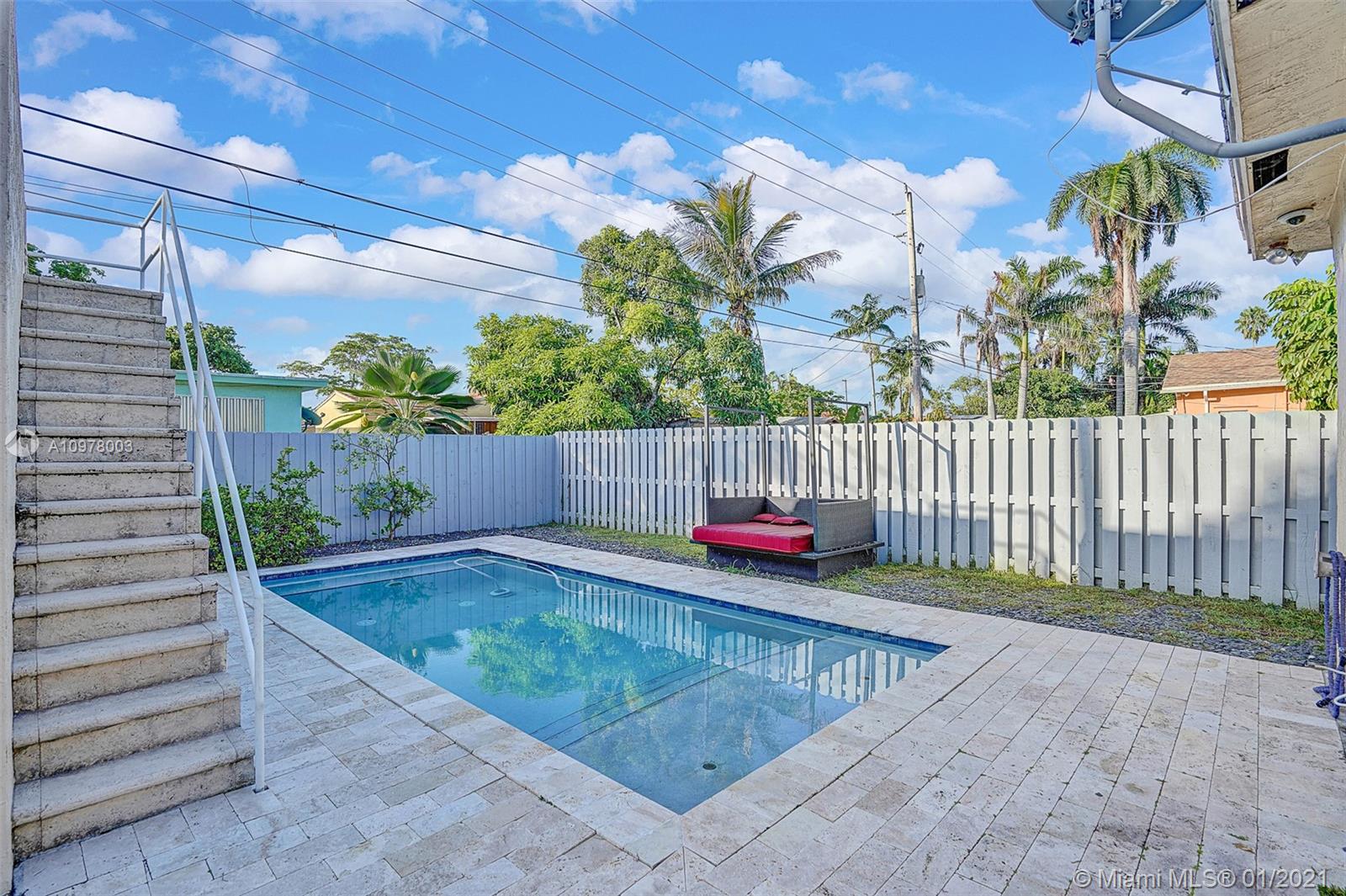 Beautifully renovated house in sought after neighborhood. Freshly repainted in white, pressure cleaned, impact proof windows throughout, oversized master with walk-in closed, raised ceiling, high end kitchen, pool and perfectly renovated guest house, ideal as an office space or as a source of extra income.