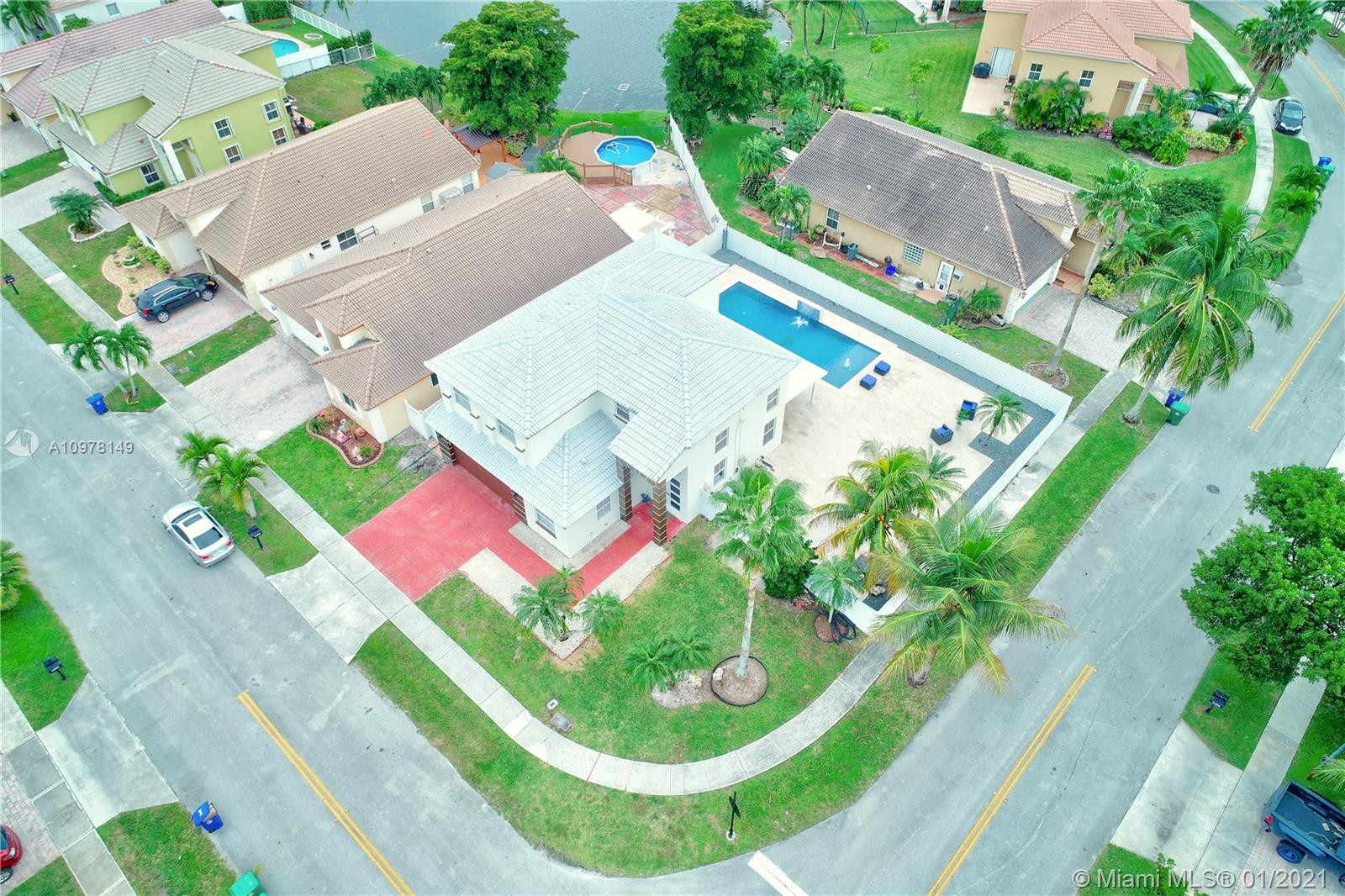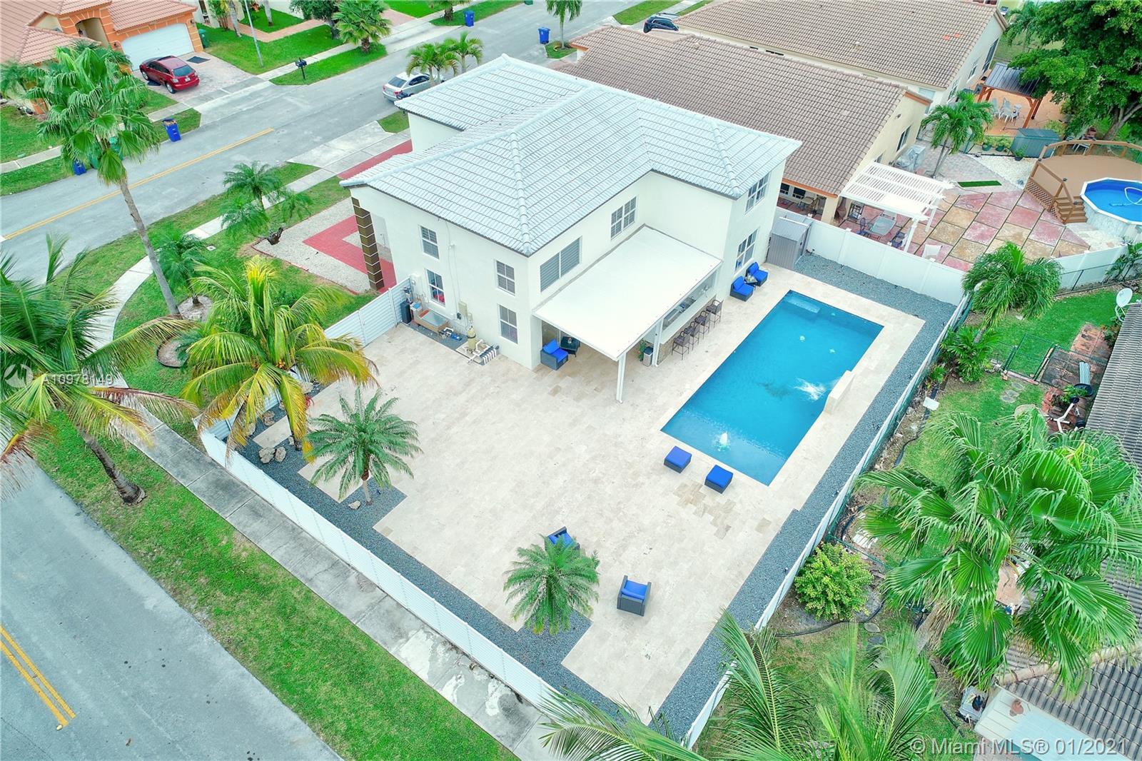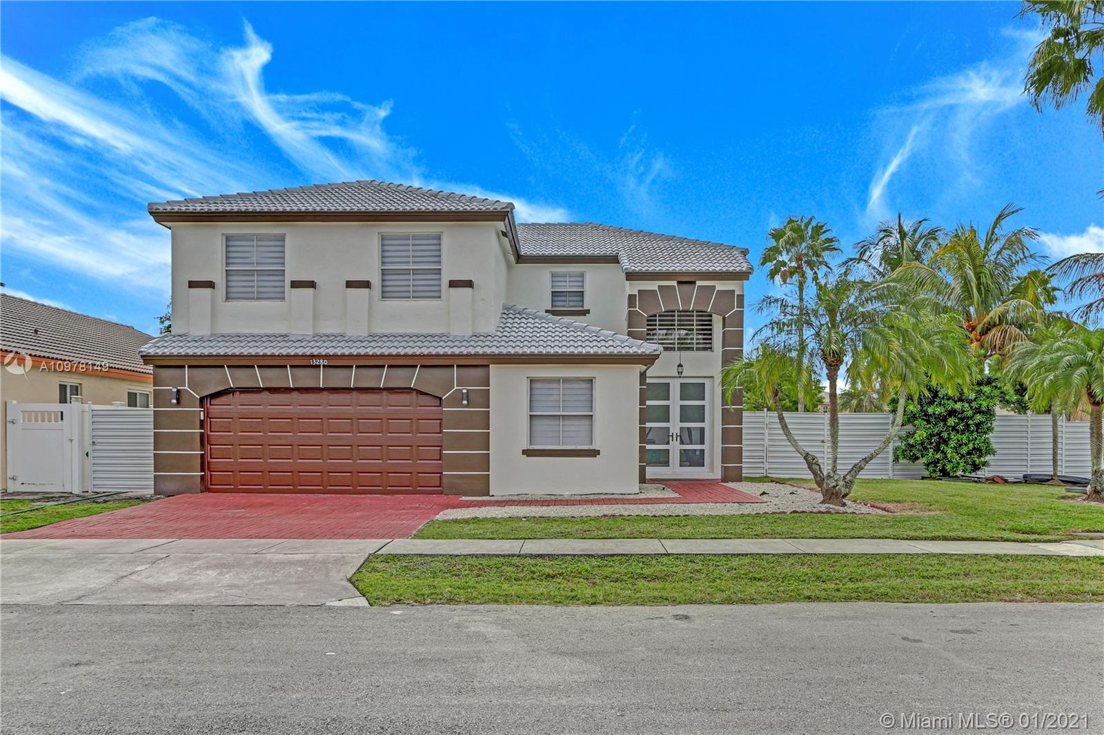 *Vizcaya Gem on the Lake * Great location* Beautiful tropical Home with pool, with very low HOA fees ($93.00) Two Story corner Lot Home, 4bdrm/3baths! Large Master bedroom with walk-in Closet + Plus 2 spacious rooms Upstairs, 1 bedroom First Floor. Spacious floor plan includes large family room, eat-in kitchen, Formal Dining room. Automated heated pool system with colored LED lights and Jacuzzi, Outdoor Kitchen & Barbecue, Travertine Pool Deck with wrap-around driveway. 2 car garage, stainless steel appliances, upgraded light fixtures with 24 hour community security patrol!