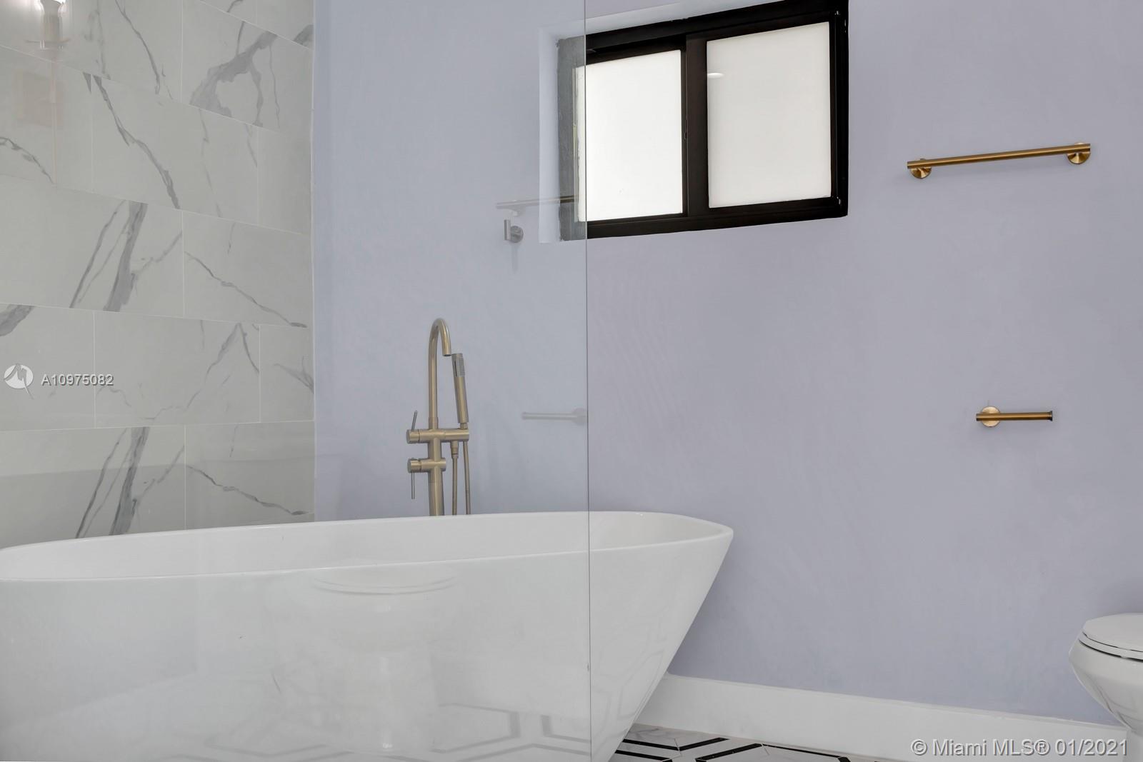 Espectacular smart corner home in a quiet and perfectly located neighborhood. House has been renovated including impact windows allowing for lots of natural light. Waterproof vinyl flooring in the main areas, top of the line stainless steel appliances and slide in gas stove. White soft closing kitchen cabinets, modern backsplash and gold finishes add to the charm of the house. Spacious master bedroom with direct access to the heated pool & patio. Bathroom features hexagon flooring which you enter thru a farmers door to enjoy a walk-in shower, stand alone bath tub & modern floating double sink. Oversized laundry, a cabana bathroom in addition to a Florida room over looking the pool making it the perfect entertainment home. Oh, did I say it has smart devices? A/C, switches, lock, and more!