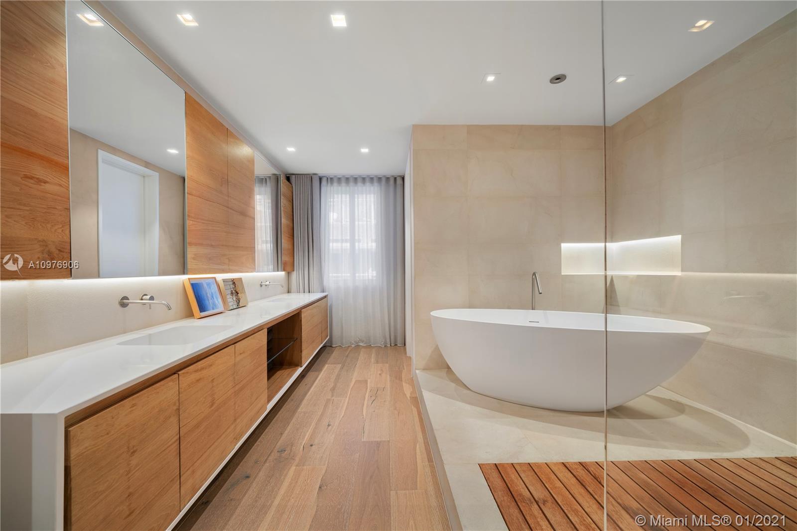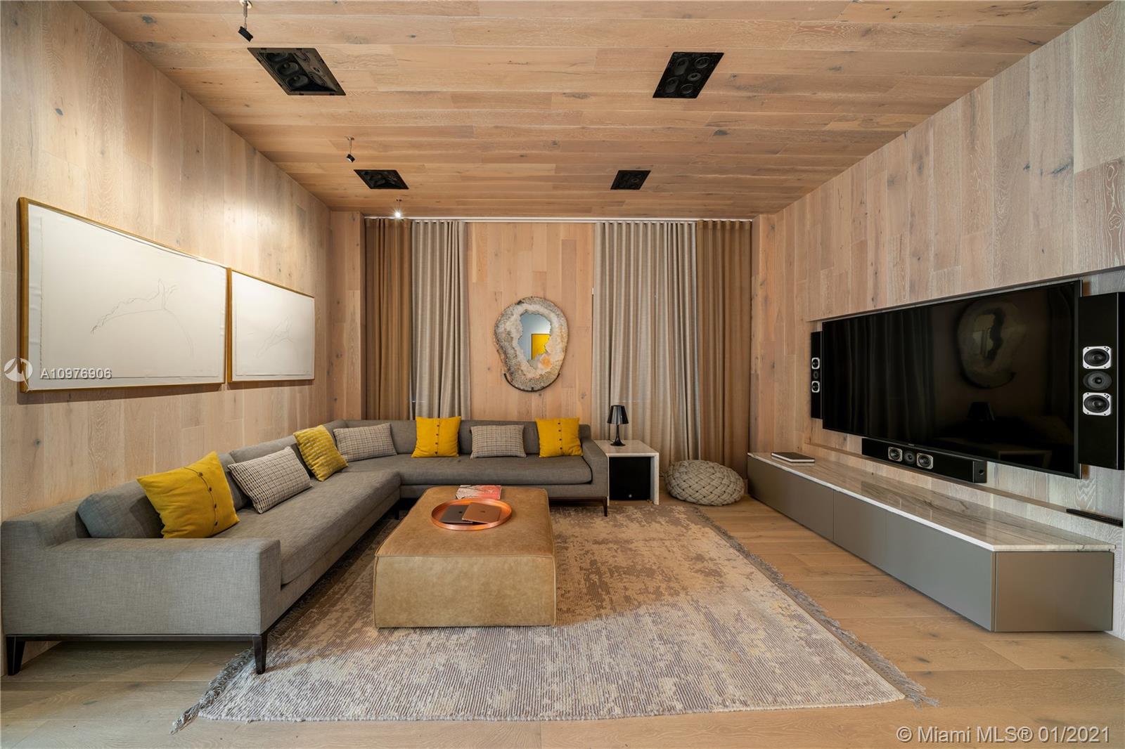 Enter this meticulously renovated, rarely available 5BD/5+1BA waterfront AQUA townhome. Enjoy full water views in a living room with 20ft soaring ceilings & stunning floor-to-ceiling windows. Fully equipped kitchen w/ impeccable wood & marble finishes, natural light and cozy breakfast nook. Exquisite finishes & bleached oak flooring throughout. Private master bedroom w/ enormous closets and spa bathroom w/teak & natural stone finishes, dual sinks, & soaking tub within a glass encased shower. A custom white oak clad movie room, gym, wet bar, & and five oversized rooftop decks with views of the Miami skyline as well as Lutron lighting throughout, Control 4, Nest thermostat and August locks complete this spectacular home.