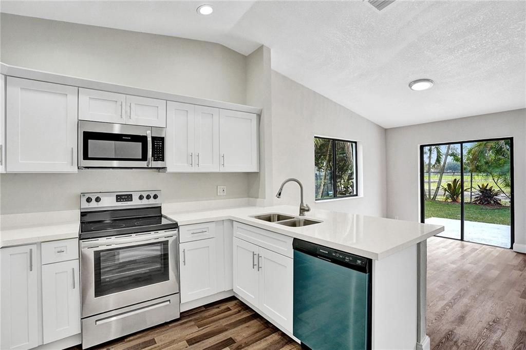 3 Bedroom 2 Bath 1 Car Garage home in Parkwood Homes in West Sunrise. This Fully Remodeled Open Concept property features vinyl floors throughout the entire living area, High Ceilings, White Wood Kitchen Cabinets with Quartz Countertops, Stainless Steel Appliances, New HVAC system, Upgraded Electric Panel, LED Lighting throughout, European Bathroom Design, Lush landscaping, in a quiet neighborhood close to the Sawgrass, Great Schools and University.