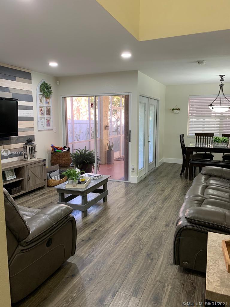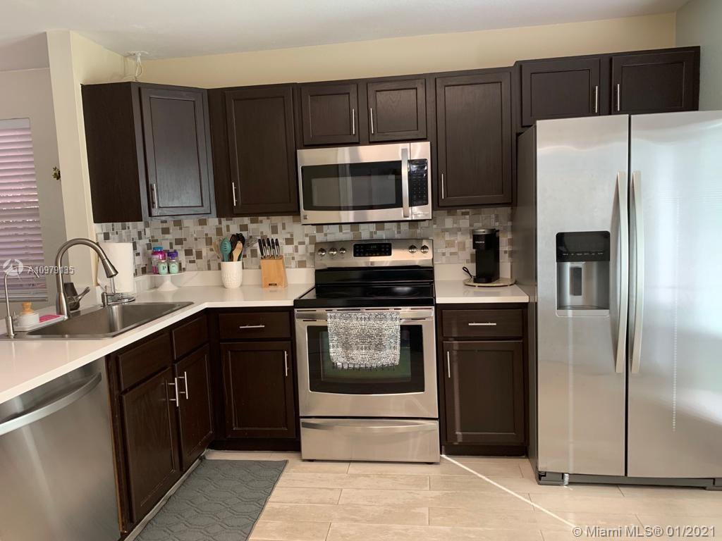 Beautiful single family home, 3 bed, 2.5 bath, den/office, and garage storage. Many upgrades throughout the entire house. Newer waterproof laminate on the ground floor and new scratch resistant laminate on the 2nd floor. Updated bathrooms and kitchen with stainless steel appliances and quartz countertops. Indoors laundry area with new washer. Plenty of storage closets. Newer high efficiency A/C with air purifier. Newer soft water filtration system to the entire house. Easy to use accordion shutters on all windows and doors. Big fenced and covered backyard area with fruit trees. Great, safe, and quiet community with security and walking distance to the community pool. Close to all hospitals, restaurants, shopping centers, and parks.