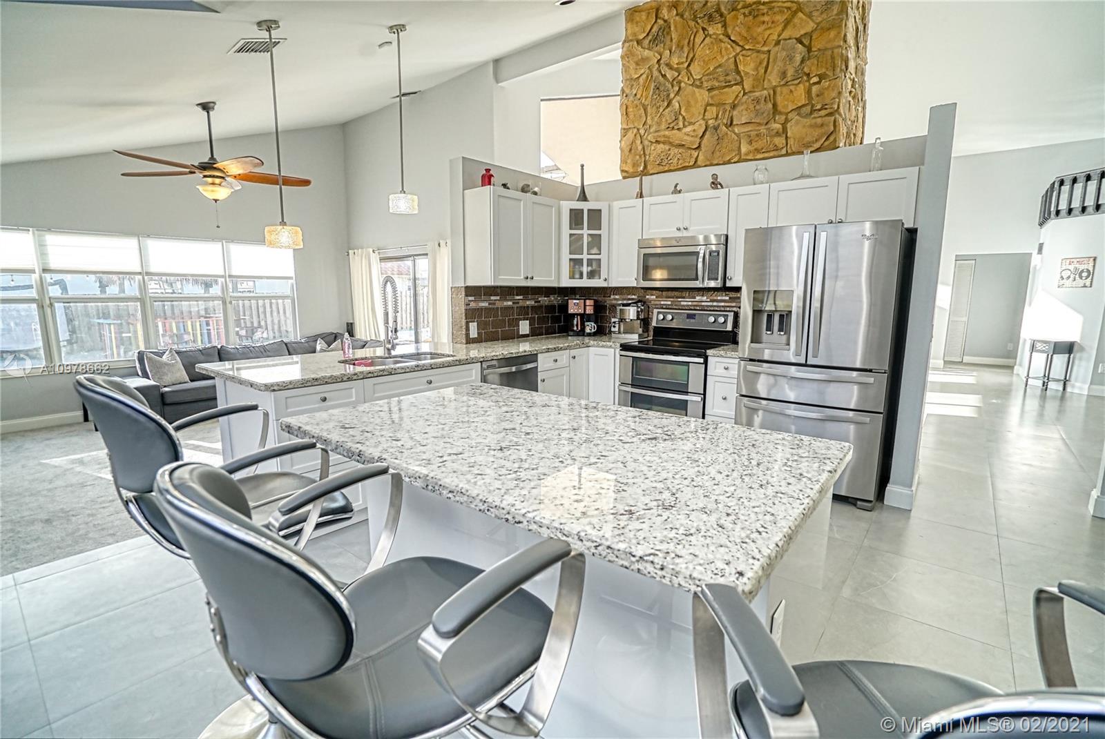 Remodeled corner lot home featuring 4 bedrooms 2 bathrooms (converted garage) and pool. Smart home features includes lights in living and kitchen, video doorbell, front door lock, and 2 Nest A/C thermostat. LED lights on breakfast area window, kitchen and loft/ladder. Upgraded kitchen with granite counter tops, SS appliances, recessed lighting, and snack bar and island areas. Fireplaced w/reading sitting area. Newer tile and carpet. Beach patio /pool zone with Tiki bar, theater screen and four speakers. Resurfaced lagoon heated pool and spa. Circular driveway. Entrance water fall. Added shelving in attic. Newer tankless water heather...and more to mention.