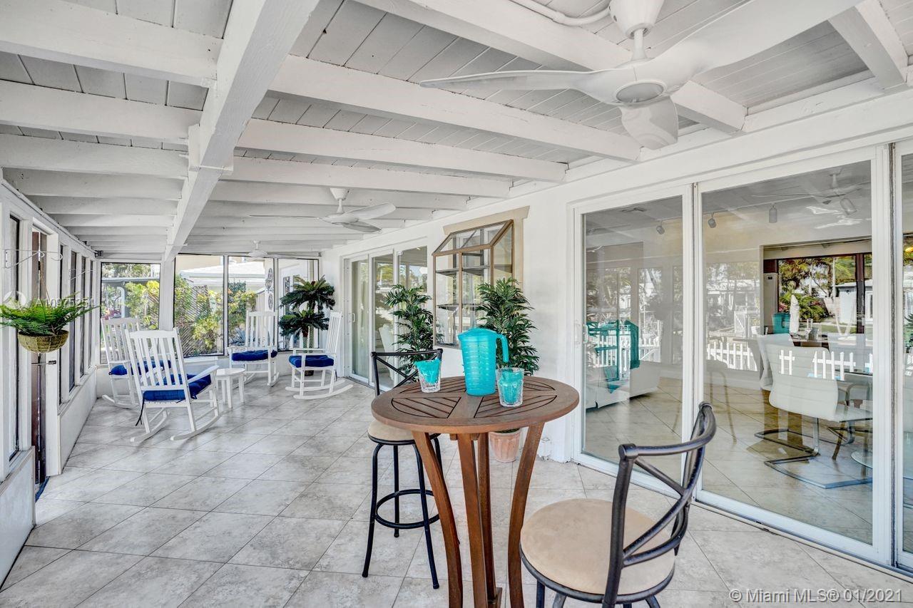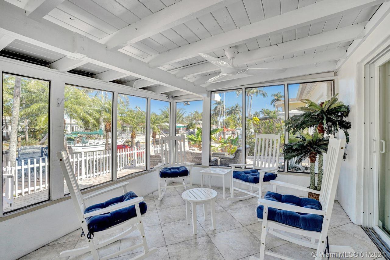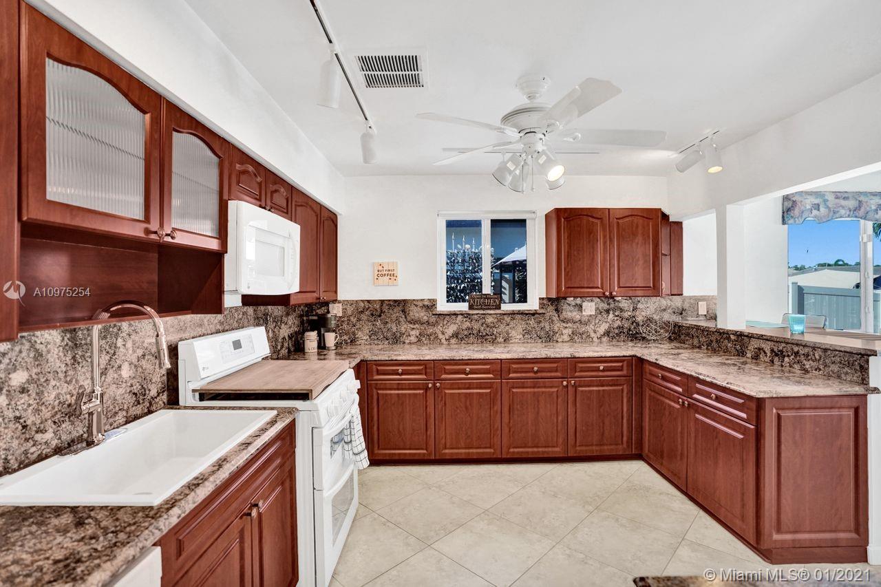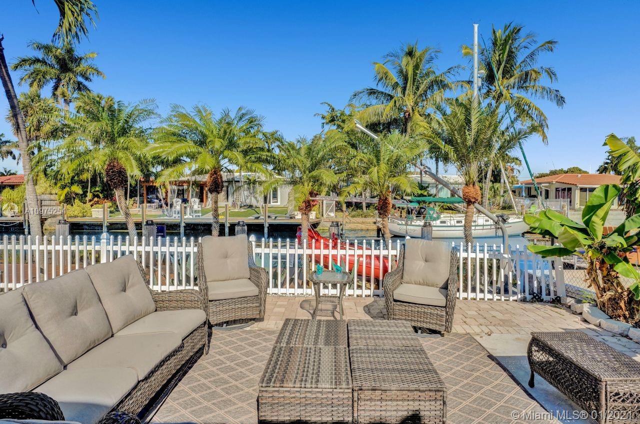 Bring your boat-waterfront beauty- -doubled in size in 2008 2,220+SF. 3 bed + den/office & 2 1/2 bath. Impact doors & windows, pavered circular driveway w/1-car garage & large rear screened-in patio. Dock/seawall & new Dingy in great condition -65' on water, in-water color accent lights. Fully fenced, space to entertain, BBQ gazebo w/pass-thru to kitchen, shed w/power outlets & outdoor shower. BIG master suite w/walk-in closet, high ceilings, ensuite bathroom w/Jacuzzi tub, shower, toilet room & vanity. Open kitchen w/wood cabinets, desk, counter bar & gas stove. Big Florida Room w/wall of windows out to dock. ADT security, 2 ACs. NOT A TEARDOWN. Laundry in epoxy floor garage w/TV. Office was 2nd car garage. Ocean access, no fixed bridges. Galvanized roof. Larger than SF on record