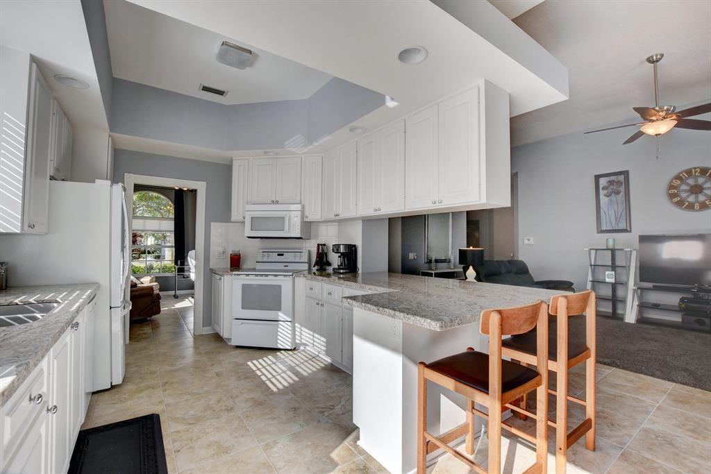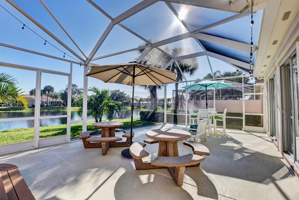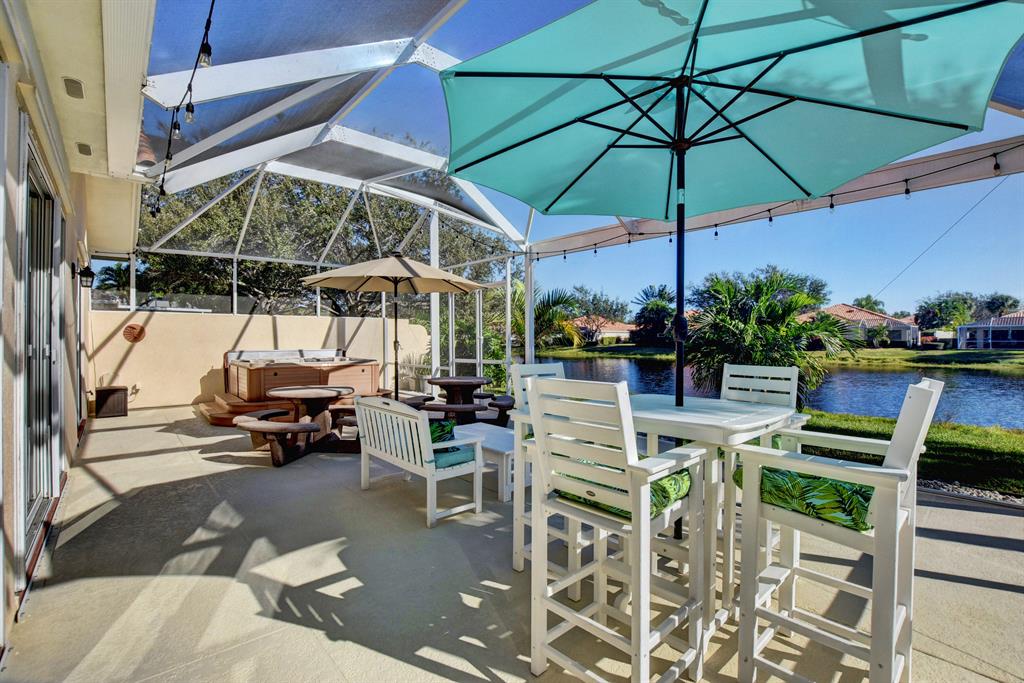 An EXTENDED Oakmont with extended Patio that has been meticulously maintained with many upgrades, Tile throughout, Brand new Clear View Screened Lanai, modern paint color, new Granite countertops, new blinds, upgraded landscaping and monitored Security System. Relax in the Thermo Spa Hot Tub on your Patio ,have a sundowner as the warm jets gently massage you and you watch the birds at the waters edge, Storks, Cranes , Ibis. You are in Riverwalk , a pet friendly community with Tree lined streets, pools, Jogging and Cycling paths, where you can relax or be active in this tranquil setting, its all up to you.