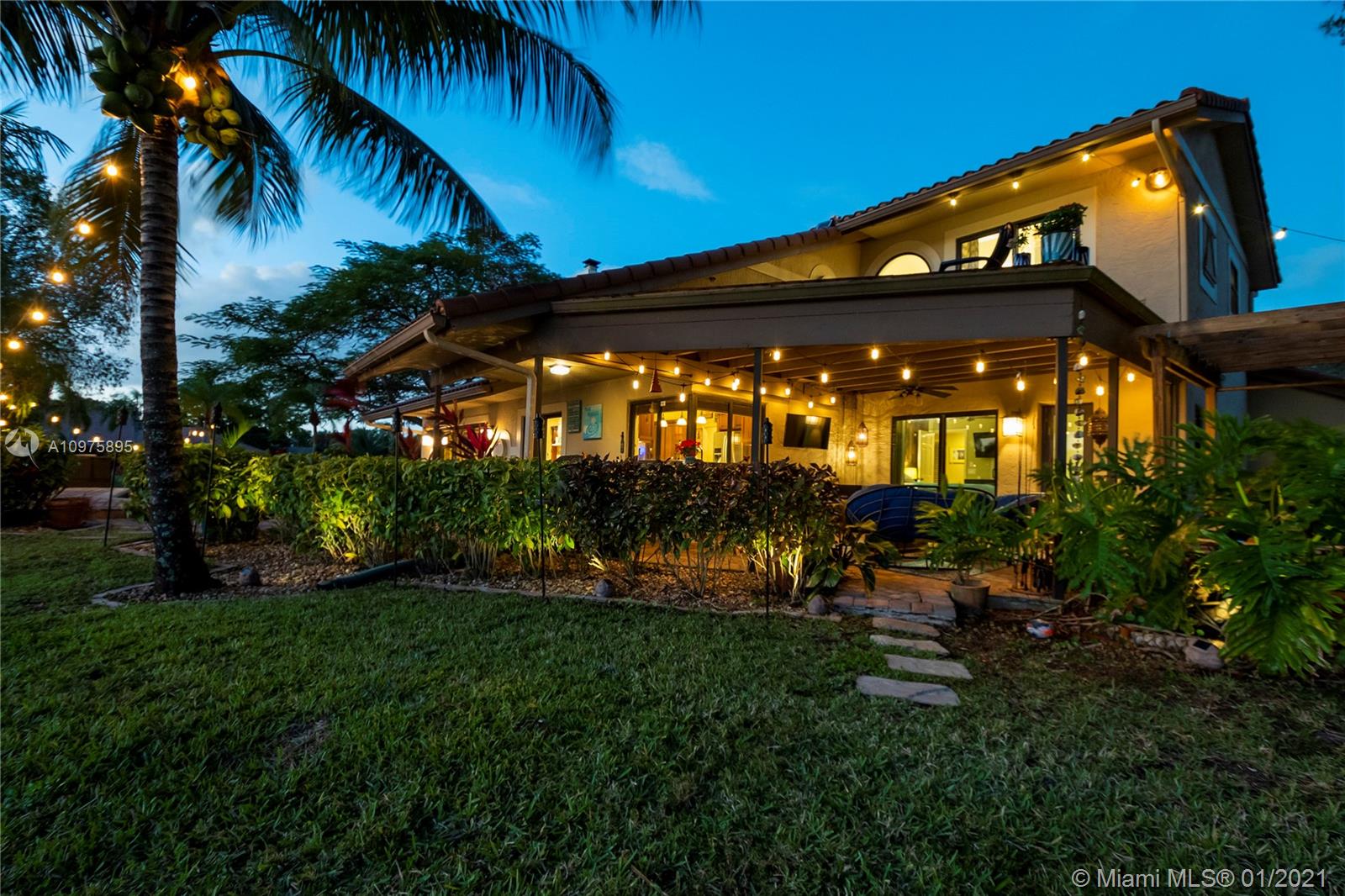 Exquisite 2-story lakefront pool home nestled on a serene cul-de-sac lot with stunning water and sunset views. This rare find boasts marble floors, double-sided stone fireplace, high ceilings, custom kitchen, upgraded baths, impact windows and doors, over-sized washer & dryer and 2-car garage. Enormous master suite encompassing the entire second floor features a private terrace overlooking the lake. Additional rooms include great kitchen/family room and formal living/dining. Spectacular tropical backyard with inground pool and lush foliage is perfect for family fun and entertaining guests. Vivint home security system w/ electric keypad-coded front door lock, ring camera/doorbell and ring camera on driveway. Truly a gem located in the highly desirable community of Glen Oaks.