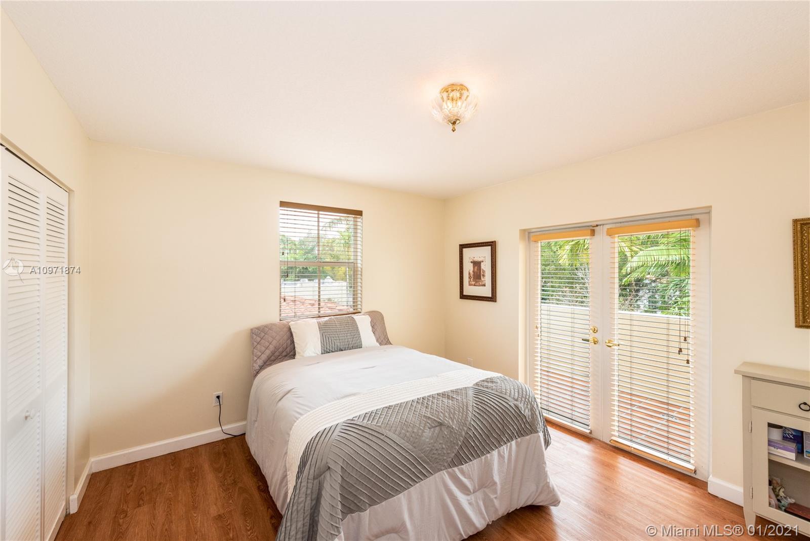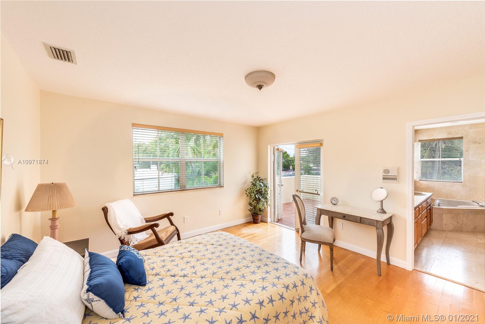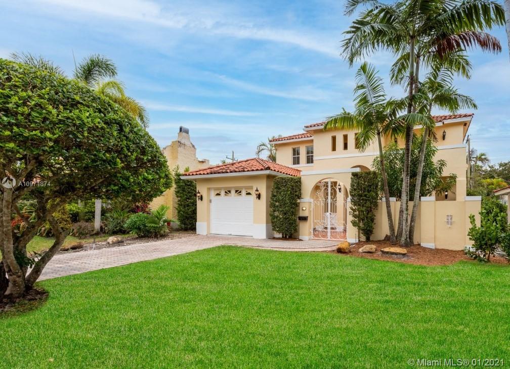 New Listing! Two-story, 4-bedroom/3 bath home on lovely, tree-lined street just N. of Alhambra Blvd. Walk to Miracle Mile, restaurants, & Publix. Built in 1995. Private courtyard entrance. Large foyer. Formal dining to the right, living room straight ahead. Eat-in kitchen. Downstairs guest room/office with hall bath, separate laundry room. Garage. Rear screened porch opens to a small backyard. Upstairs, master suite stretches across the backside of the house with walk-in closet, French doors to outside terrace, a spacious bath with jacuzzi, shower, his/her vanities. Across the hall are two bedrooms (one with a balcony) and a hall bath. High Ceilings. Most of the house is original but in good condition. The home is priced fairly, and it is FIRM. Limited showings by appointment only.