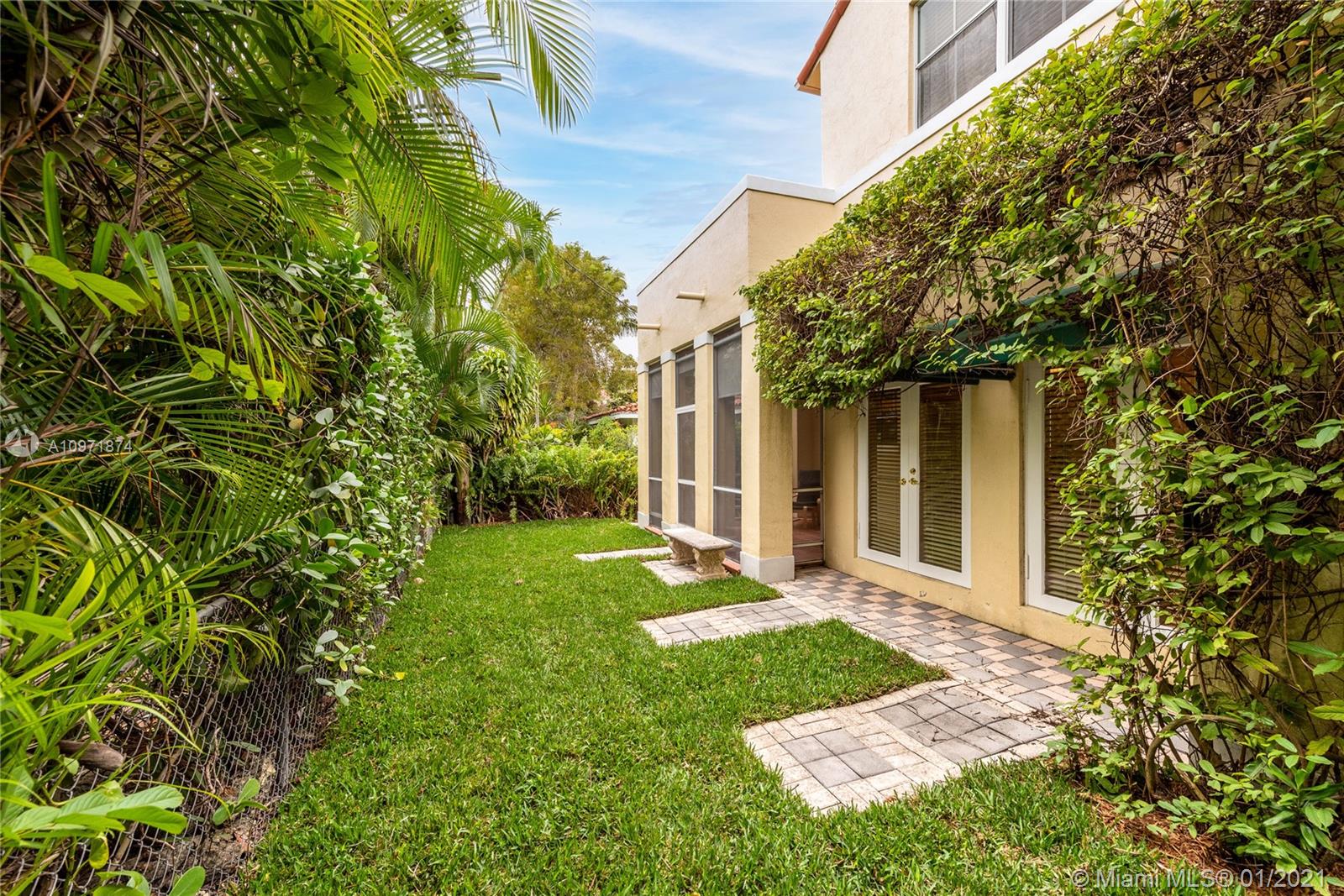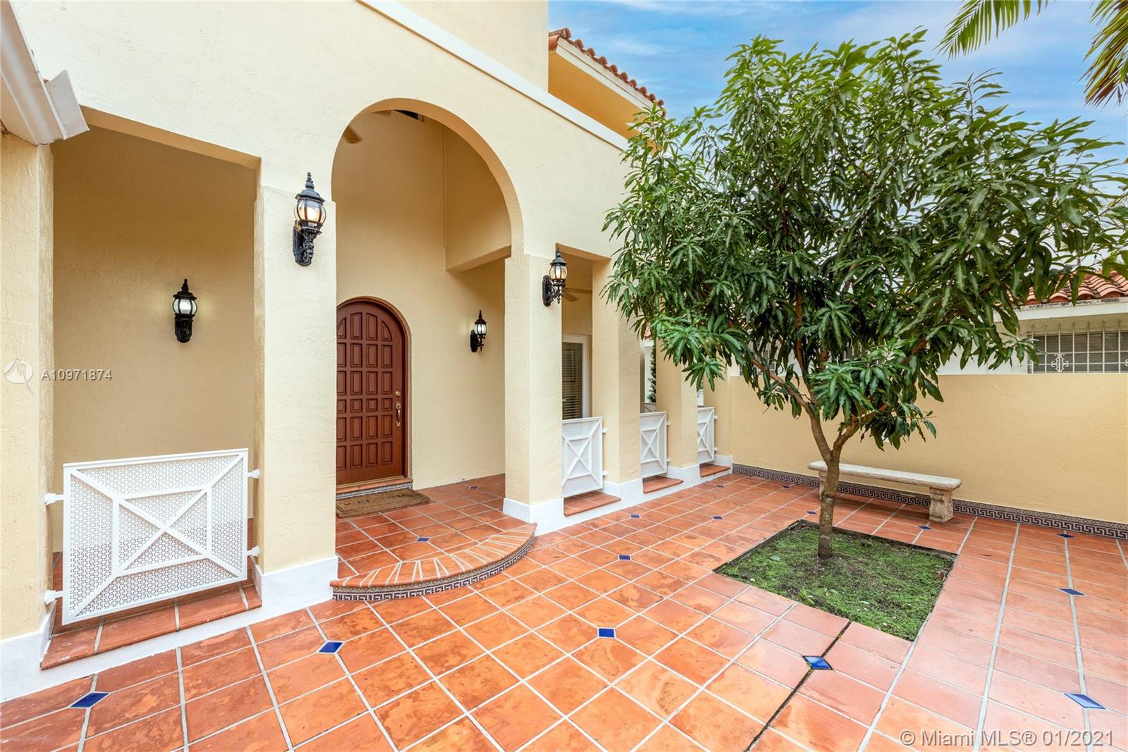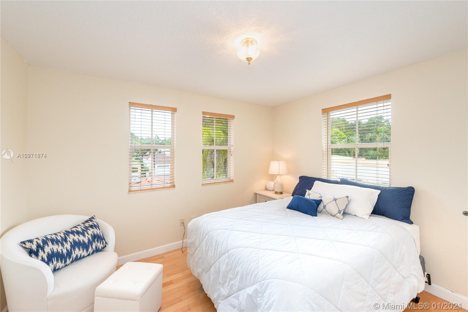 New Listing! Two-story, 4-bedroom/3 bath home on lovely, tree-lined street just N. of Alhambra Blvd. Walk to Miracle Mile, restaurants, & Publix. Built in 1995. Private courtyard entrance. Large foyer. Formal dining to the right, living room straight ahead. Eat-in kitchen. Downstairs guest room/office with hall bath, separate laundry room. Garage. Rear screened porch opens to a small backyard. Upstairs, master suite stretches across the backside of the house with walk-in closet, French doors to outside terrace, a spacious bath with jacuzzi, shower, his/her vanities. Across the hall are two bedrooms (one with a balcony) and a hall bath. High Ceilings. Most of the house is original but in good condition. The home is priced fairly, and it is FIRM. Limited showings by appointment only.