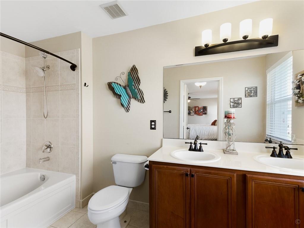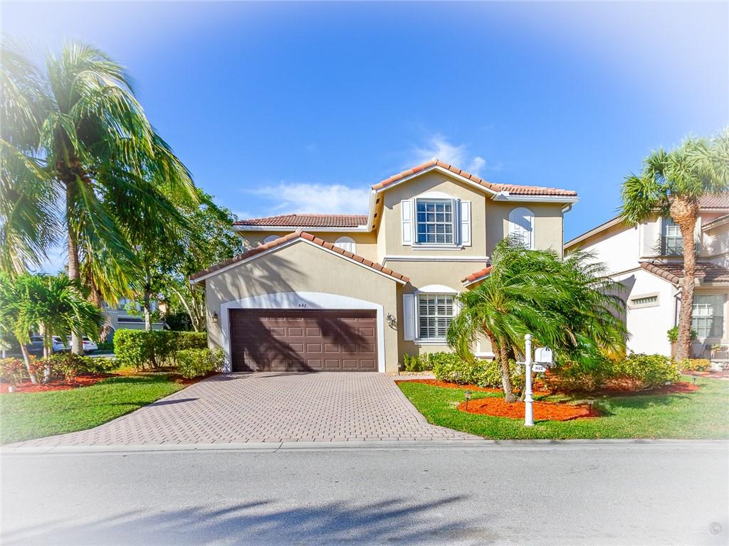 WATCH THE VIRTUAL TOUR. Amazing home in the highly desirable gated community of Vizcaya, located off of Lakeview Dr. Impeccably maintained corner location. New AC, garage door opener and rain gutters in 2020. New ceiling fans, window treatments, new 50 Gallon hot water heater and new travertine patio deck and custom landscaping all completed in 2019. Accordion Shutter protection and hurricane rated windows & sliding glass door on the 1st floor facing the patio. Indoor laundry room, upgraded Kitchen with SS appliances, granite counters & backsplash, custom wood cabinetry, tile flooring downstairs & upgraded laminate flooring upstairs. The list goes on. The HOA includes lawn care, basic cable, house alarm, gate, gym, & tennis. Easy highway access. Excellent location. Hurry to see this one!